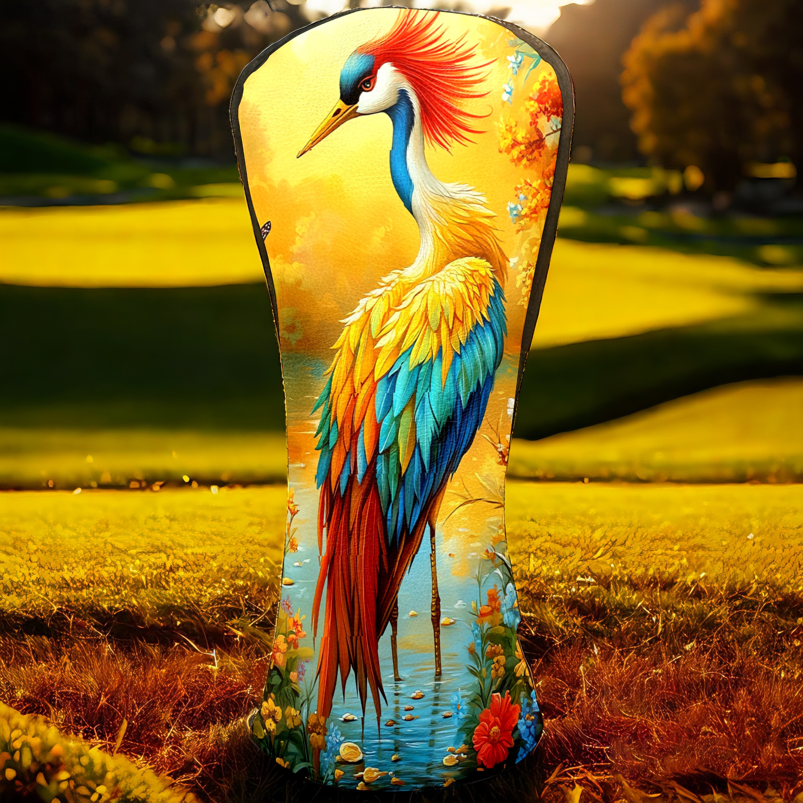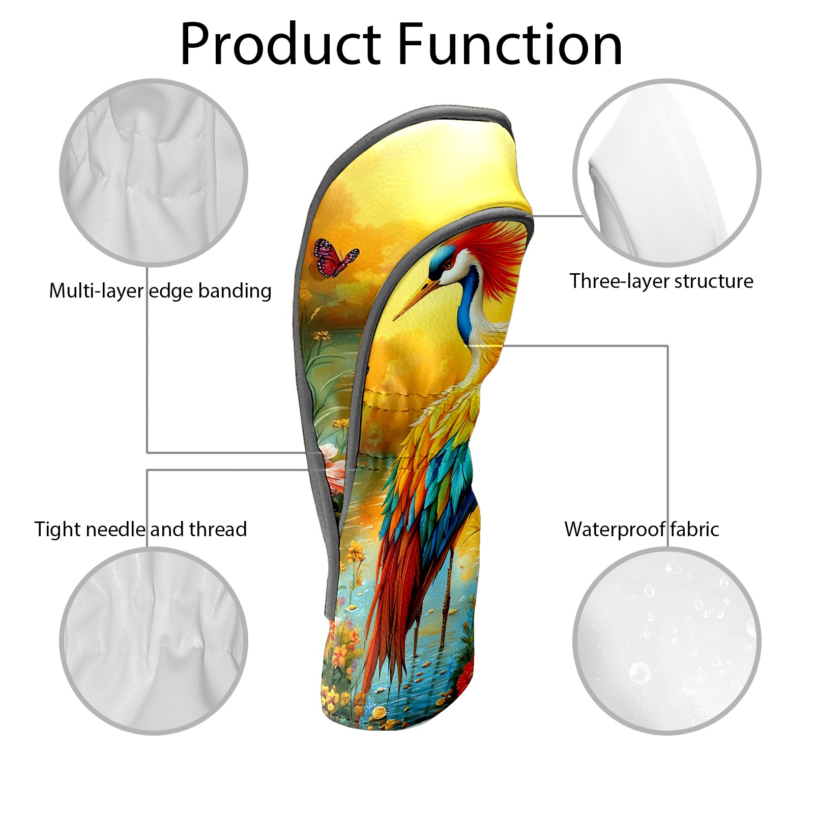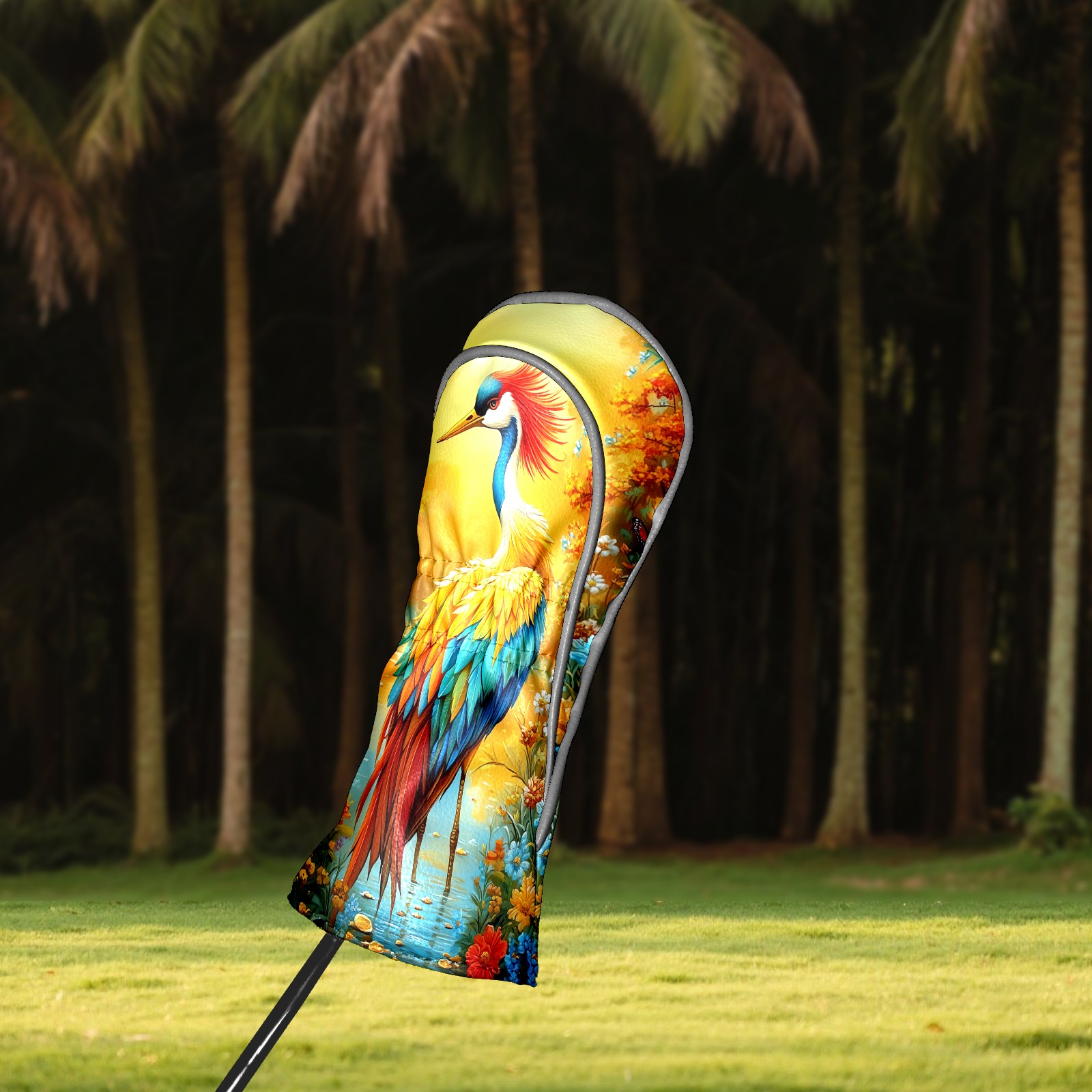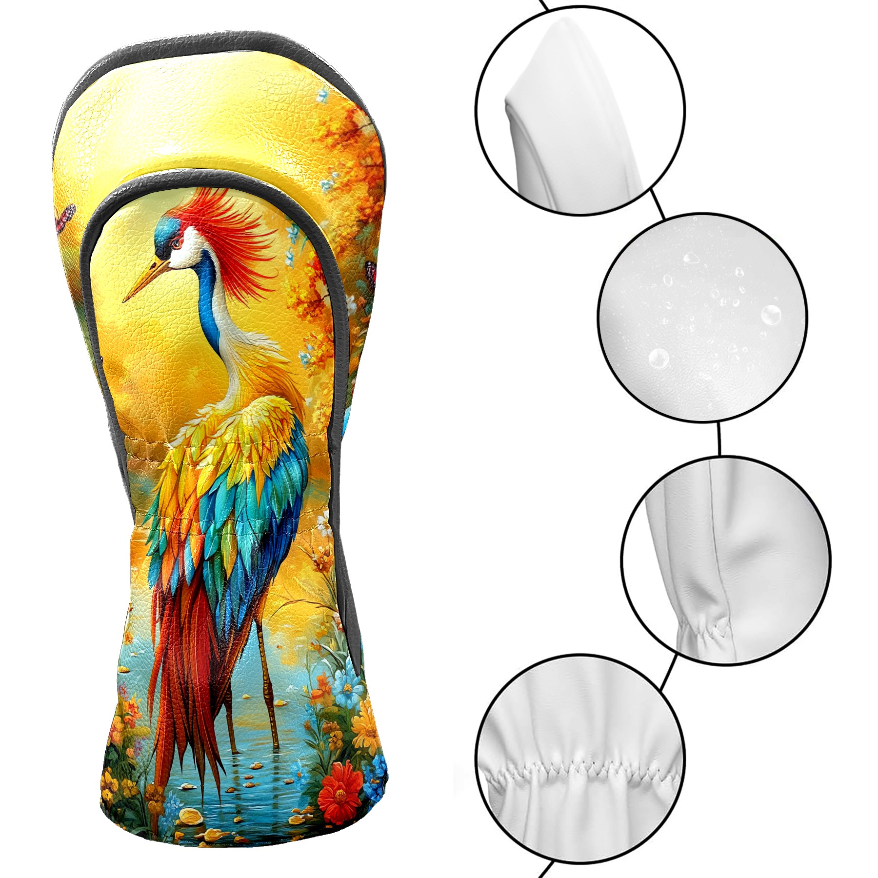 Golf Club Head Cover Premium Leather Driver Headcover, Golf Head Covers for Woods and Driver Waterproof Golf Headcovers with Anti-Scratch Lining for Men Women (Colorful Crane)