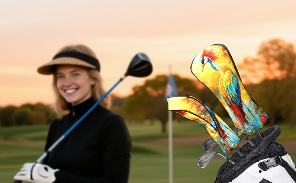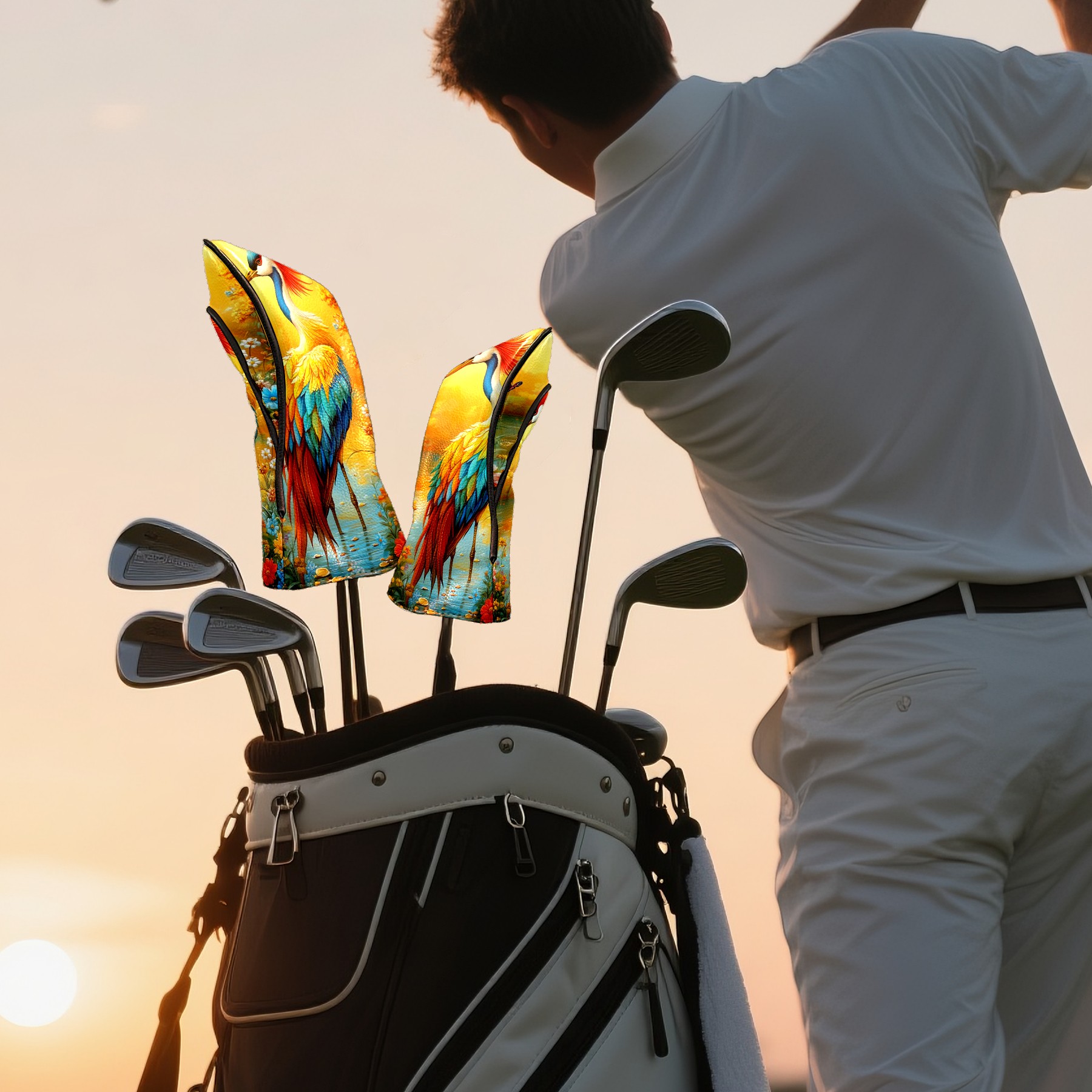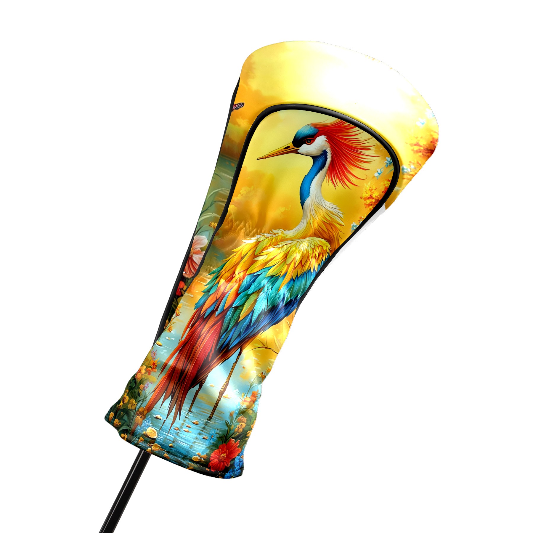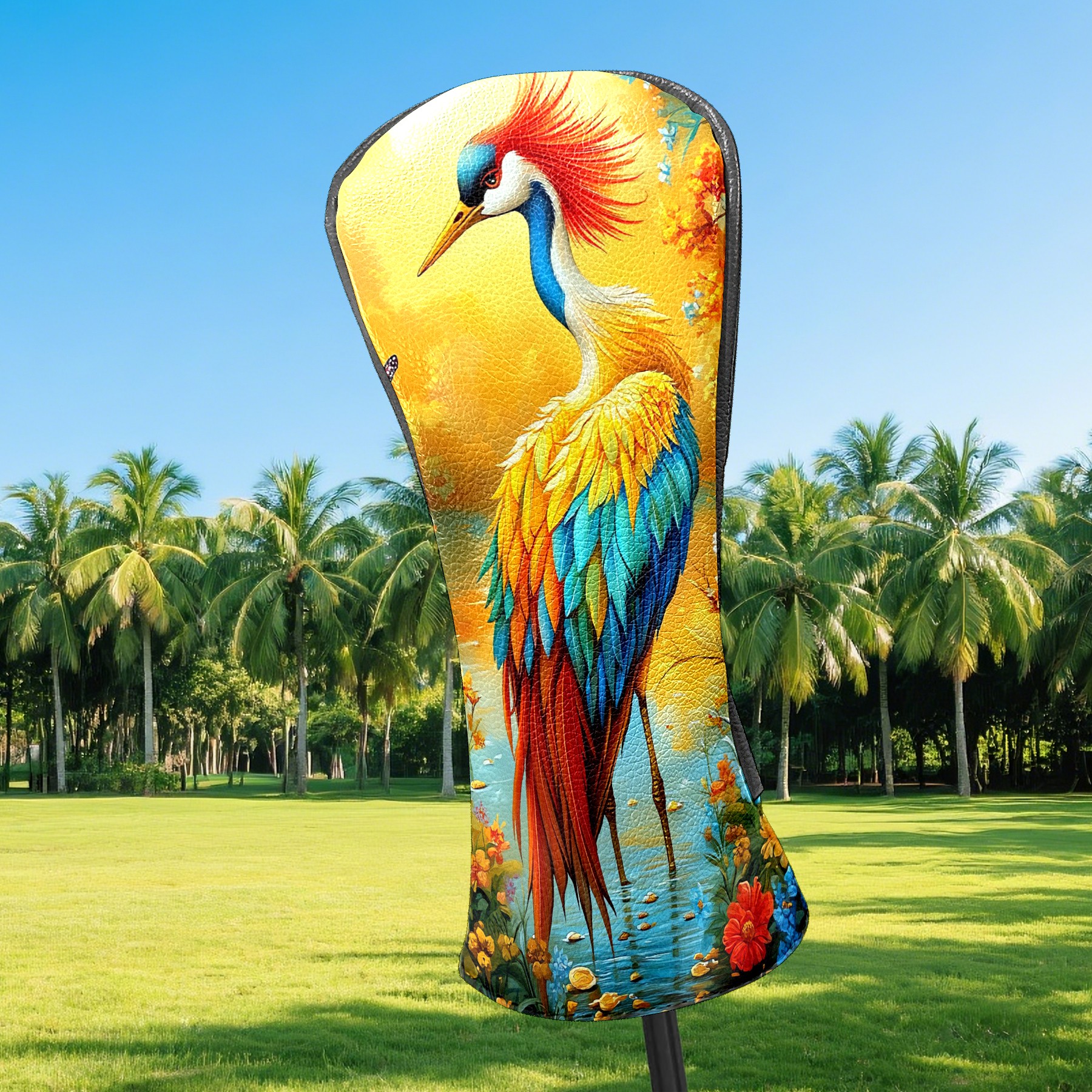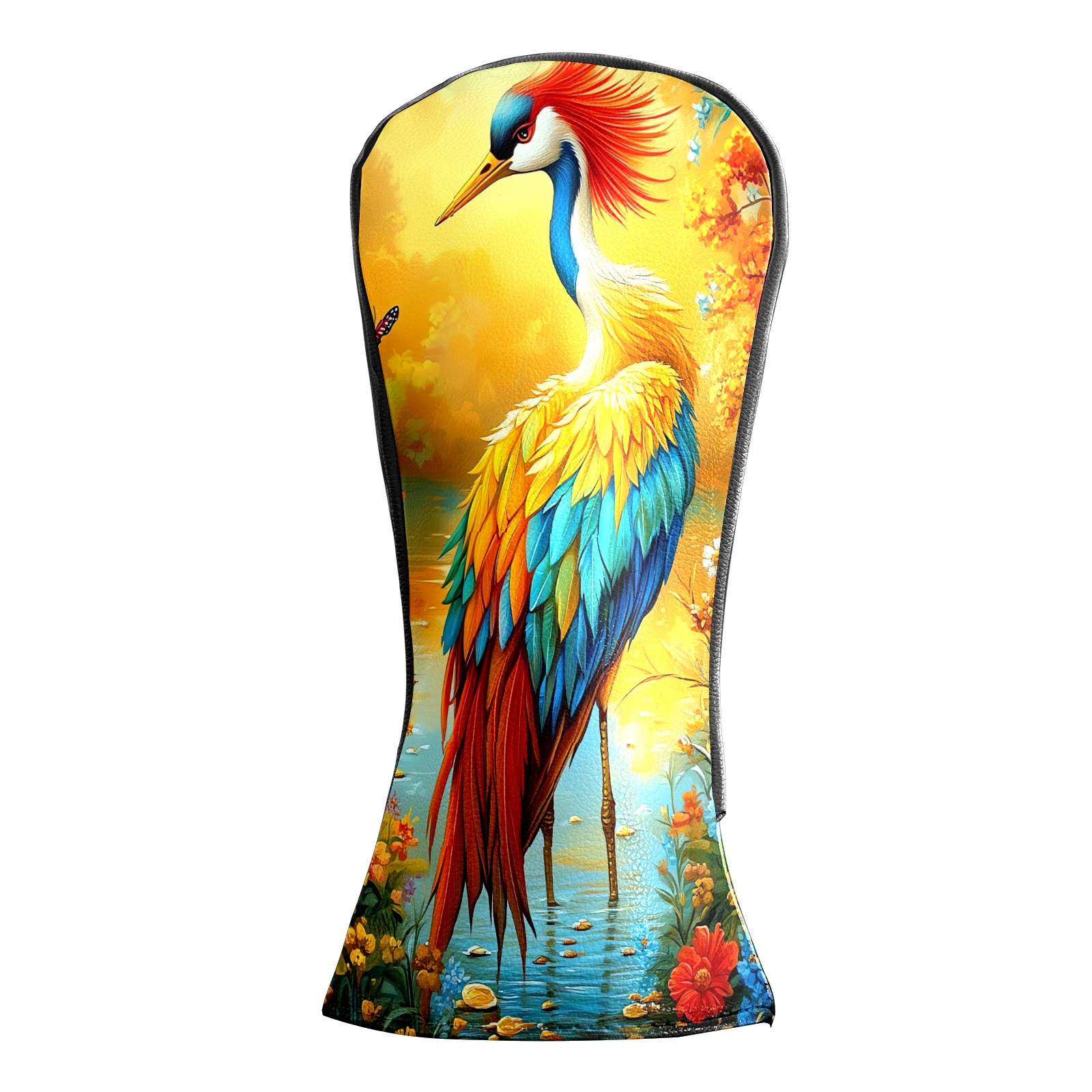 Golf Club Head Cover Premium Leather Driver Headcover, Golf Head Covers for Woods and Driver Waterproof Golf Headcovers with Anti-Scratch Lining for Men Women (Colorful Crane)