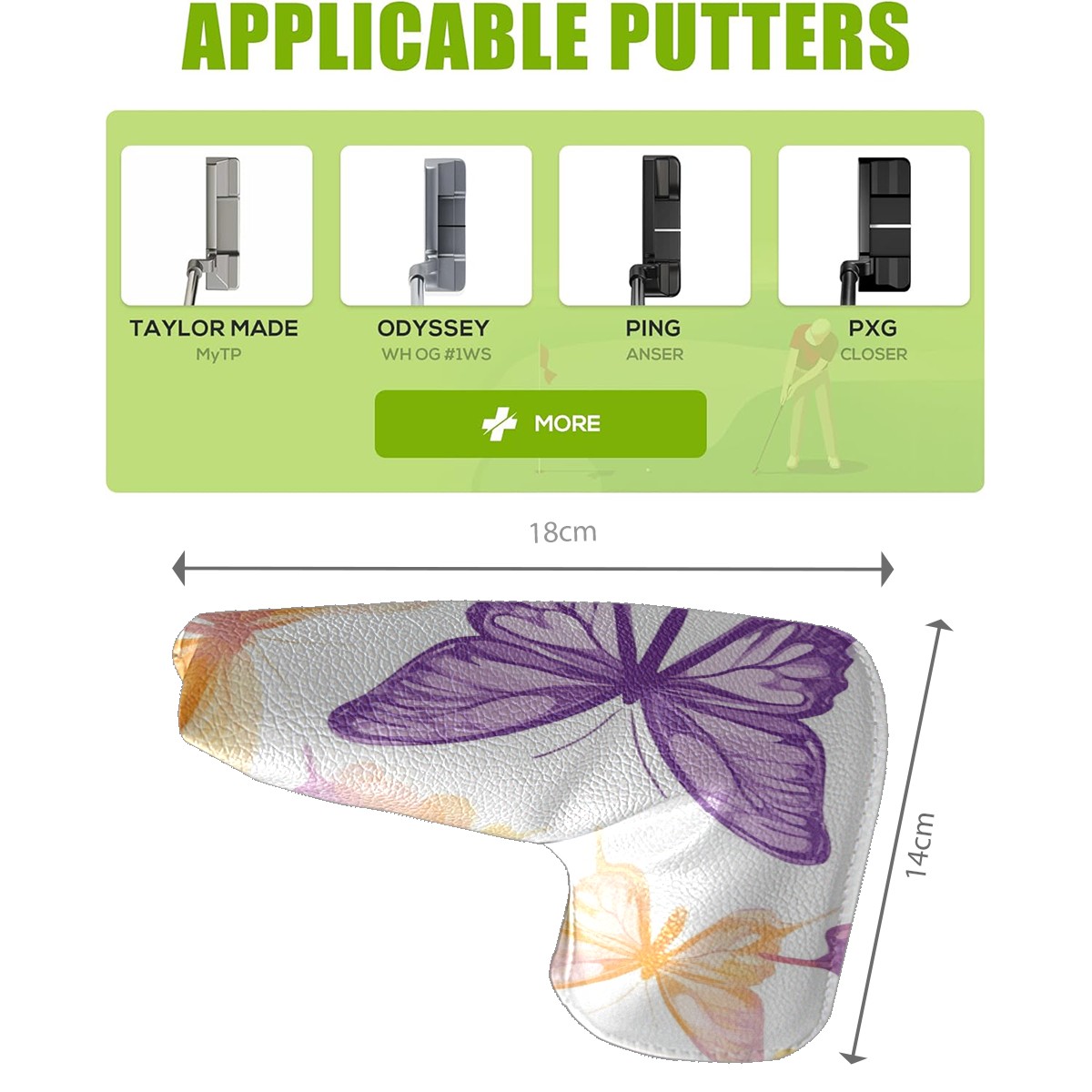 Professional Golf Club Head Covers Set for Blade Putter - Waterproof Design with Stretchable Fit, Universal Club Protection for Men & Women (Pink And Orange Butterflies)