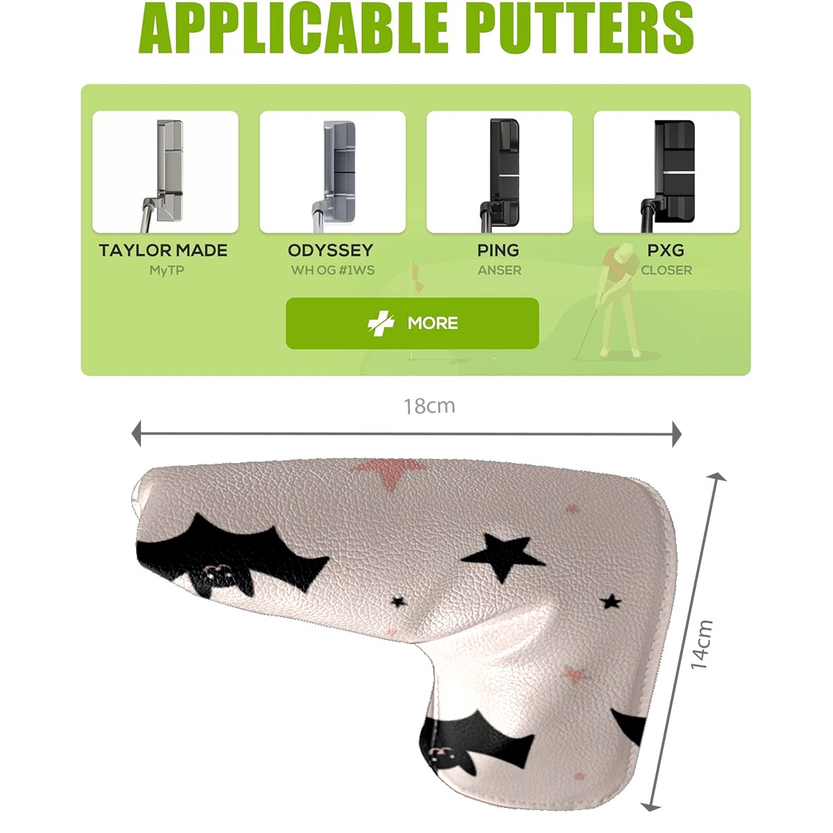 Professional Golf Club Head Covers Set for Blade Putter - Waterproof Design with Stretchable Fit, Universal Club Protection for Men & Women (Black Bats And Stars)