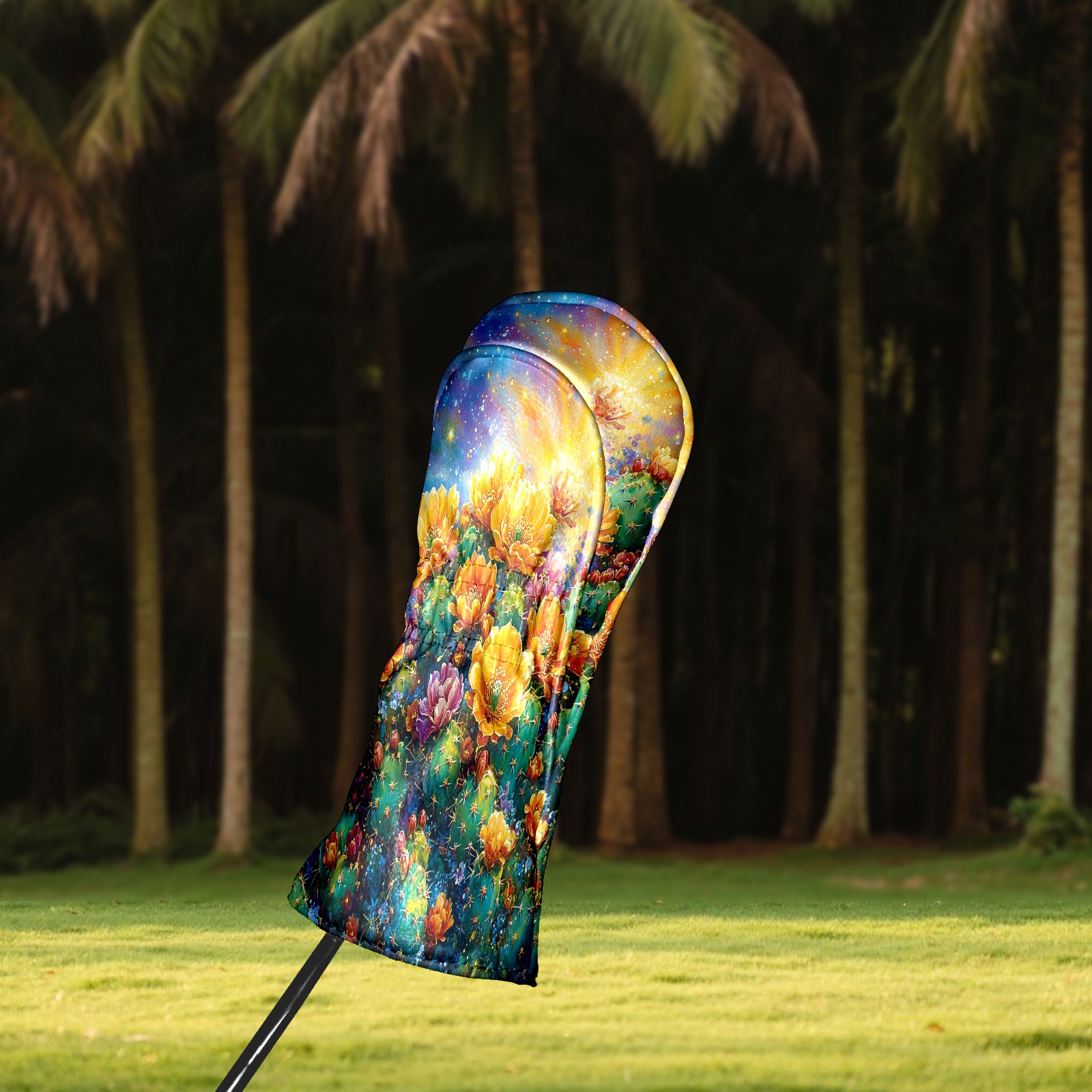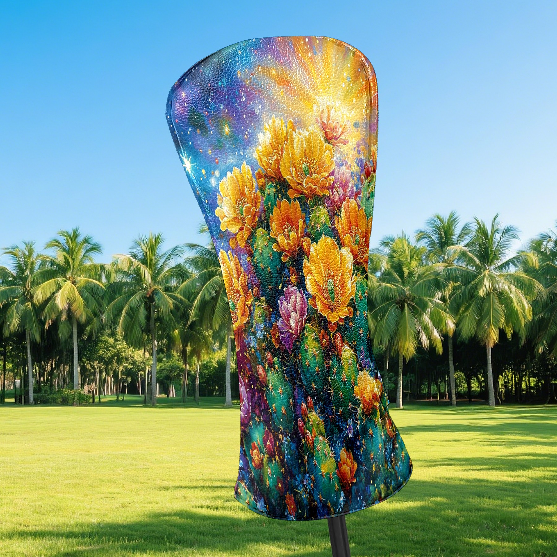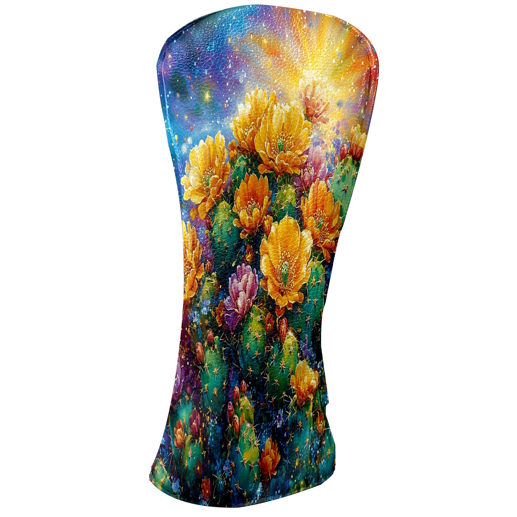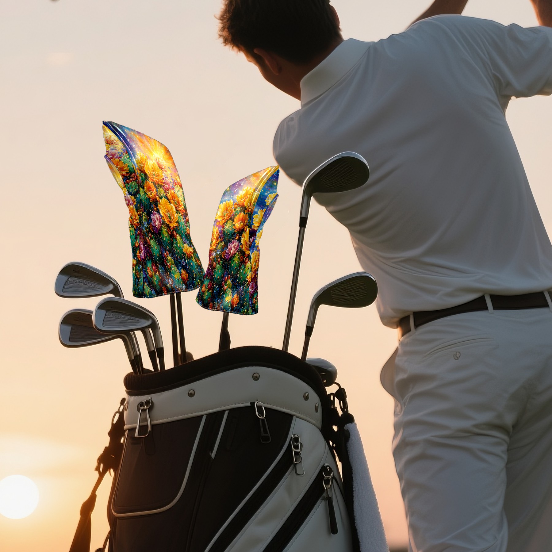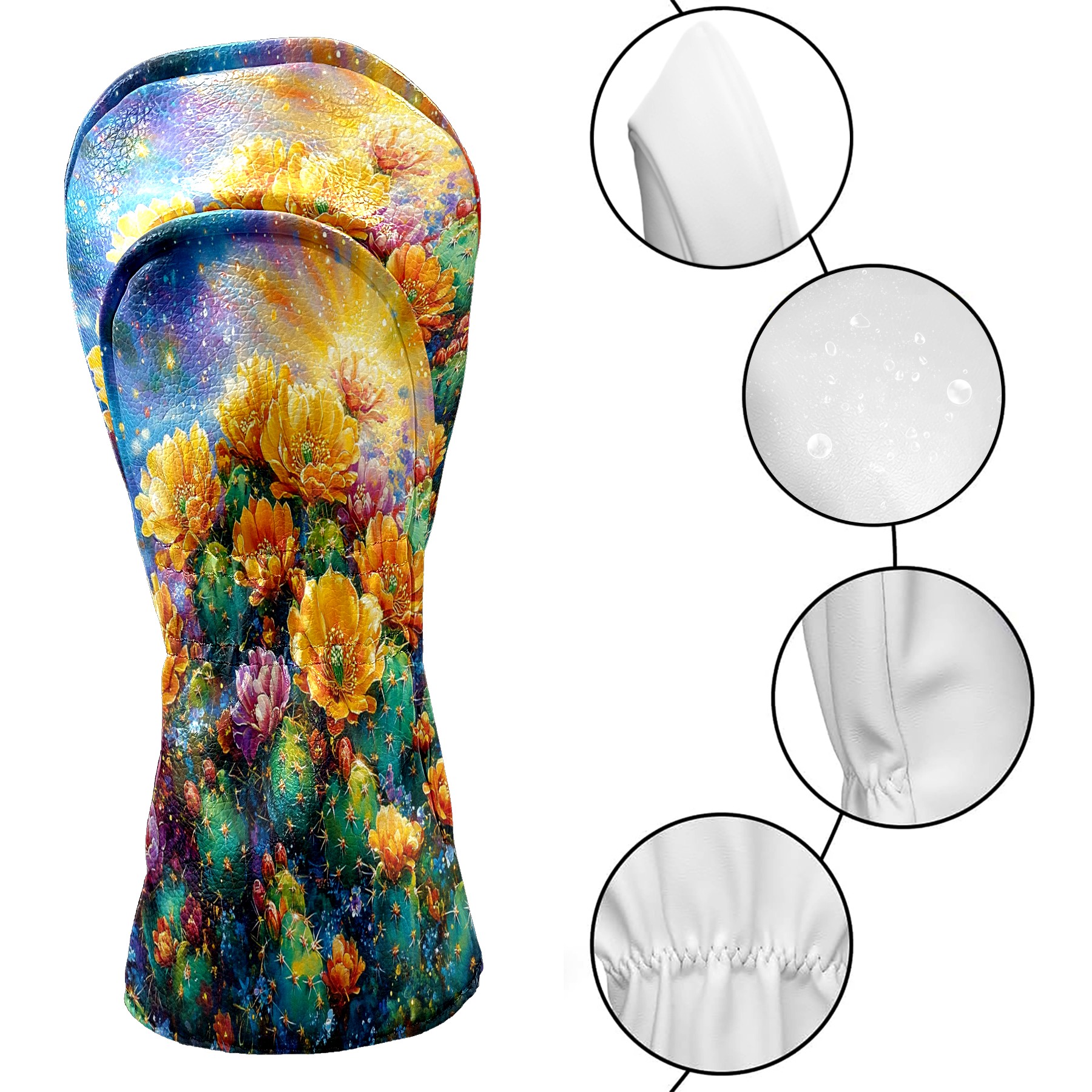 Golf Club Head Cover Premium Leather Driver Headcover, Golf Head Covers for Woods and Driver Waterproof Golf Headcovers with Anti-Scratch Lining for Men Women (Desert Cactus Golden)