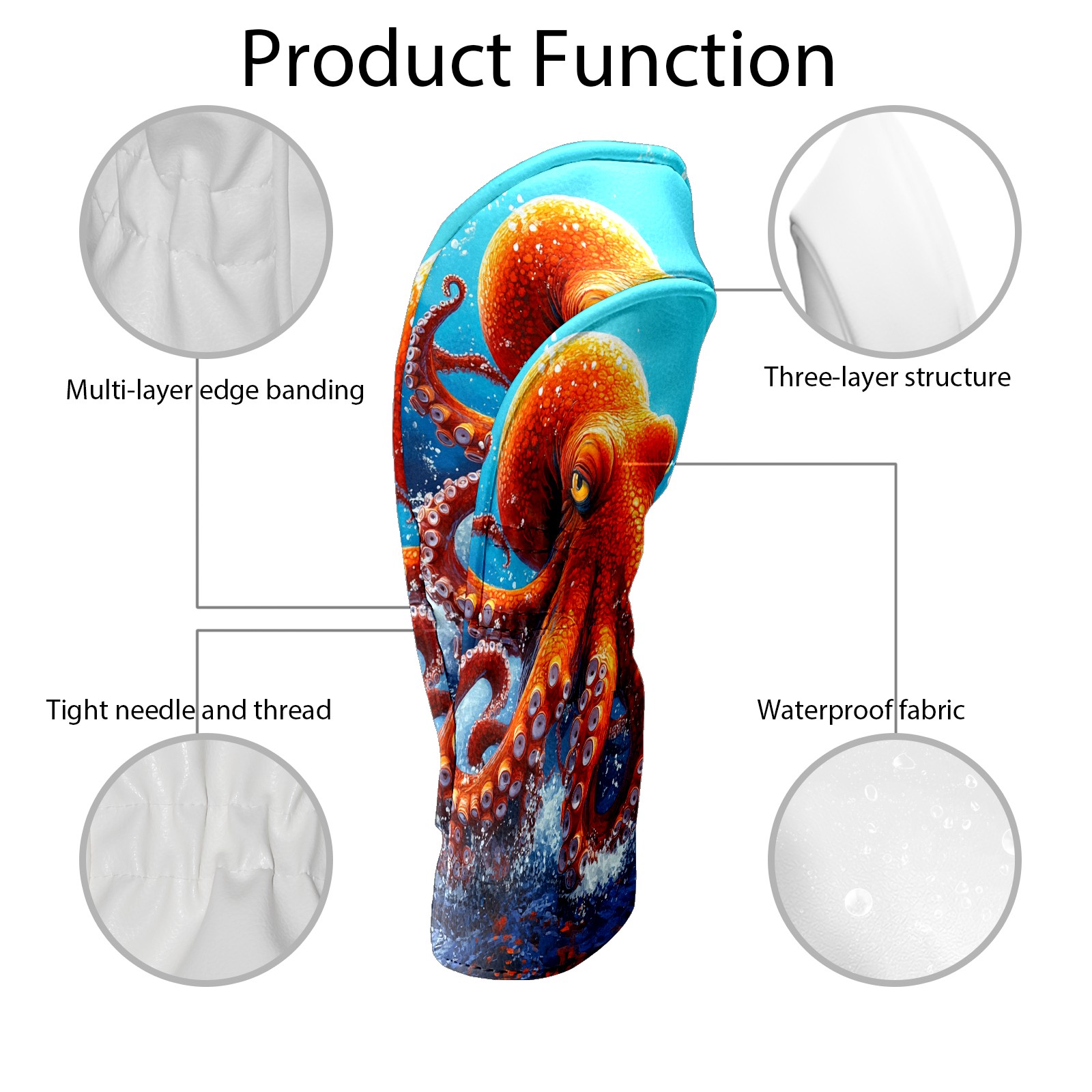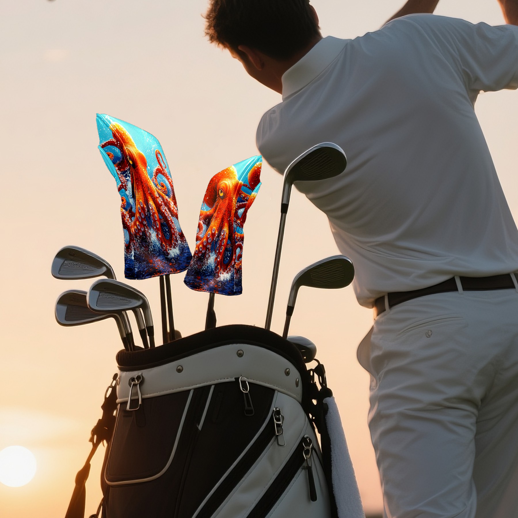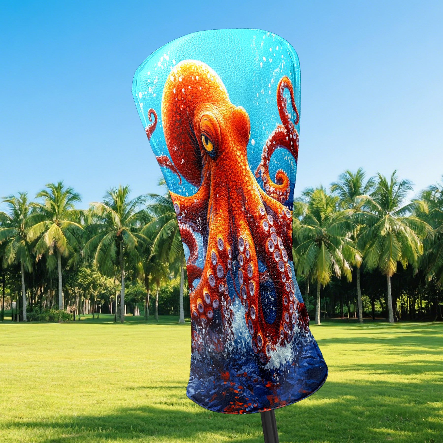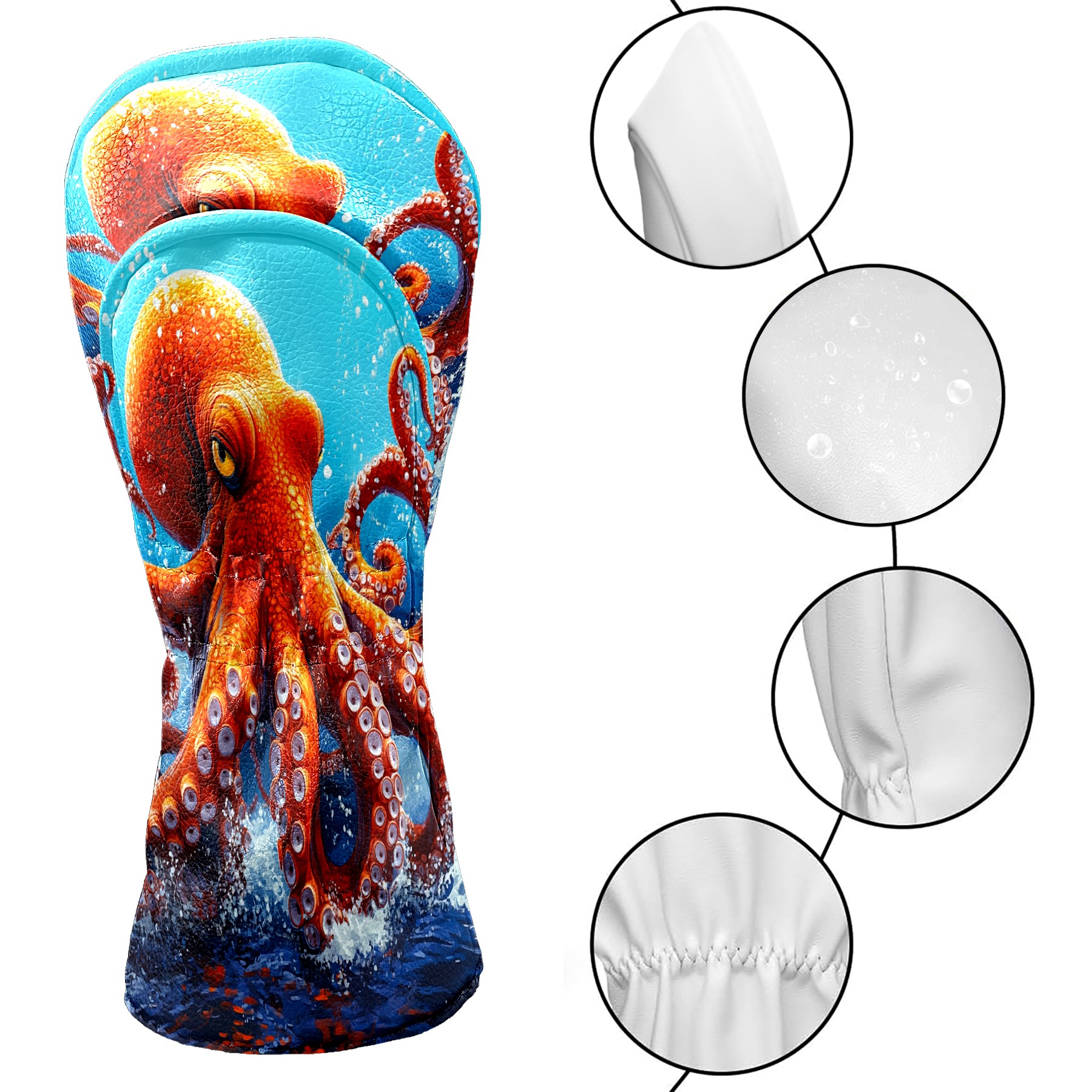Golf Club Head Cover Premium Leather Driver Headcover, Golf Head Covers for Woods and Driver Waterproof Golf Headcovers with Anti-Scratch Lining for Men Women (Red Octopus)