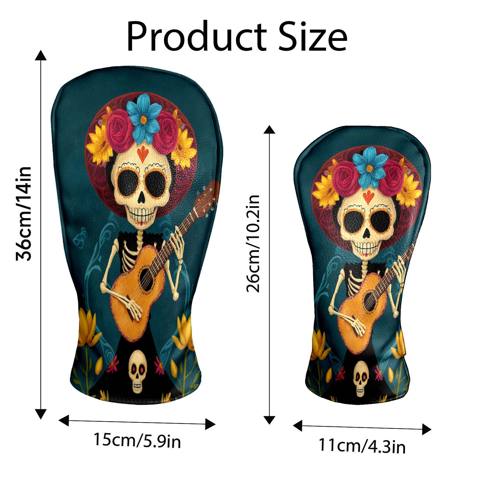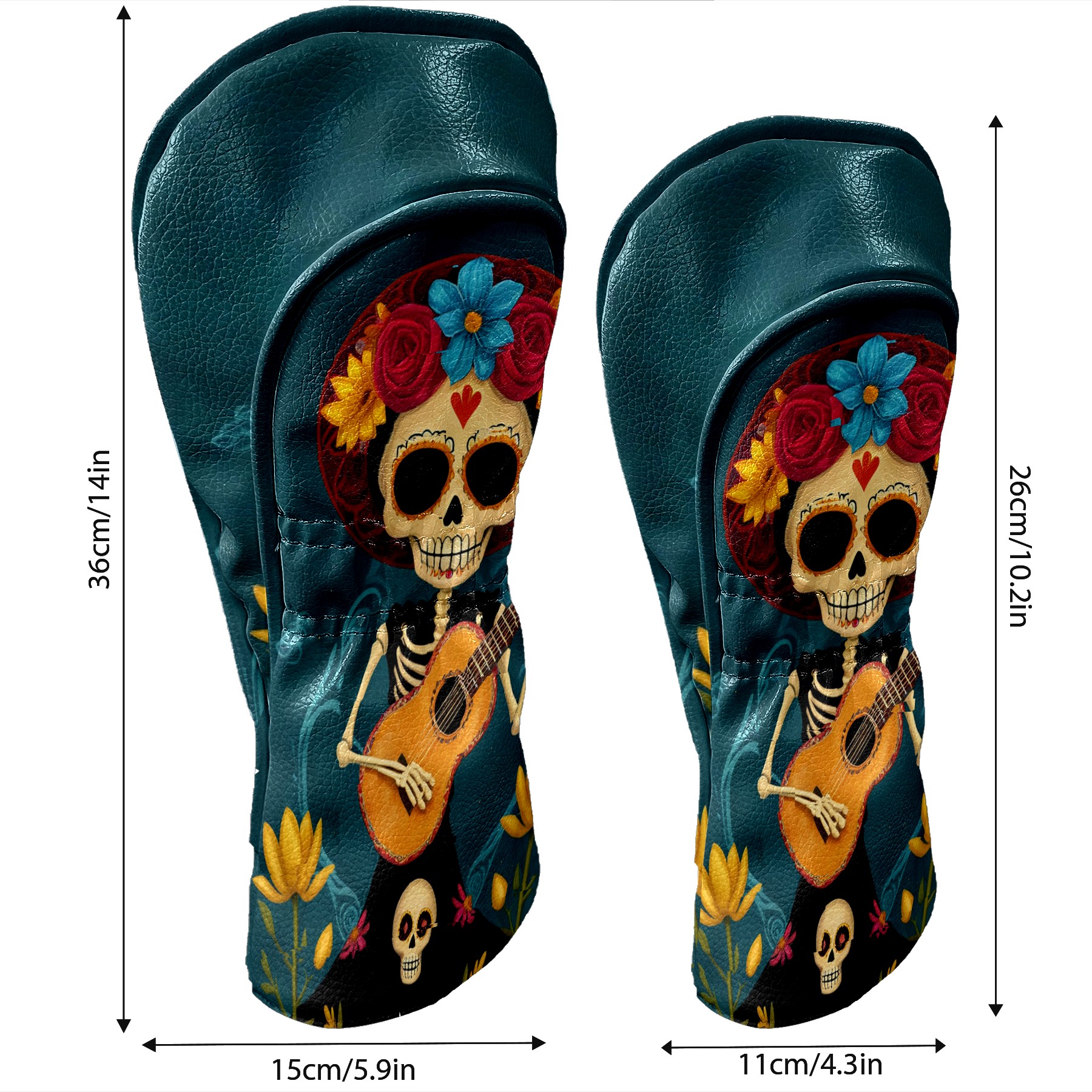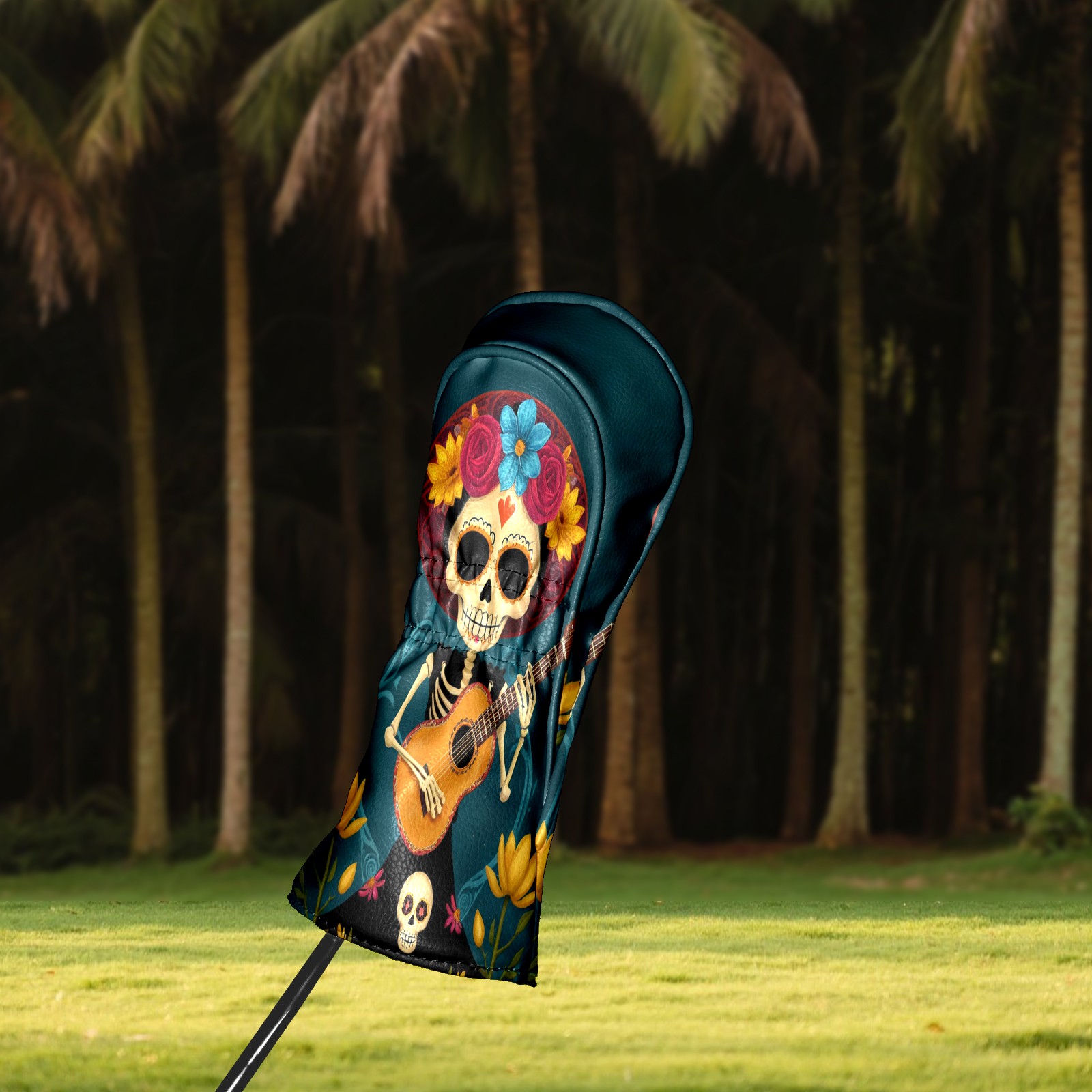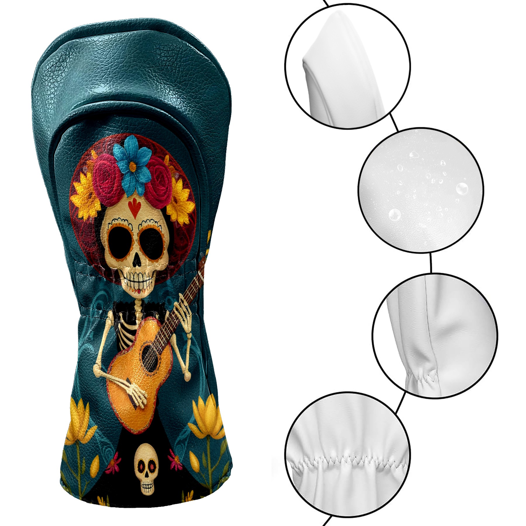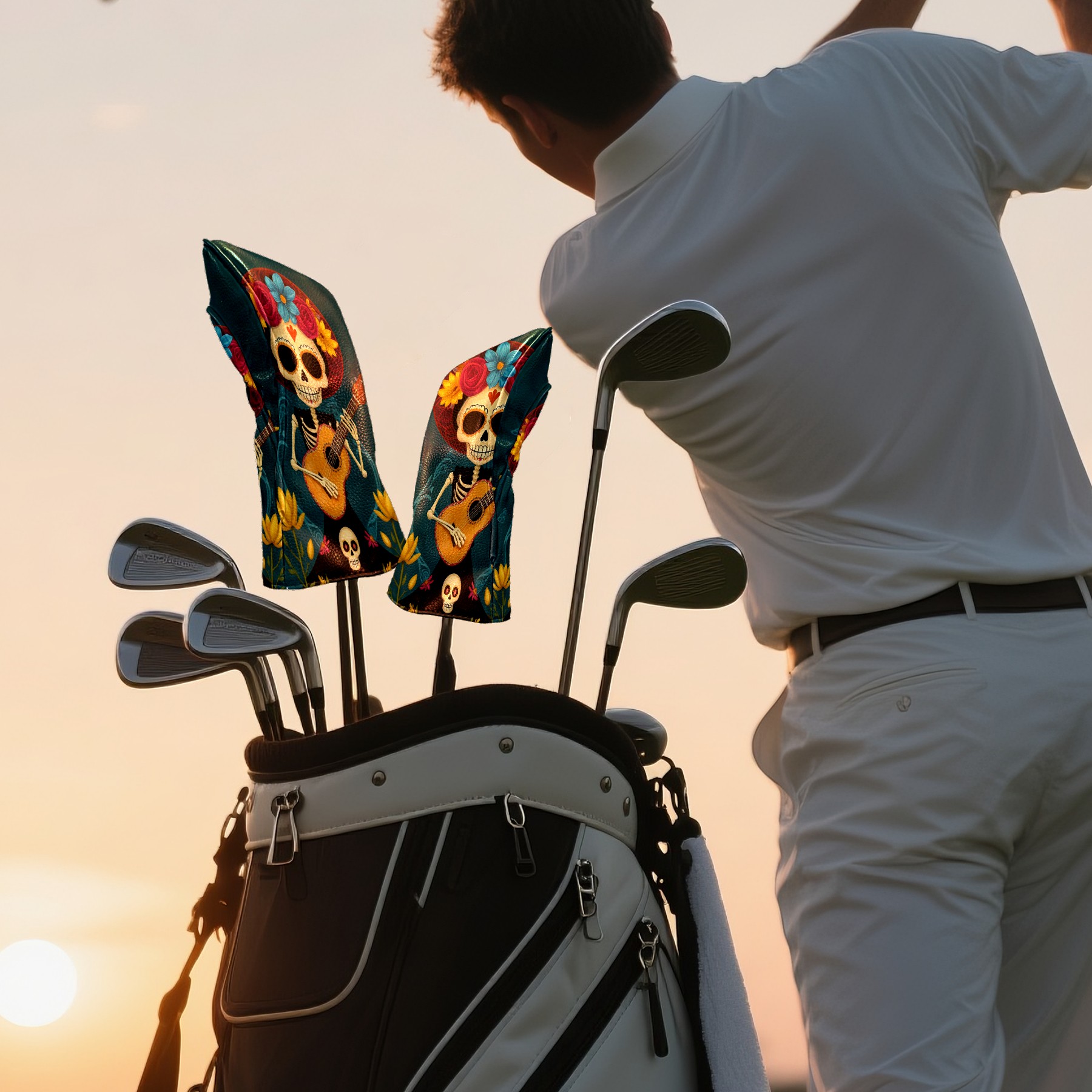 Golf Club Head Cover Premium Leather Driver Headcover, Golf Head Covers for Woods and Driver Waterproof Golf Headcovers with Anti-Scratch Lining for Men Women (Skull Floral)