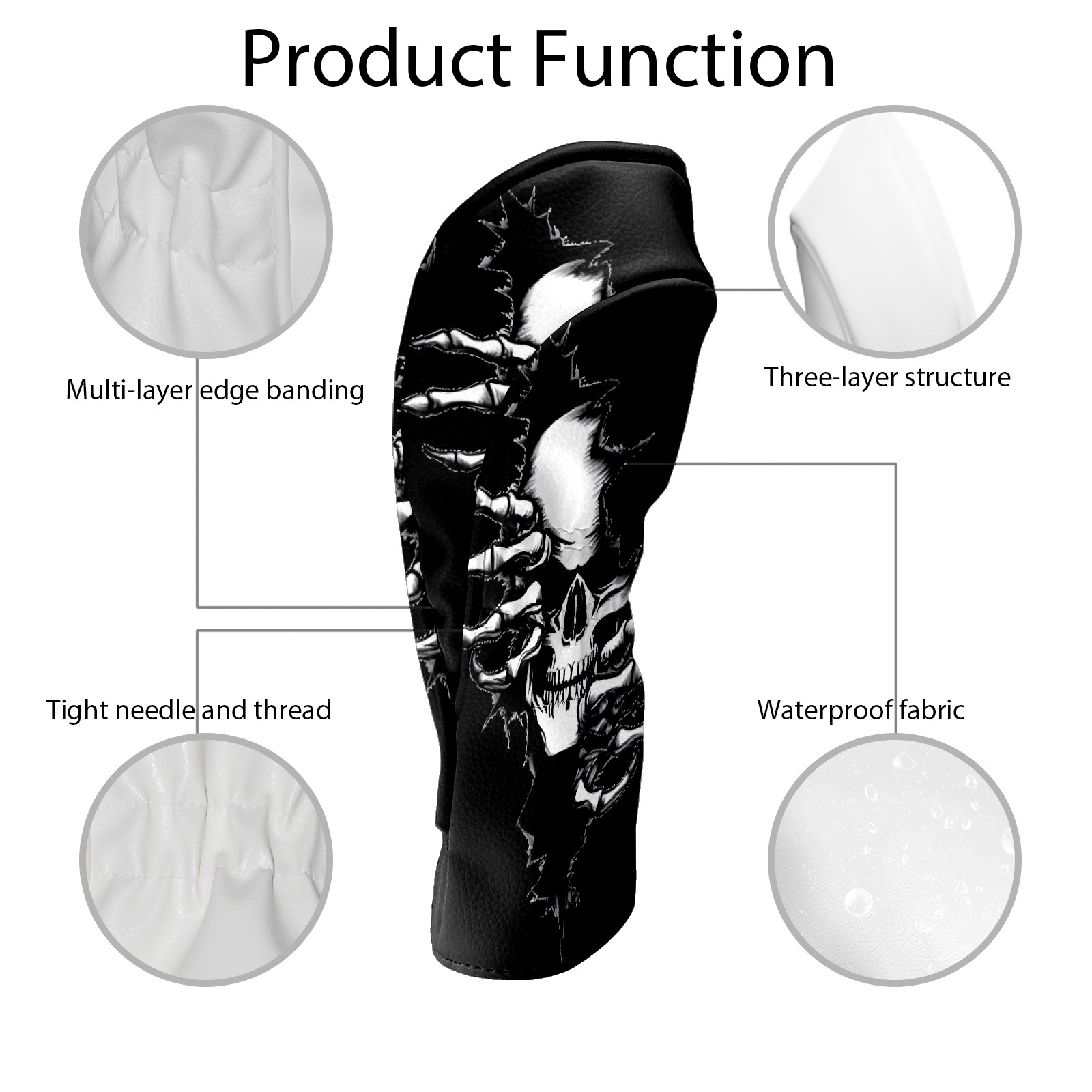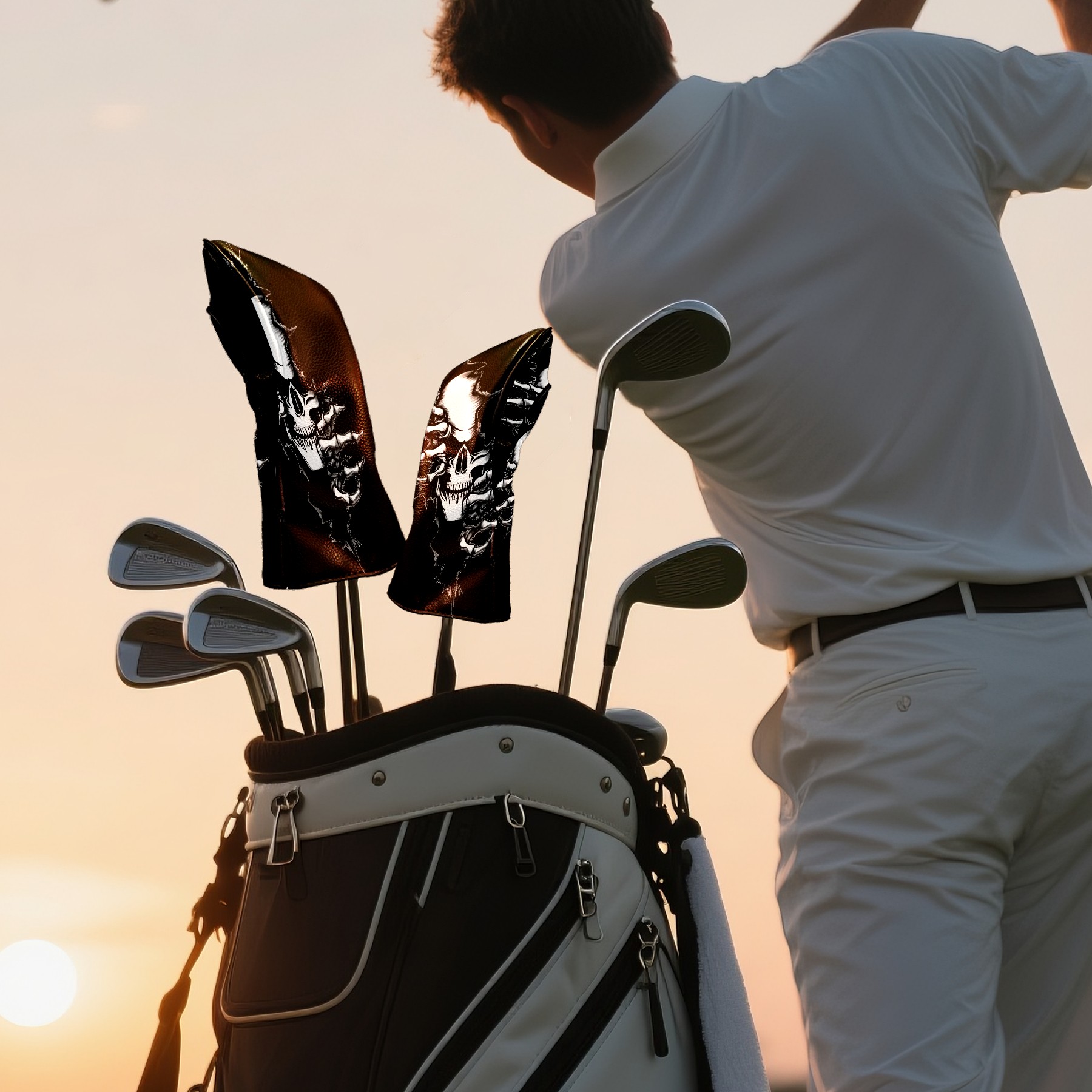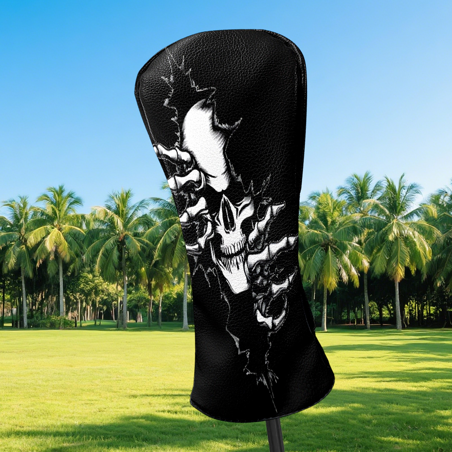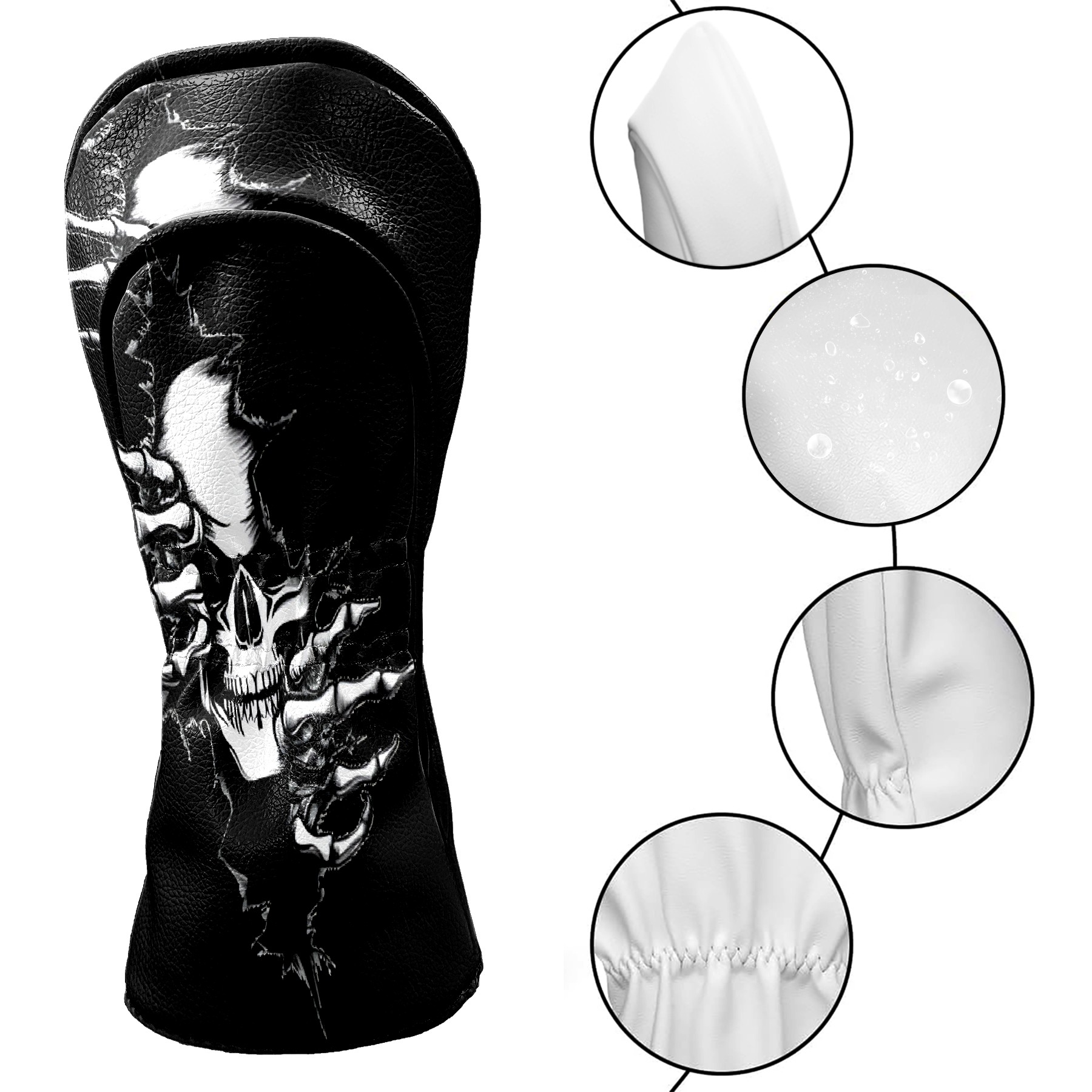 Golf Club Head Cover Premium Leather Driver Headcover, Golf Head Covers for Woods and Driver Waterproof Golf Headcovers with Anti-Scratch Lining for Men Women (Skeleton Skull)