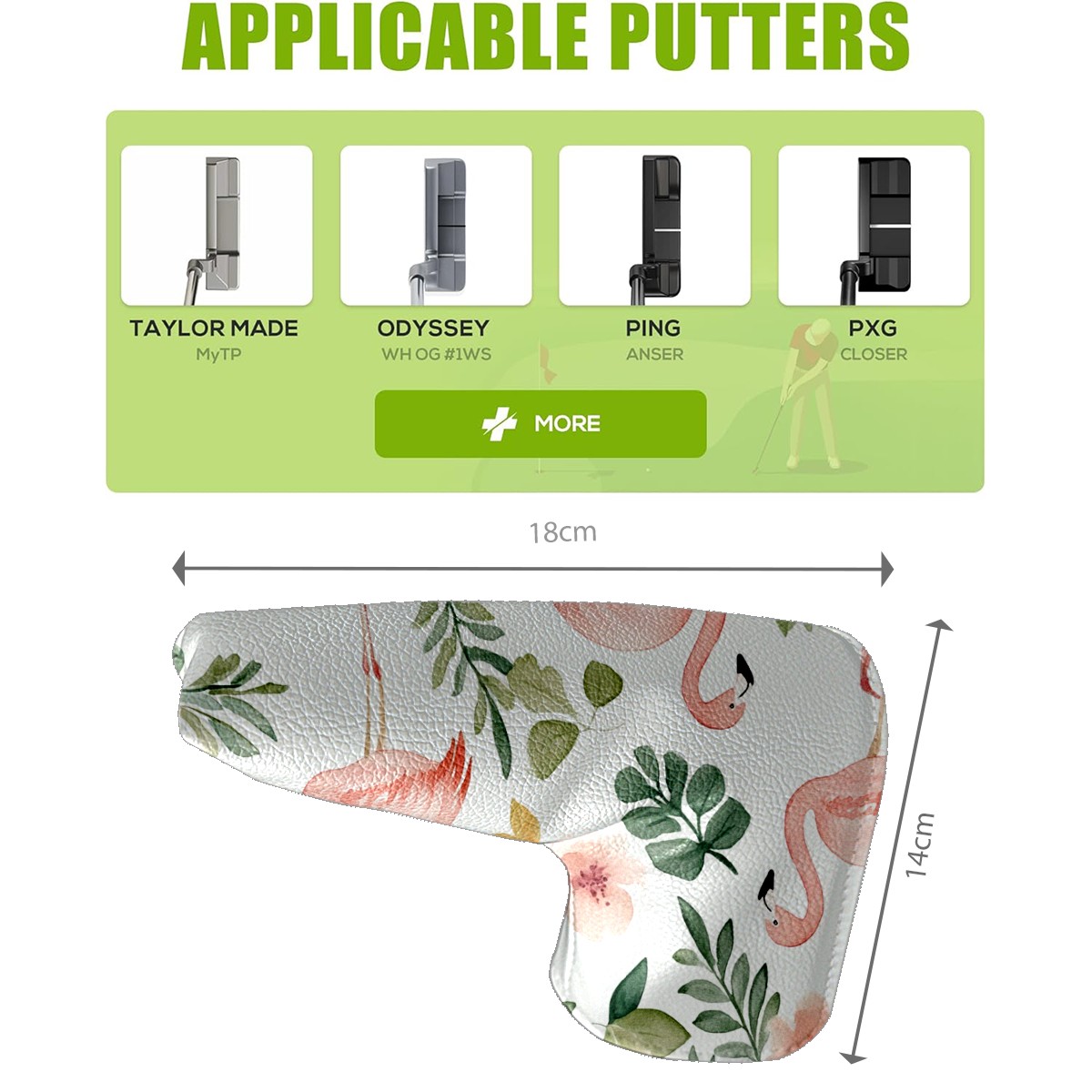 Professional Golf Club Head Covers Set for Blade Putter - Waterproof Design with Stretchable Fit, Universal Club Protection for Men & Women (Flamingo Tropical Leaves)