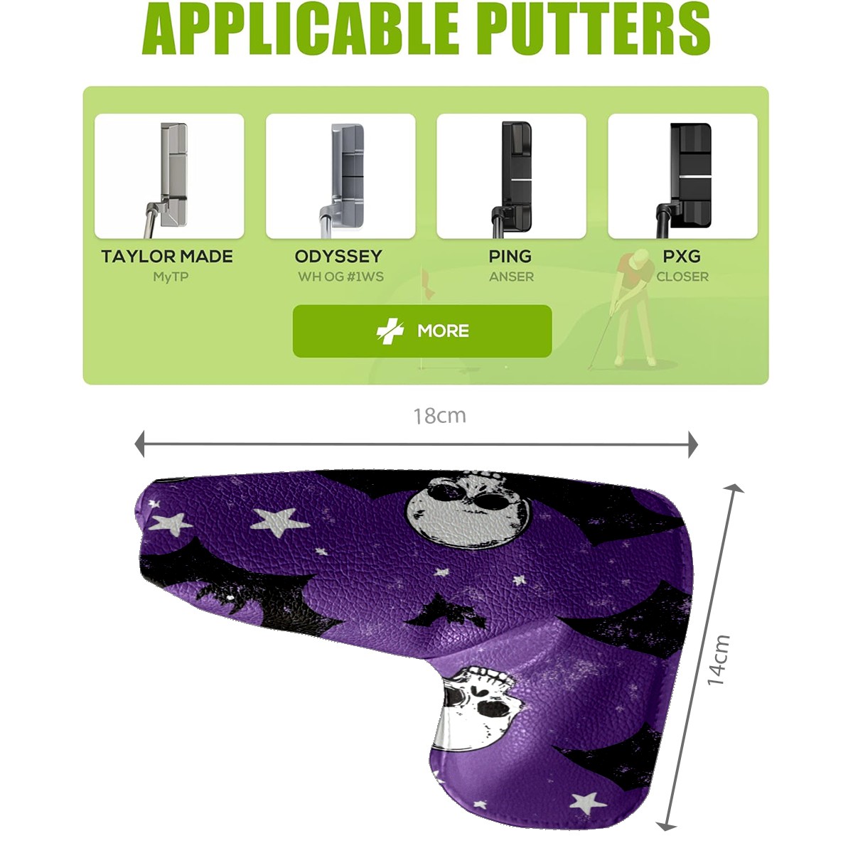 Black Golf Club Head Cover Golf Accessories Head Covers Set for Driver & Fairway Woods Accessories for Men Women Bats And Skulls
