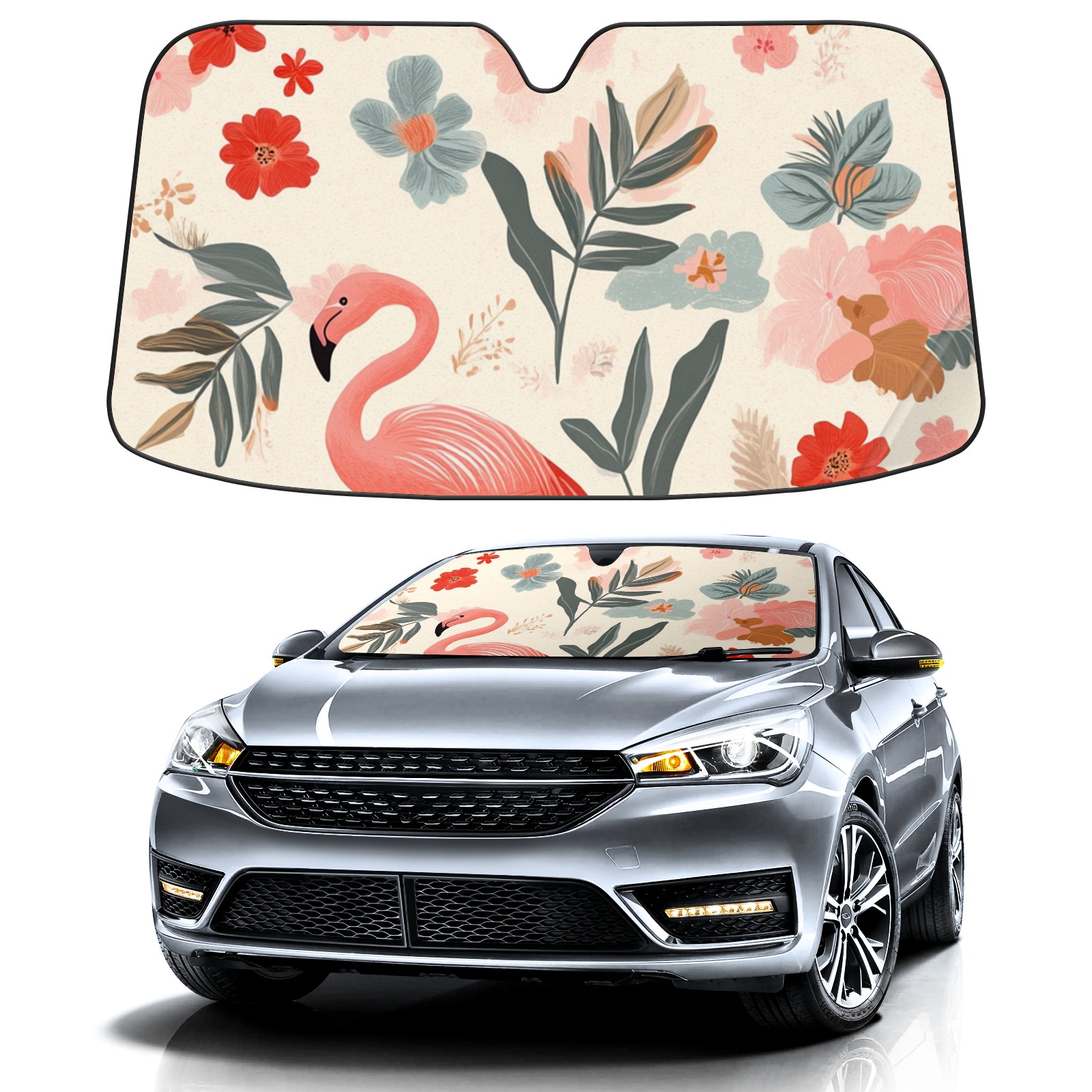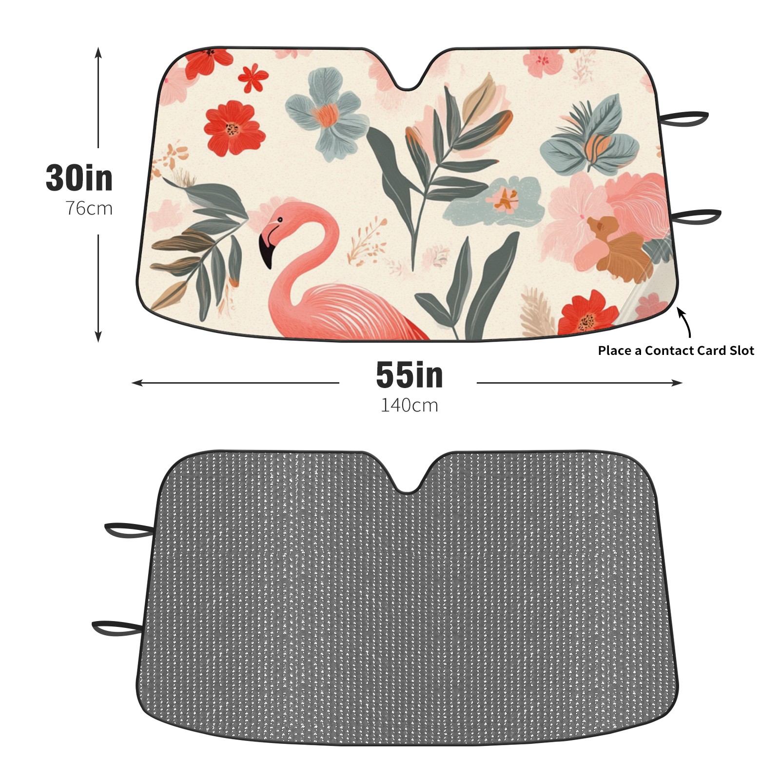 Aluminum Foil Polyester Car Sunshade Pad, Efficient Heat Insulation And Sun Protection ArtifactPink Flamingos
