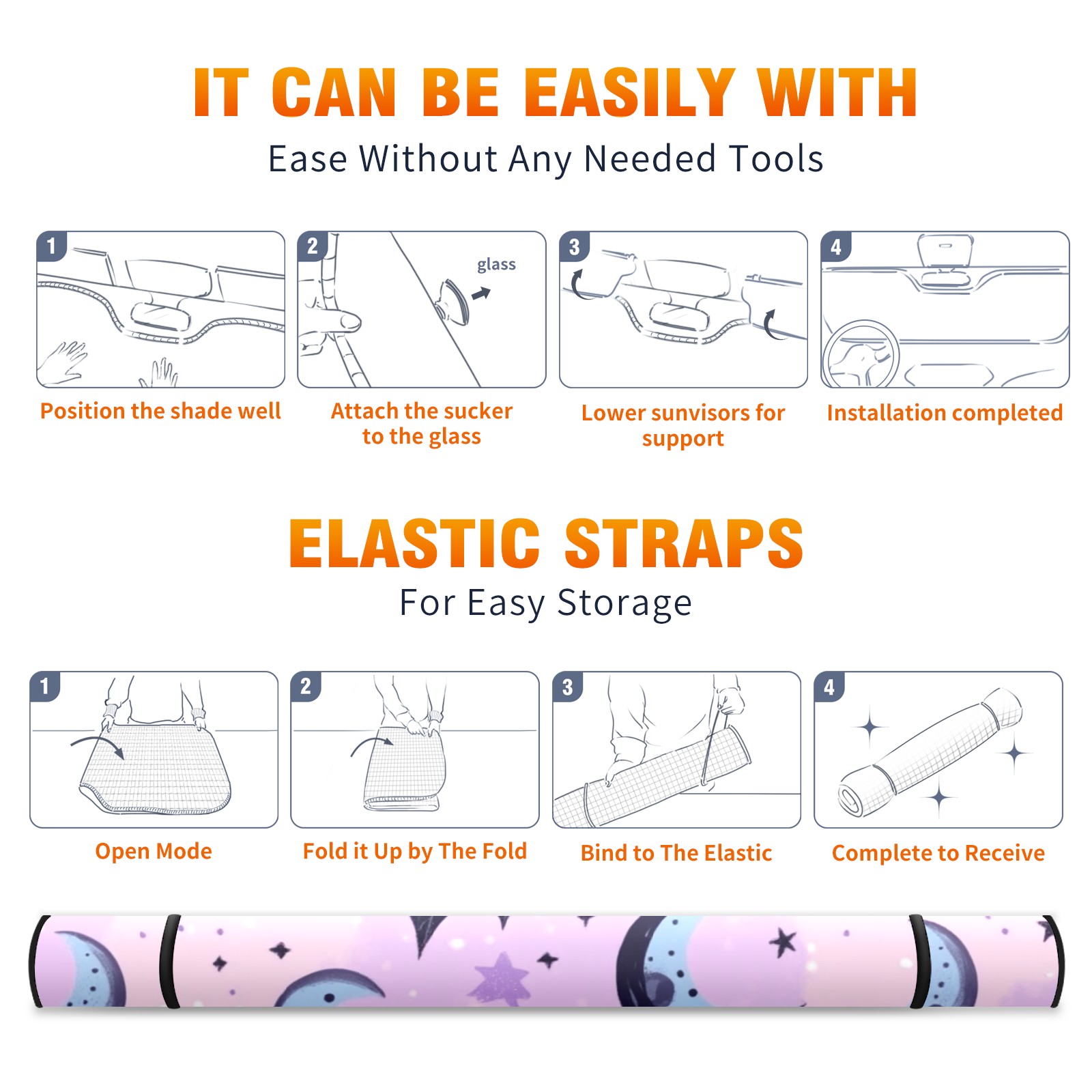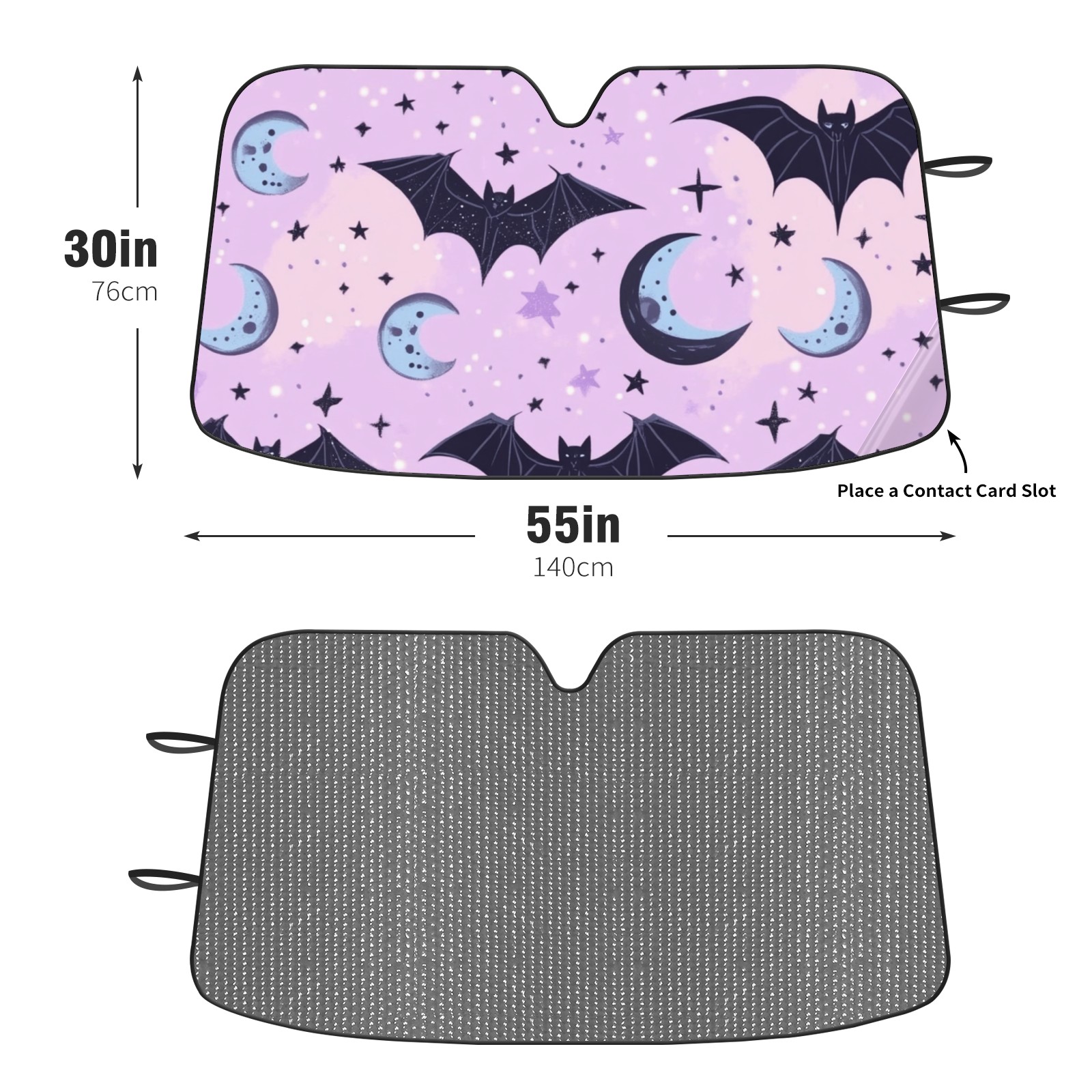 Aluminum Foil Polyester Car Sunshade Pad, Efficient Heat Insulation And Sun Protection ArtifactBats Moons And Stars