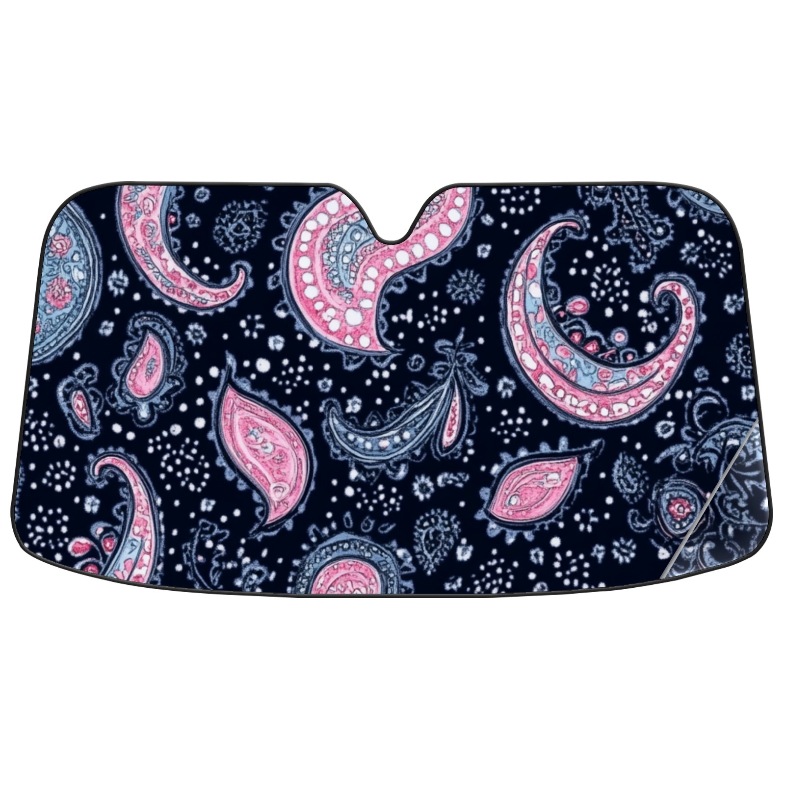 Aluminum Foil Polyester Car Sunshade Pad, Efficient Heat Insulation And Sun Protection ArtifactDark Blue And Pink Paisley