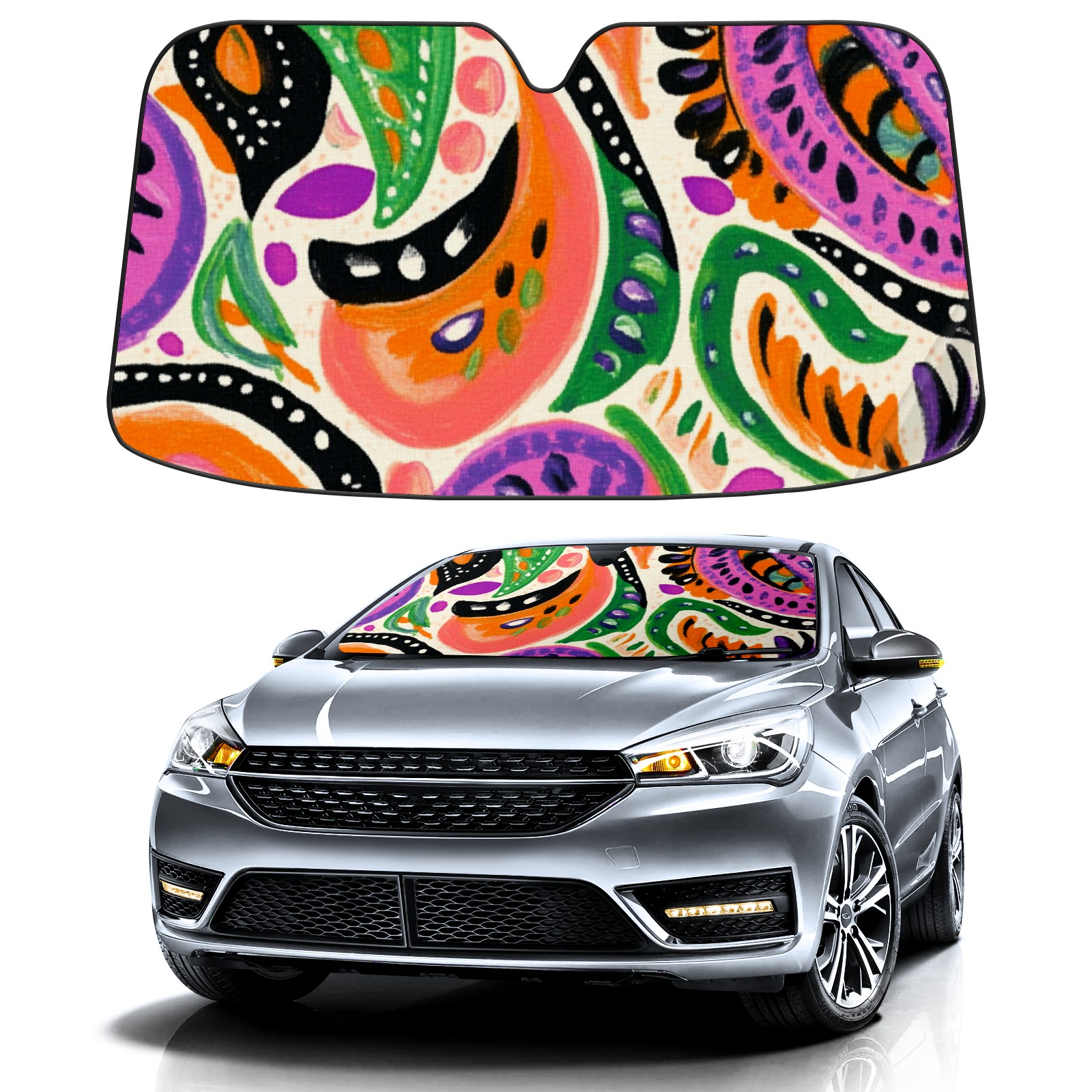 Aluminum Foil Polyester Car Sunshade Pad, Efficient Heat Insulation And Sun Protection ArtifactPaisley