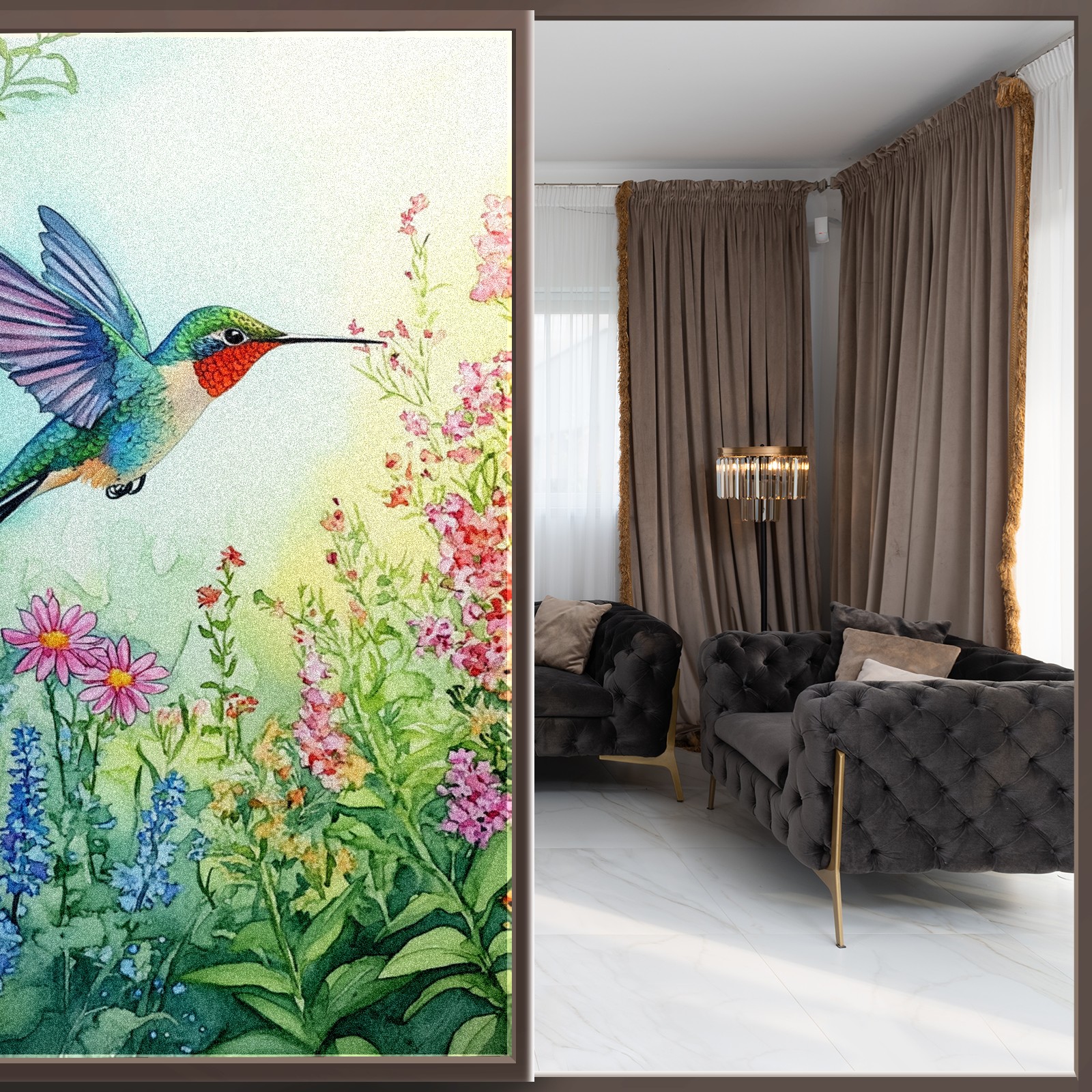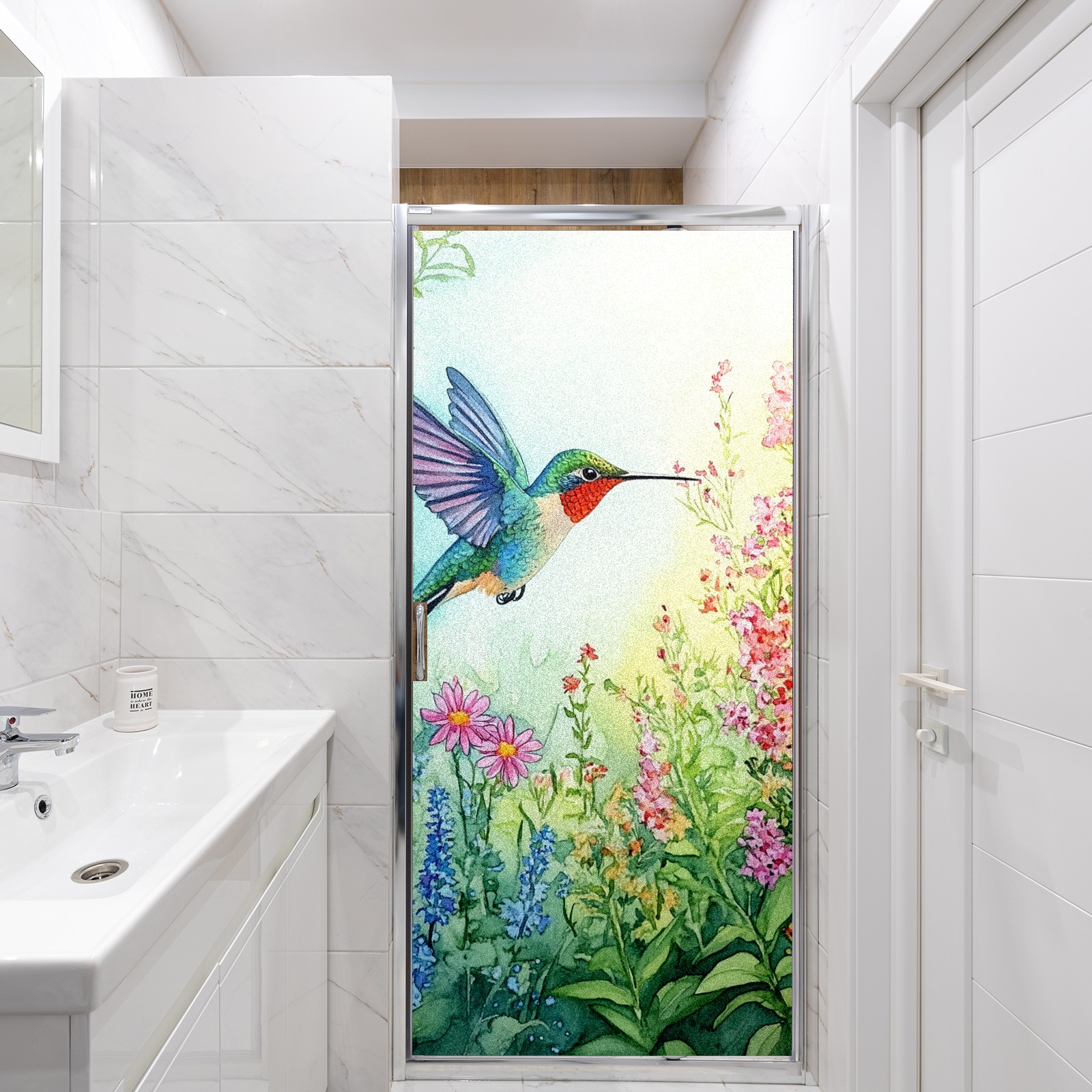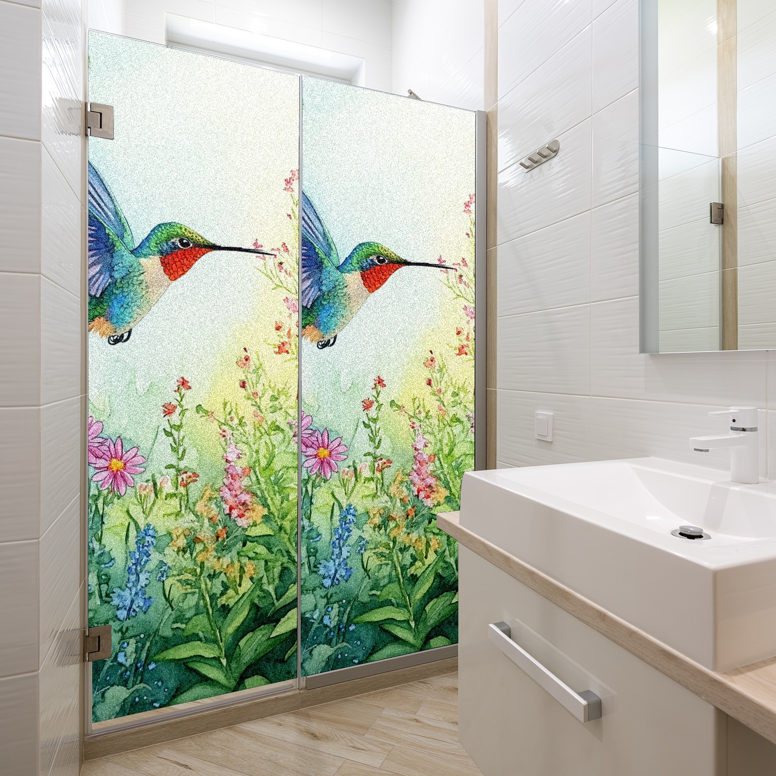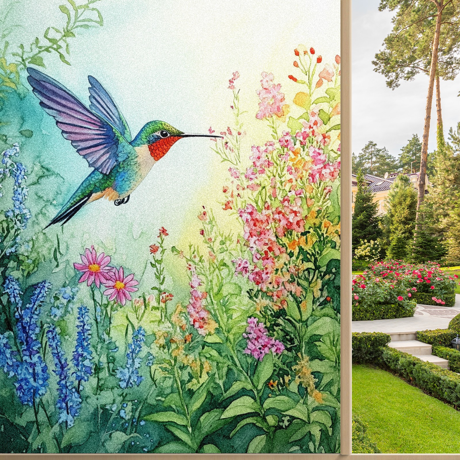 MSINMKOK Window Privacy Film Watercolor Hummingbird Decorative Frosted Glass Window Film for Glass Door Bathroom Window 17.7'' x 23.6'' Non-Adhesive Window Decals Stickers