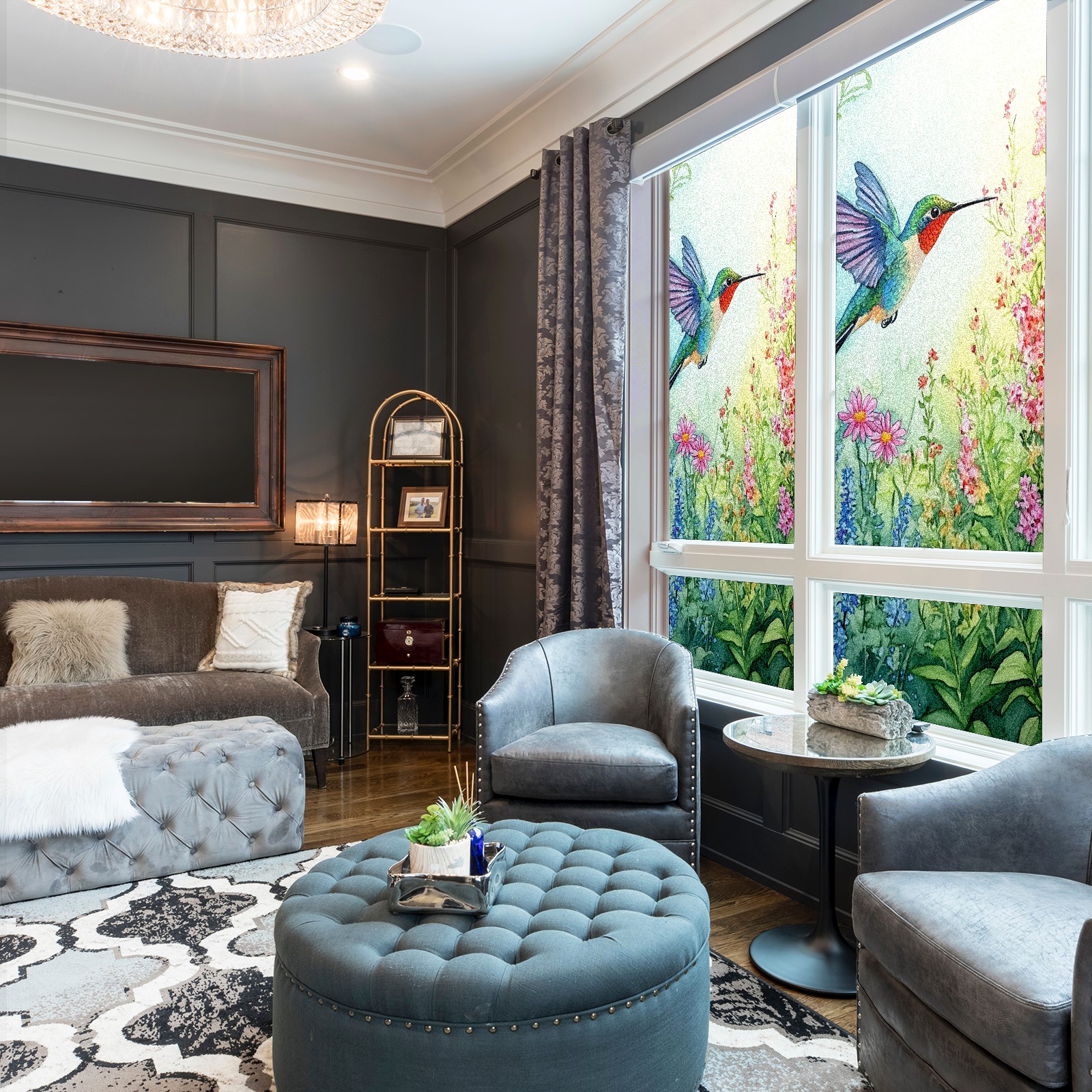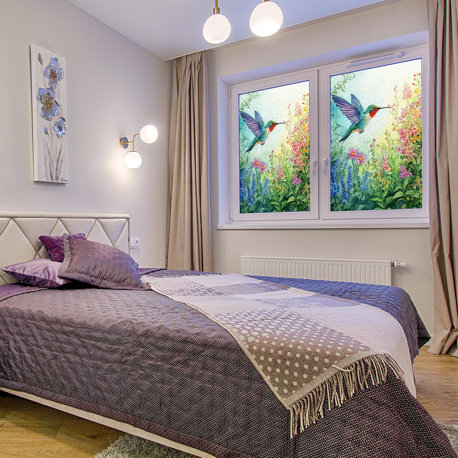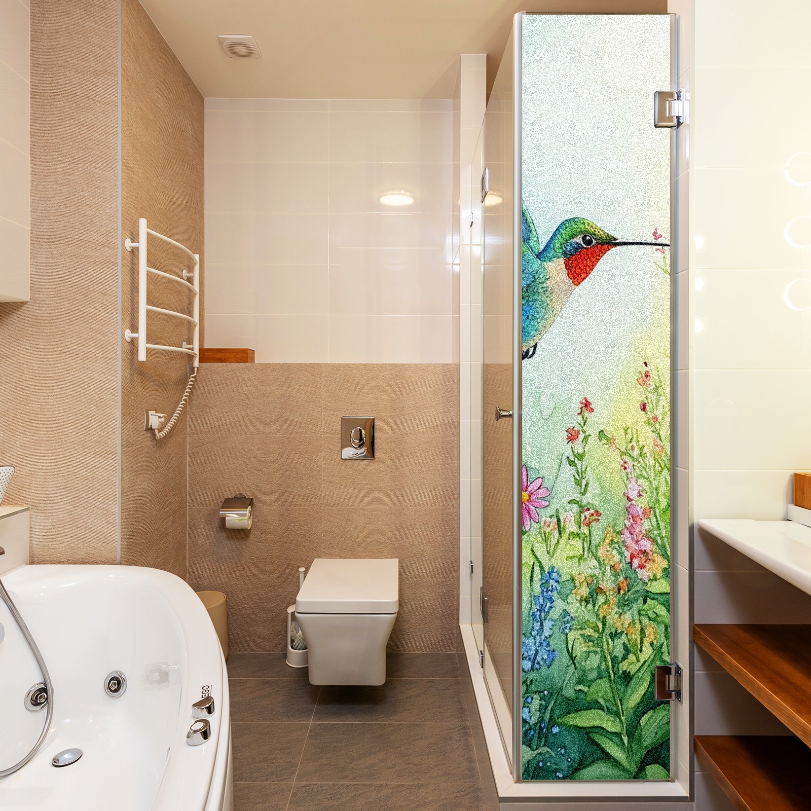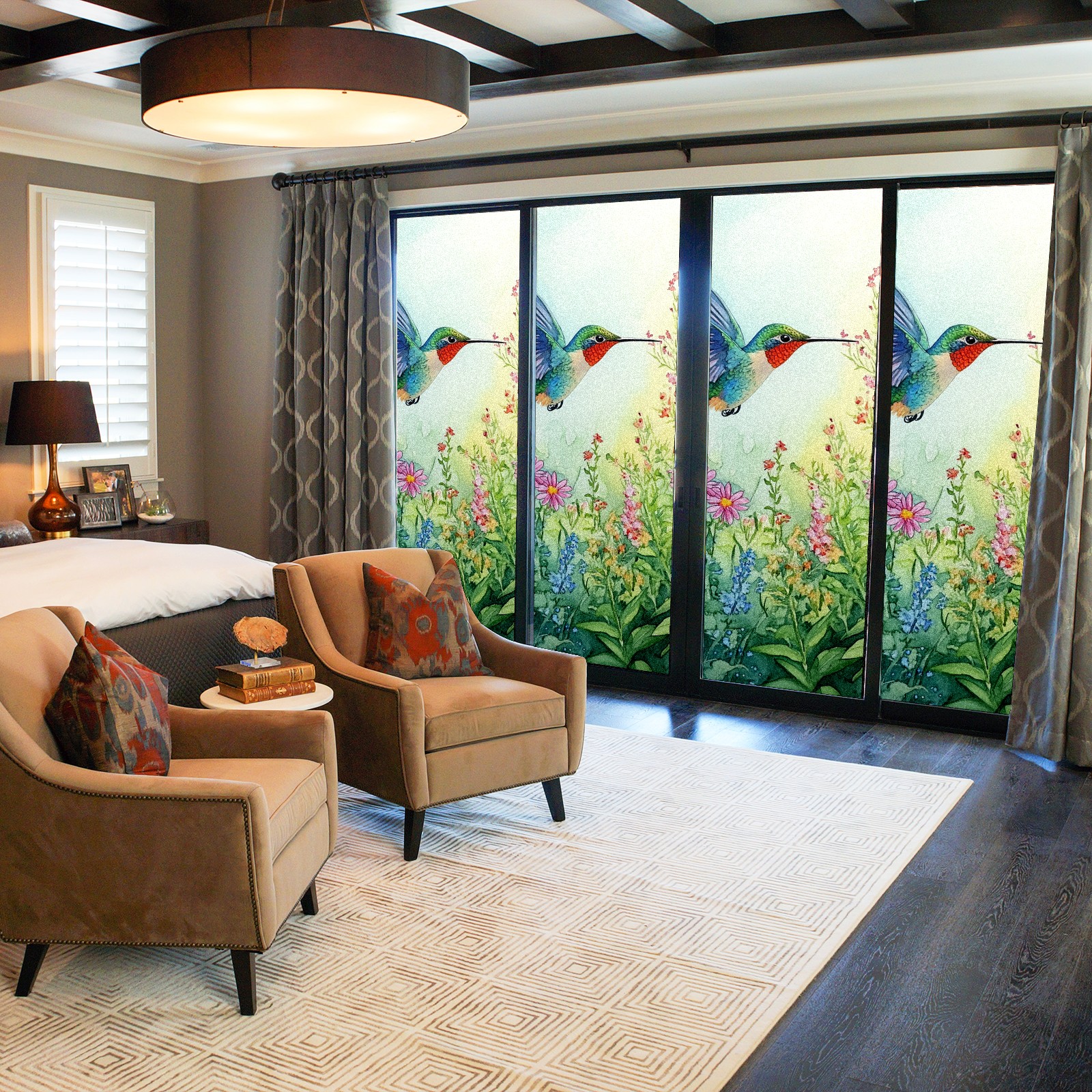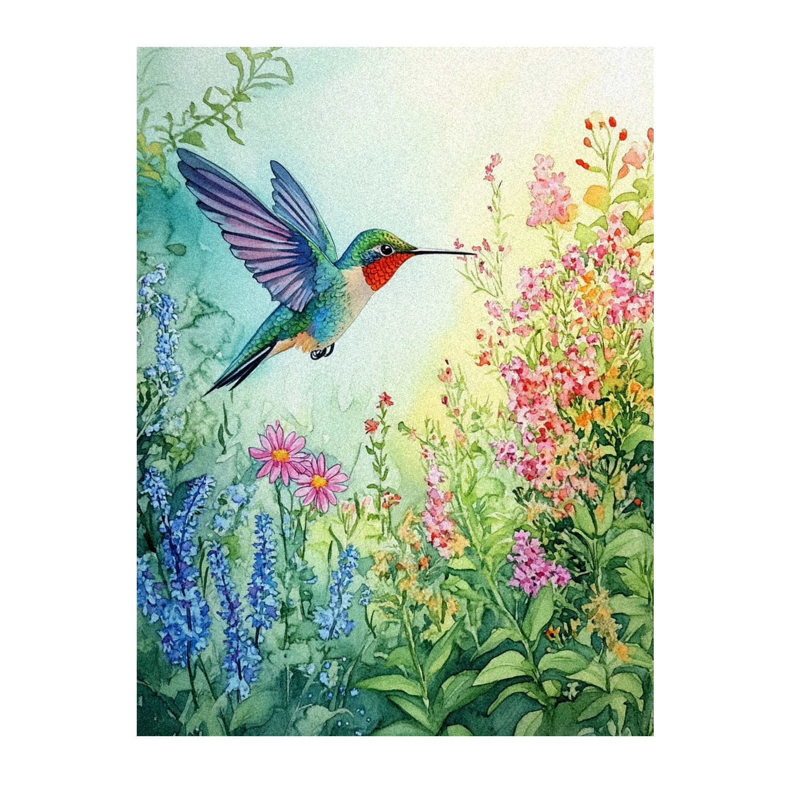 MSINMKOK Window Privacy Film Watercolor Hummingbird Decorative Frosted Glass Window Film for Glass Door Bathroom Window 17.7'' x 23.6'' Non-Adhesive Window Decals Stickers