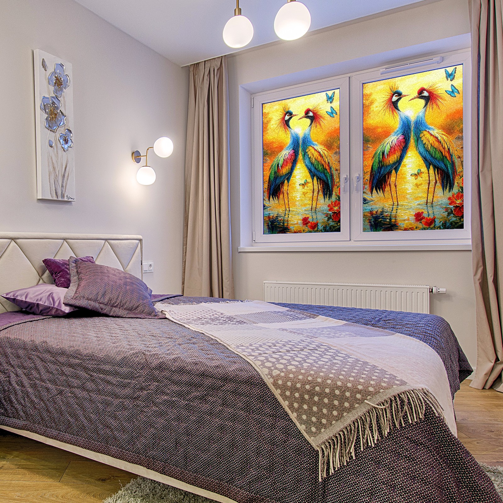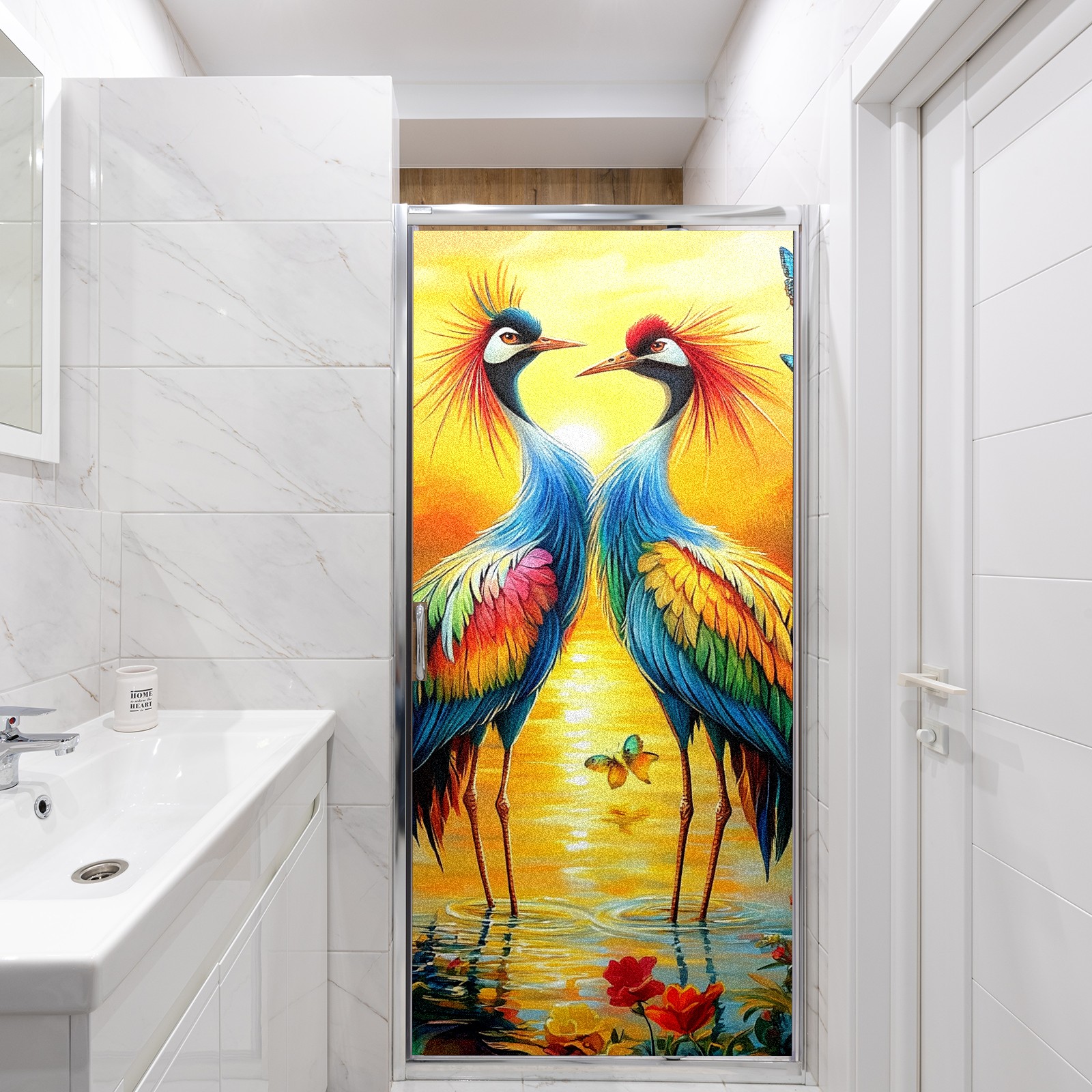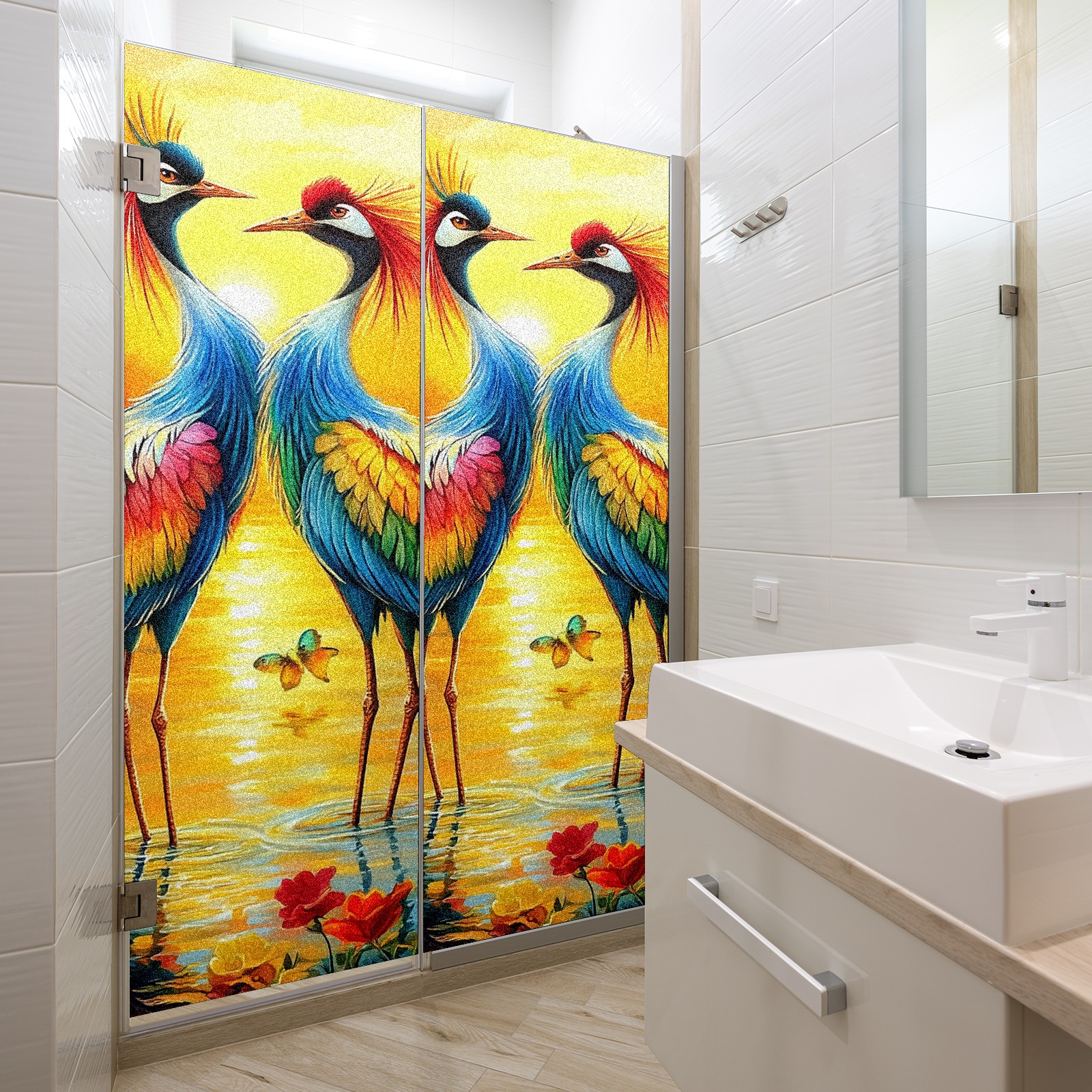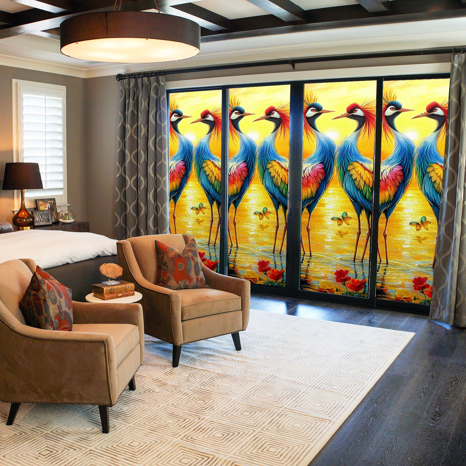 MSINMKOK Window Privacy Film Colorful Cranes Decorative Frosted Glass Window Film for Glass Door Bathroom Window 17.7'' x 23.6'' Non-Adhesive Window Decals Stickers