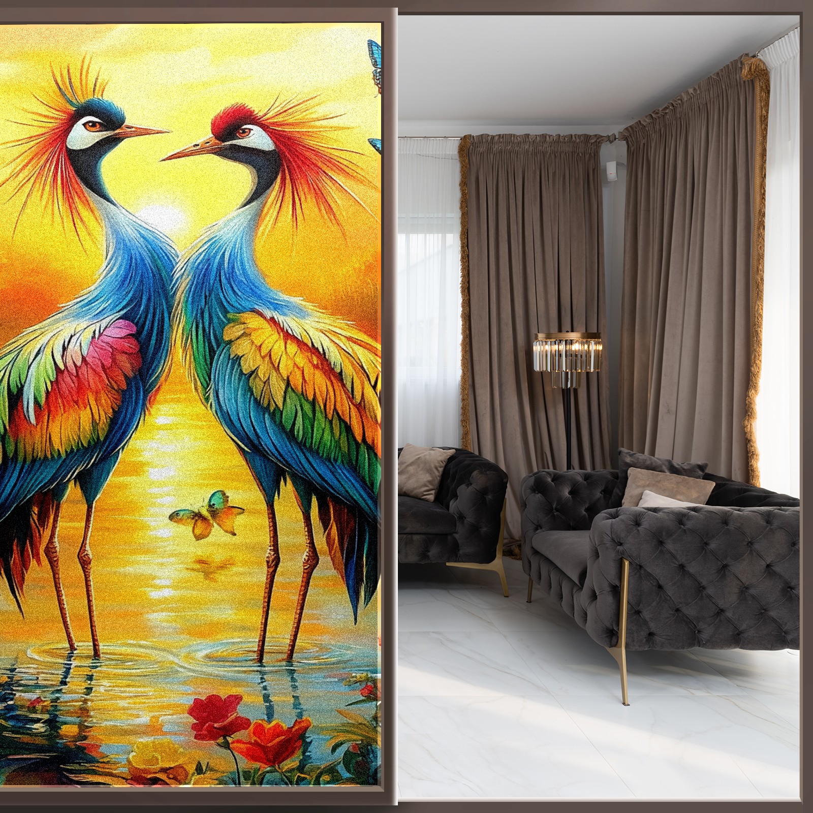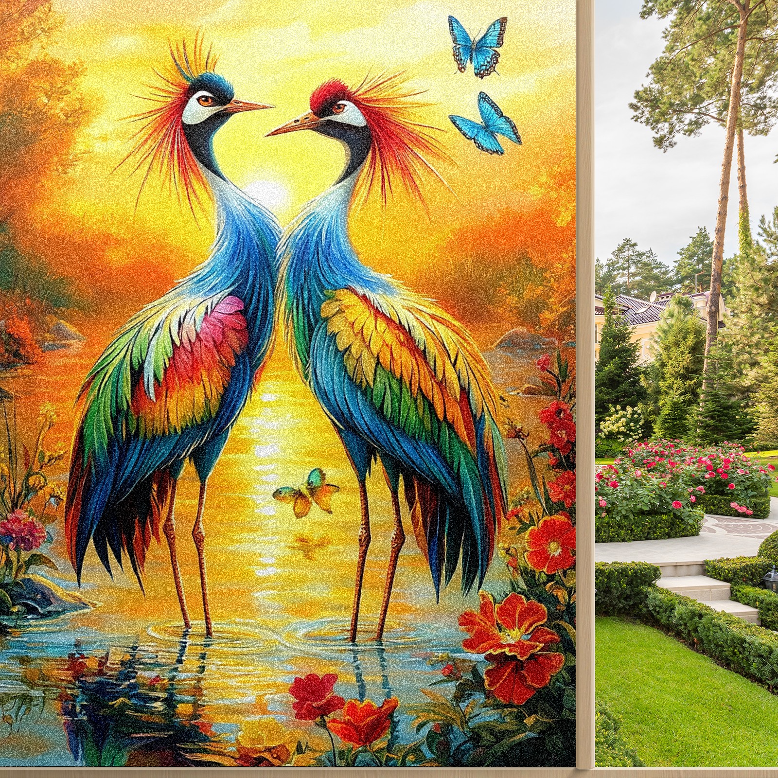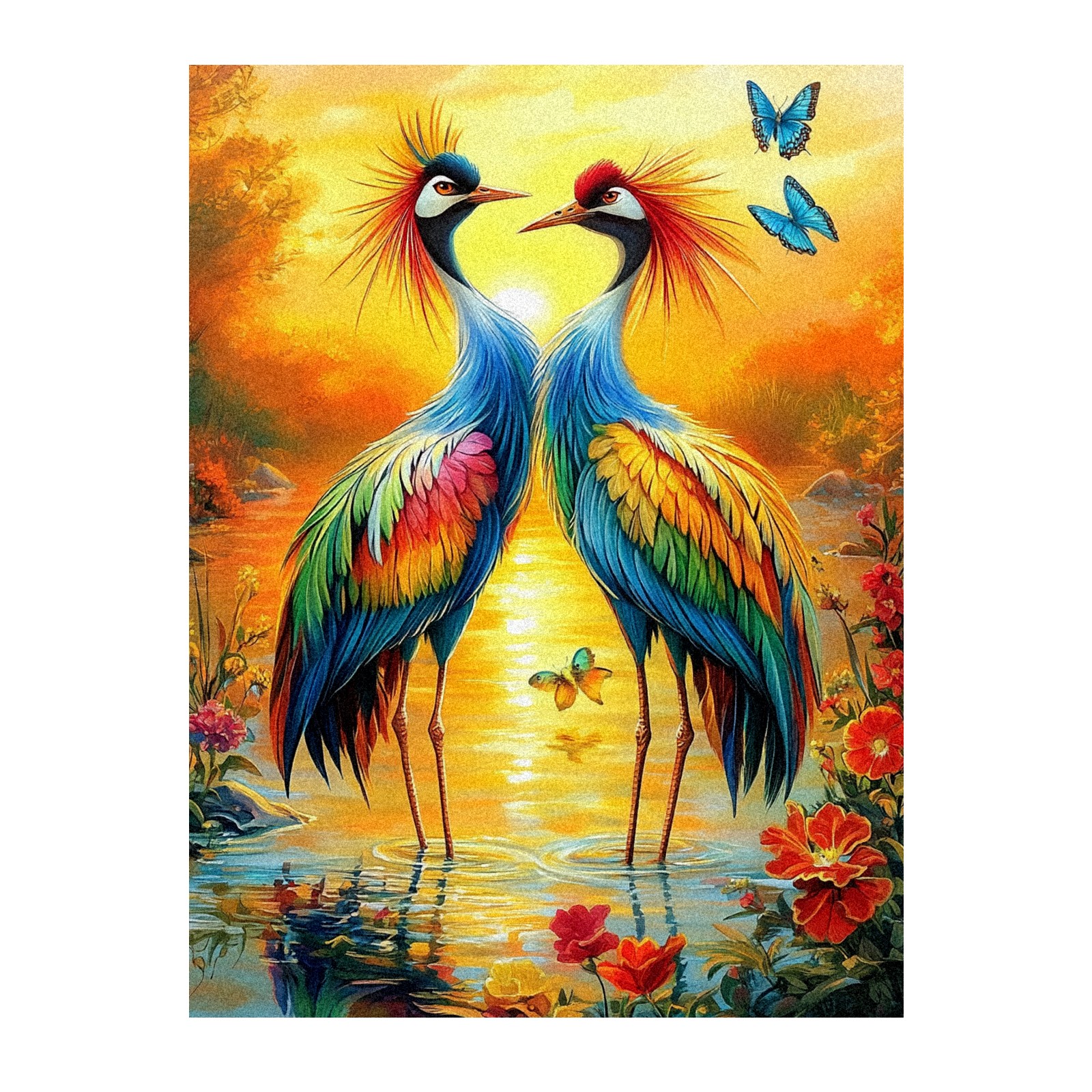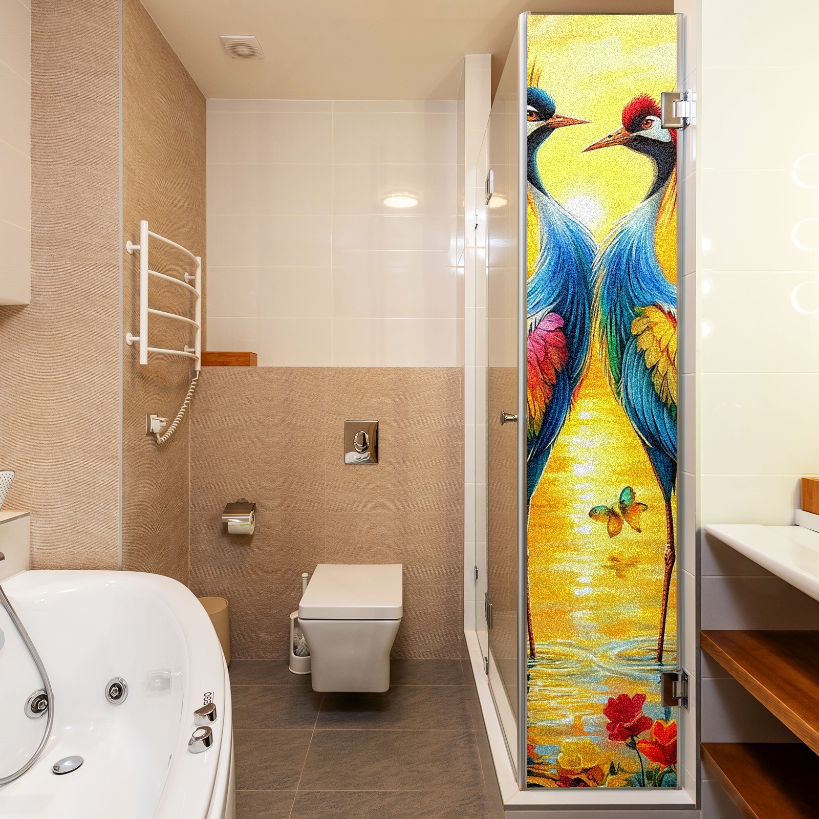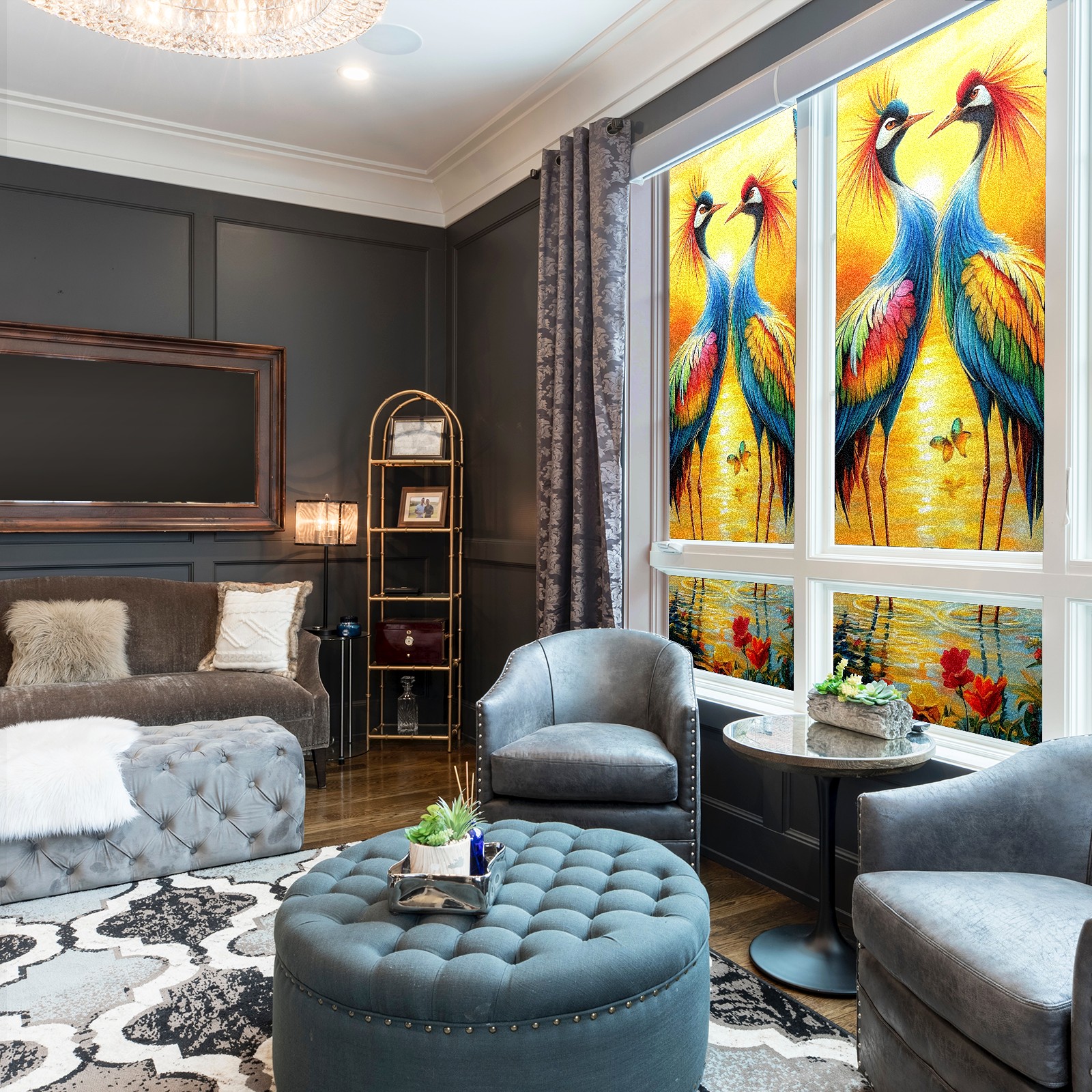 MSINMKOK Window Privacy Film Colorful Cranes Decorative Frosted Glass Window Film for Glass Door Bathroom Window 17.7'' x 23.6'' Non-Adhesive Window Decals Stickers