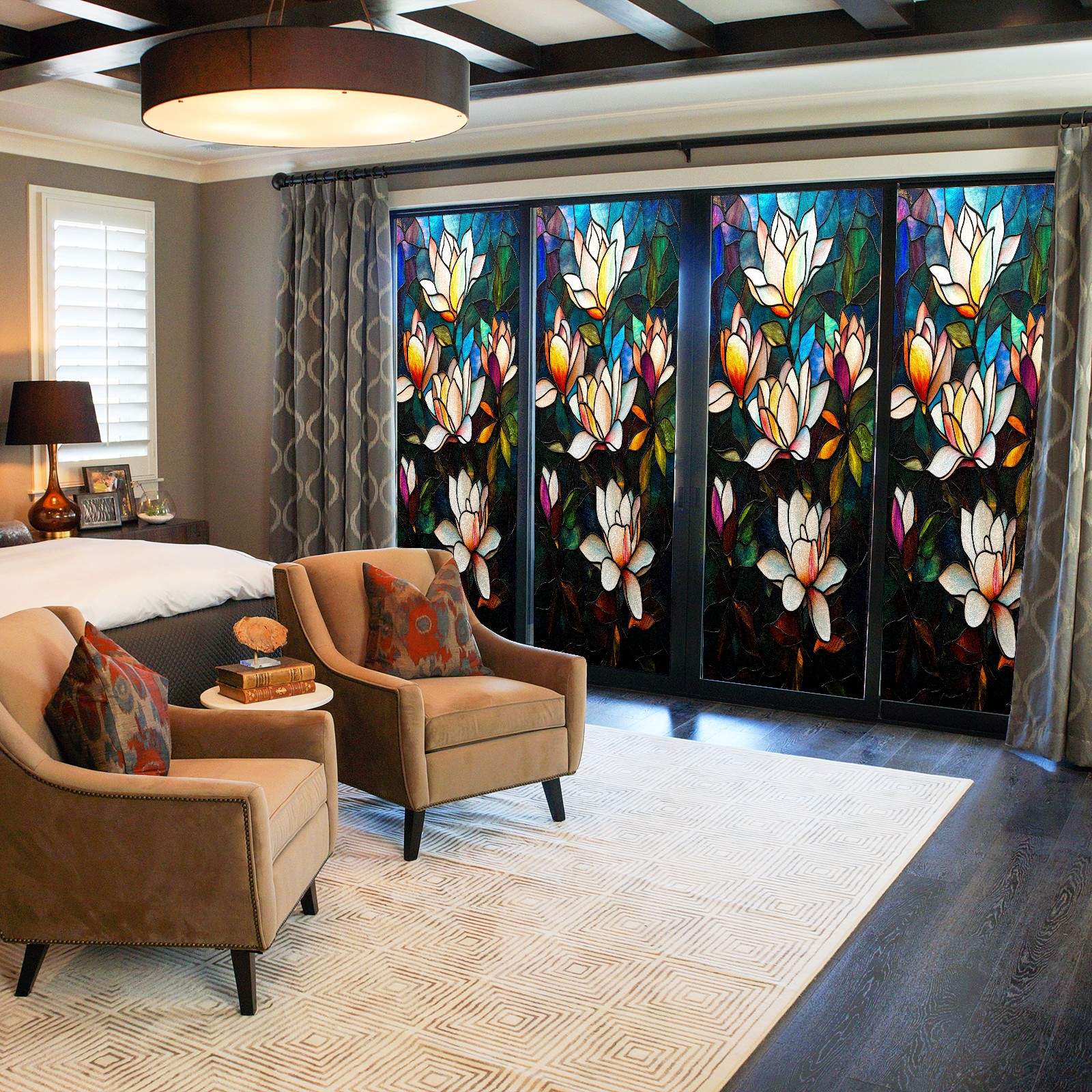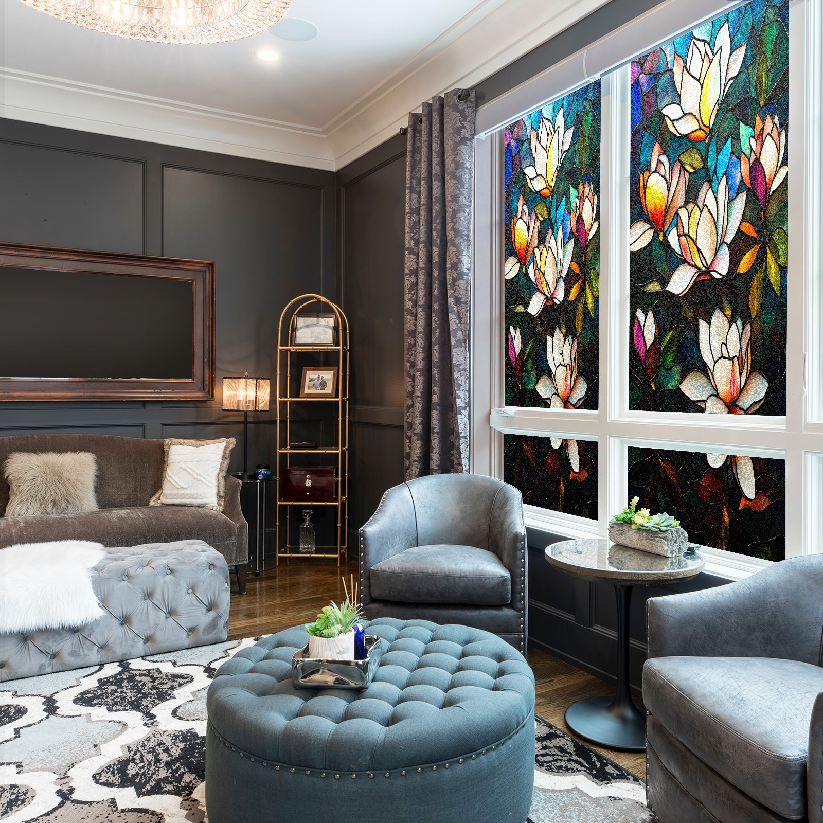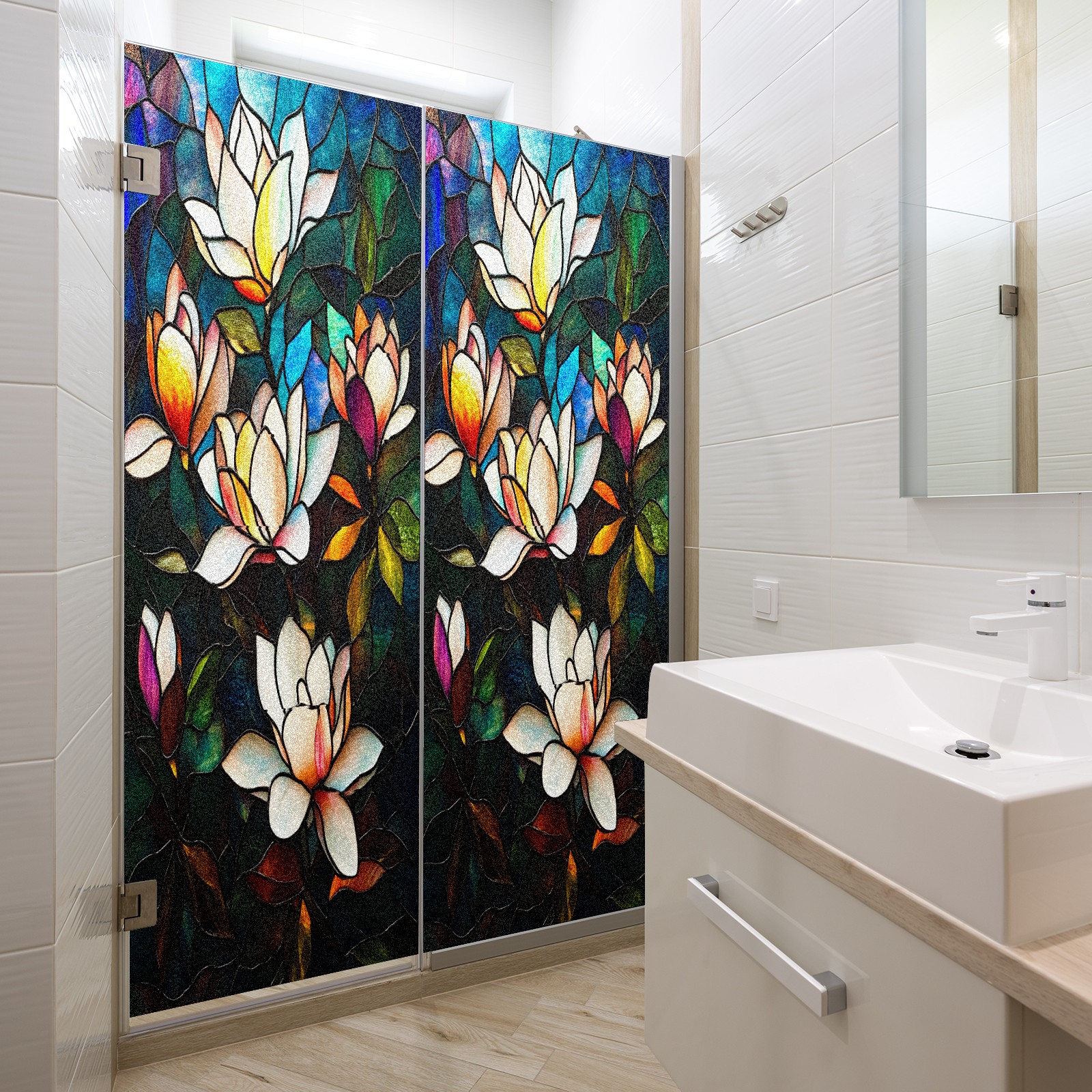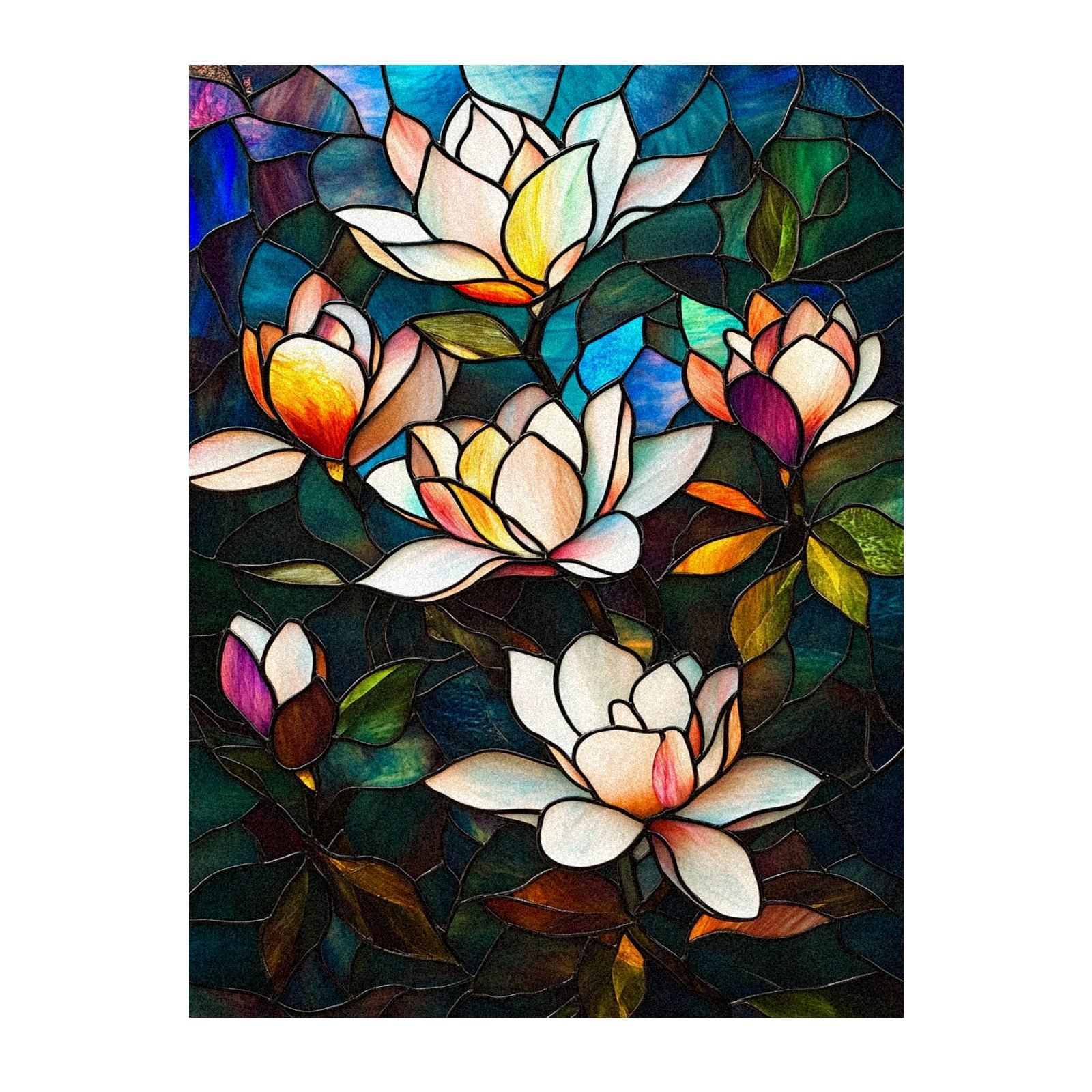 MSINMKOK Window Privacy Film Stained Glass Magnolia Flowers Decorative Frosted Glass Window Film for Glass Door Bathroom Window 17.7'' x 23.6'' Non-Adhesive Window Decals Stickers