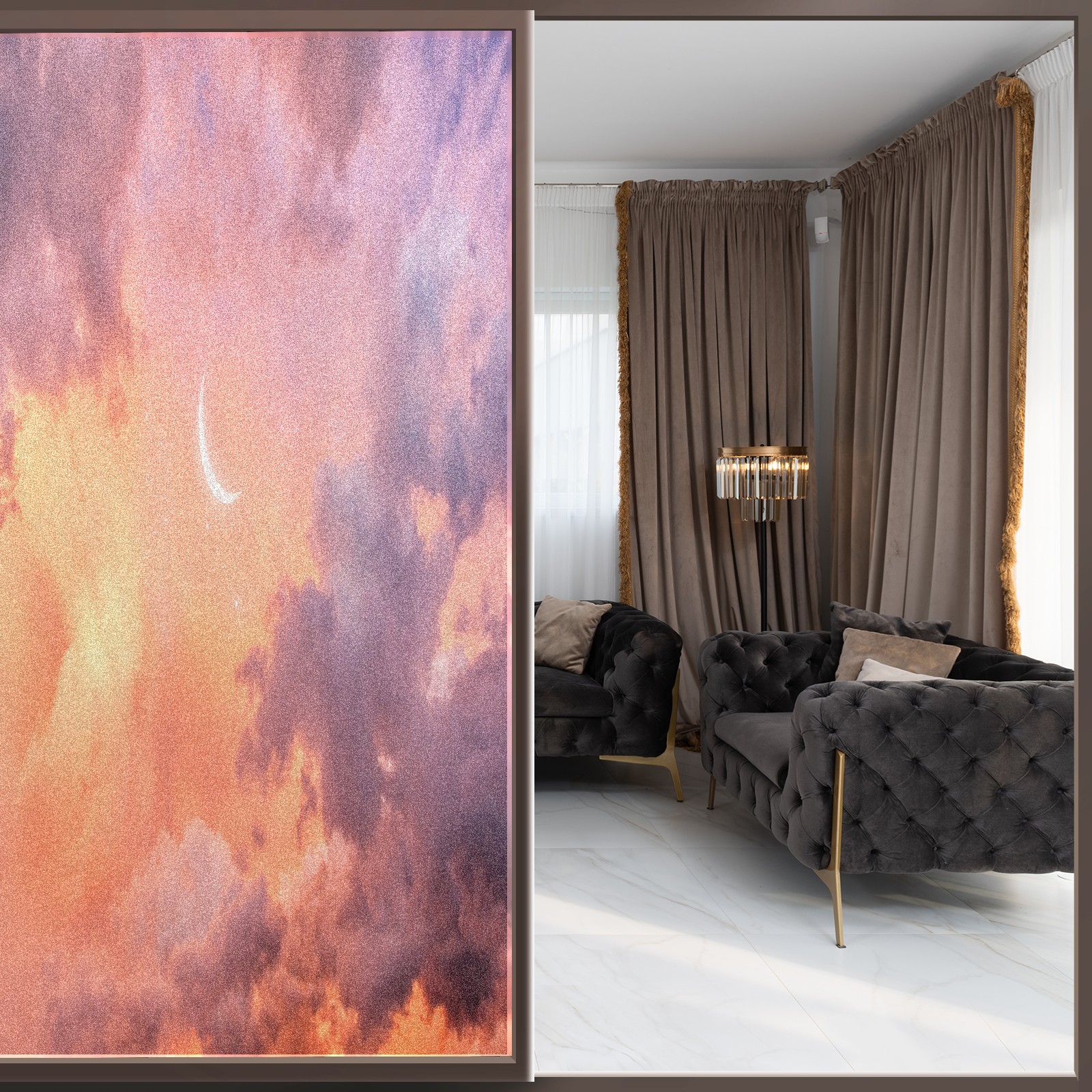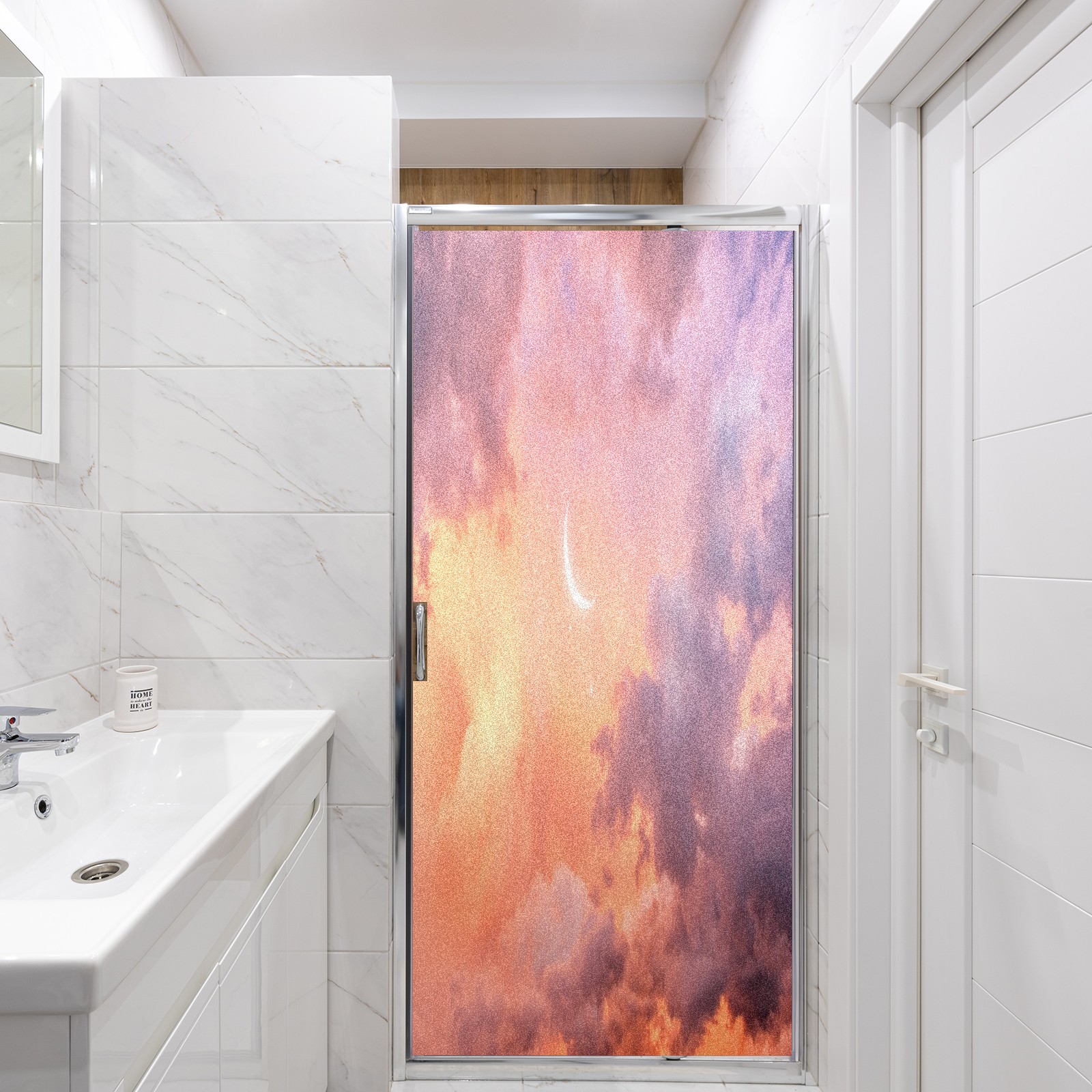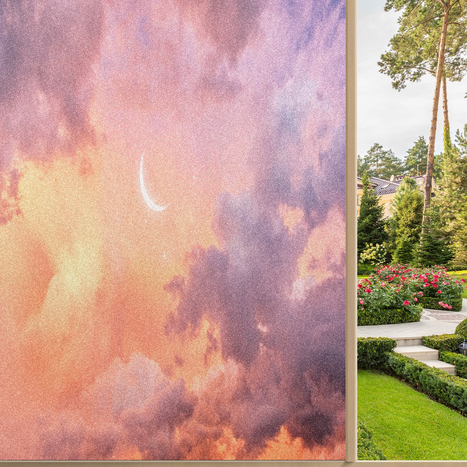 MSINMKOK Window Privacy Film Moon-crescent-sky-clouds-outdoor Decorative Frosted Glass Window Film for Glass Door Bathroom Window 17.7'' x 23.6'' Non-Adhesive Window Decals Stickers