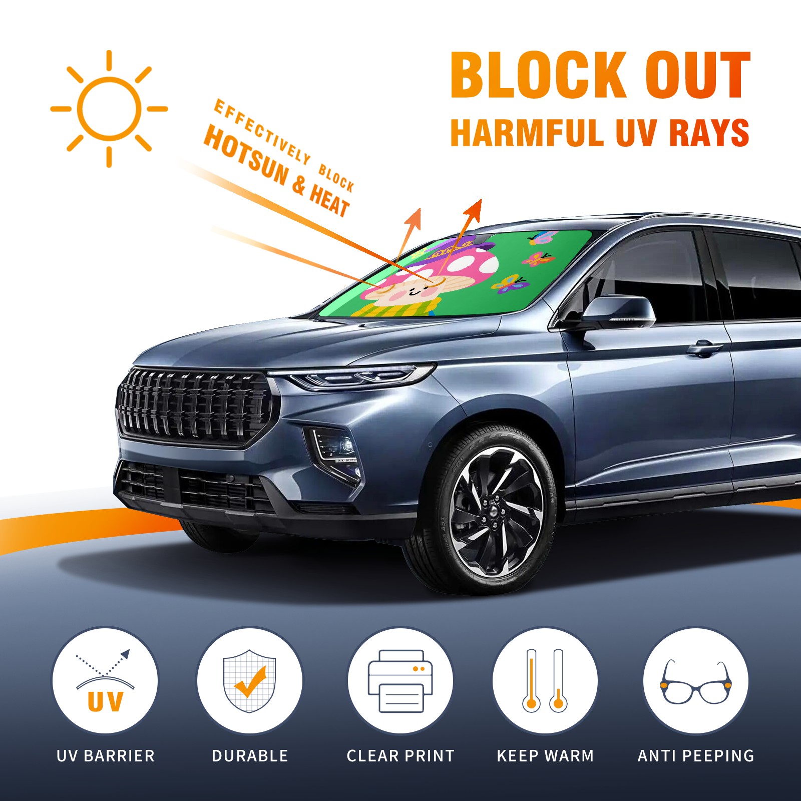 • <p>This car sunshade pad is made of a high-quality combination of aluminum foil and polyester, reinforced with transparent adhesive. It measures 140x76cm (55inx30in) and is a practical choice for protecting your car. Its powerful UV protection function can effectively block harmful light, prevent the car interior from aging due to exposure to sunlight, and maintain the dashboard, steering wheel, and seats in a brand new state.<br></p>
