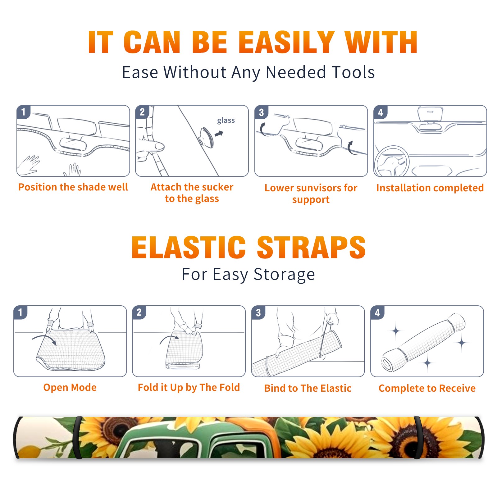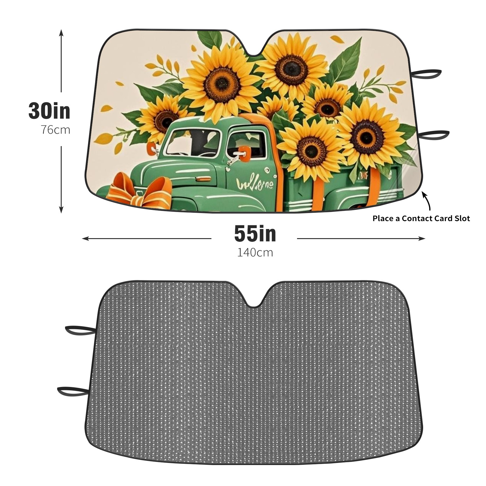 Aluminum Foil Polyester Car Sunshade Pad, Efficient Heat Insulation And Sun Protection ArtifactGreen Car And Sunflower