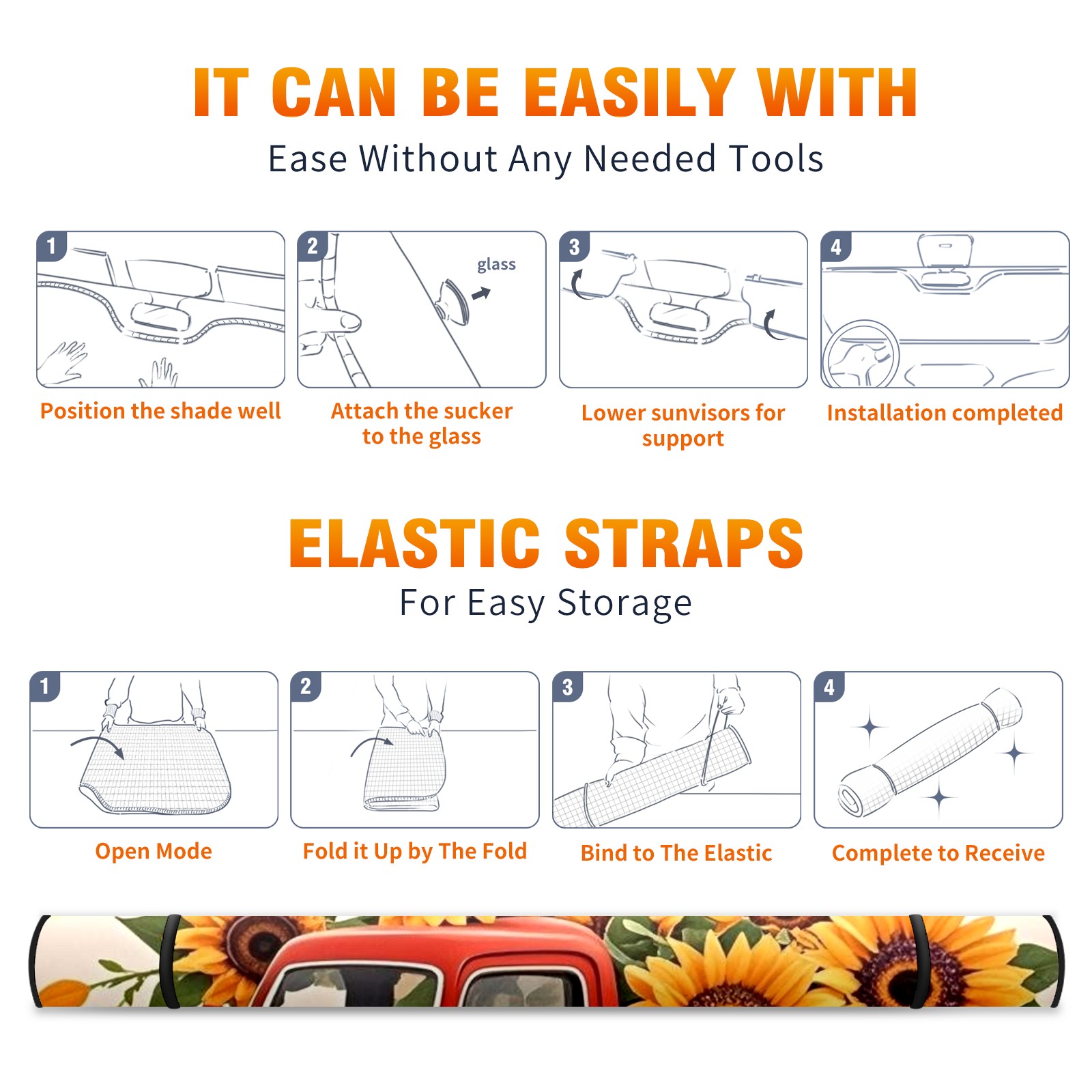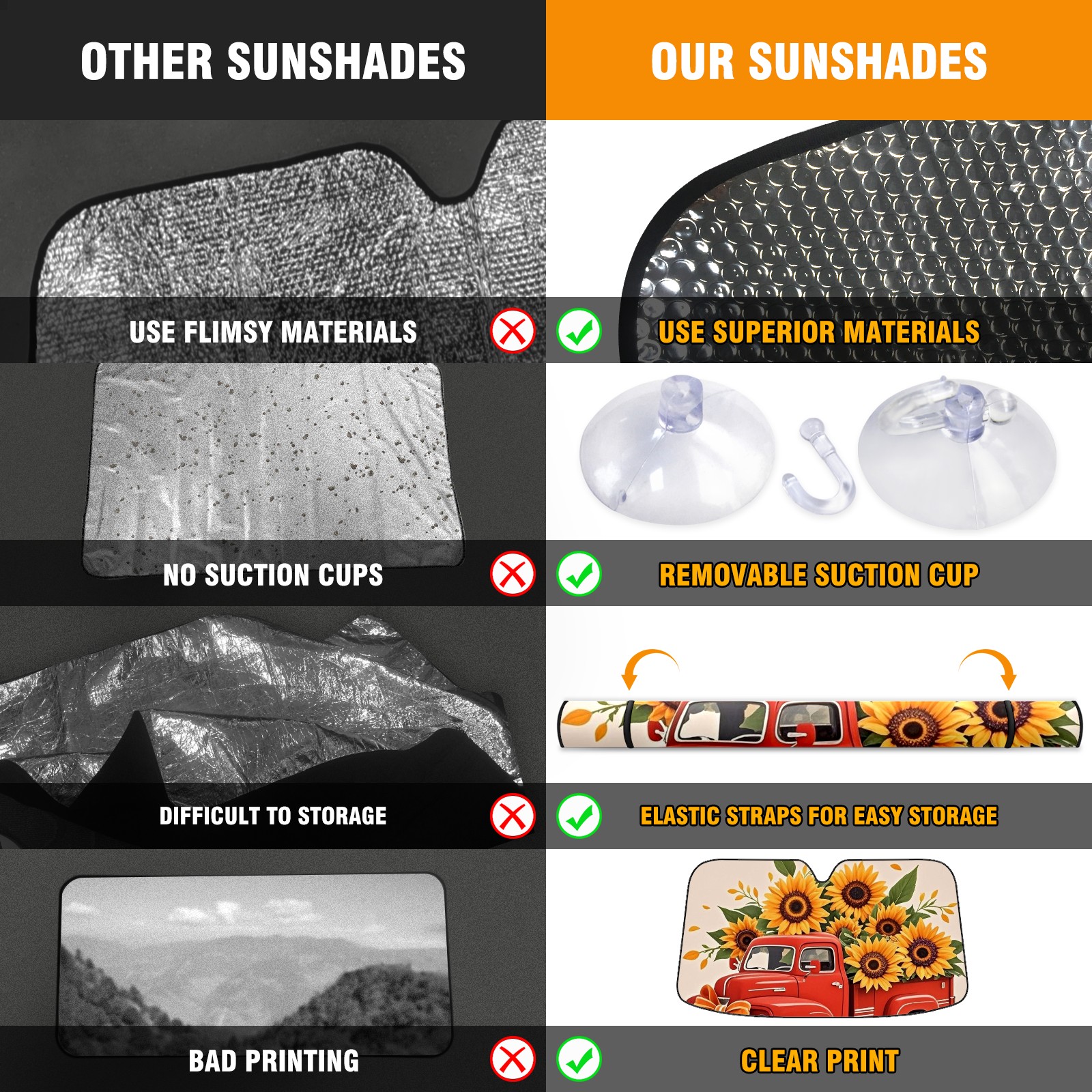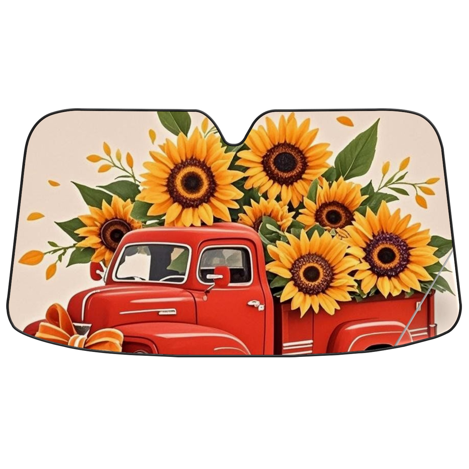 Aluminum Foil Polyester Car Sunshade Pad, Efficient Heat Insulation And Sun Protection ArtifactRed Car And Sunflower