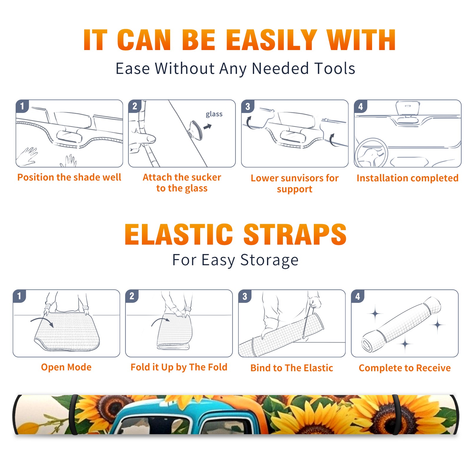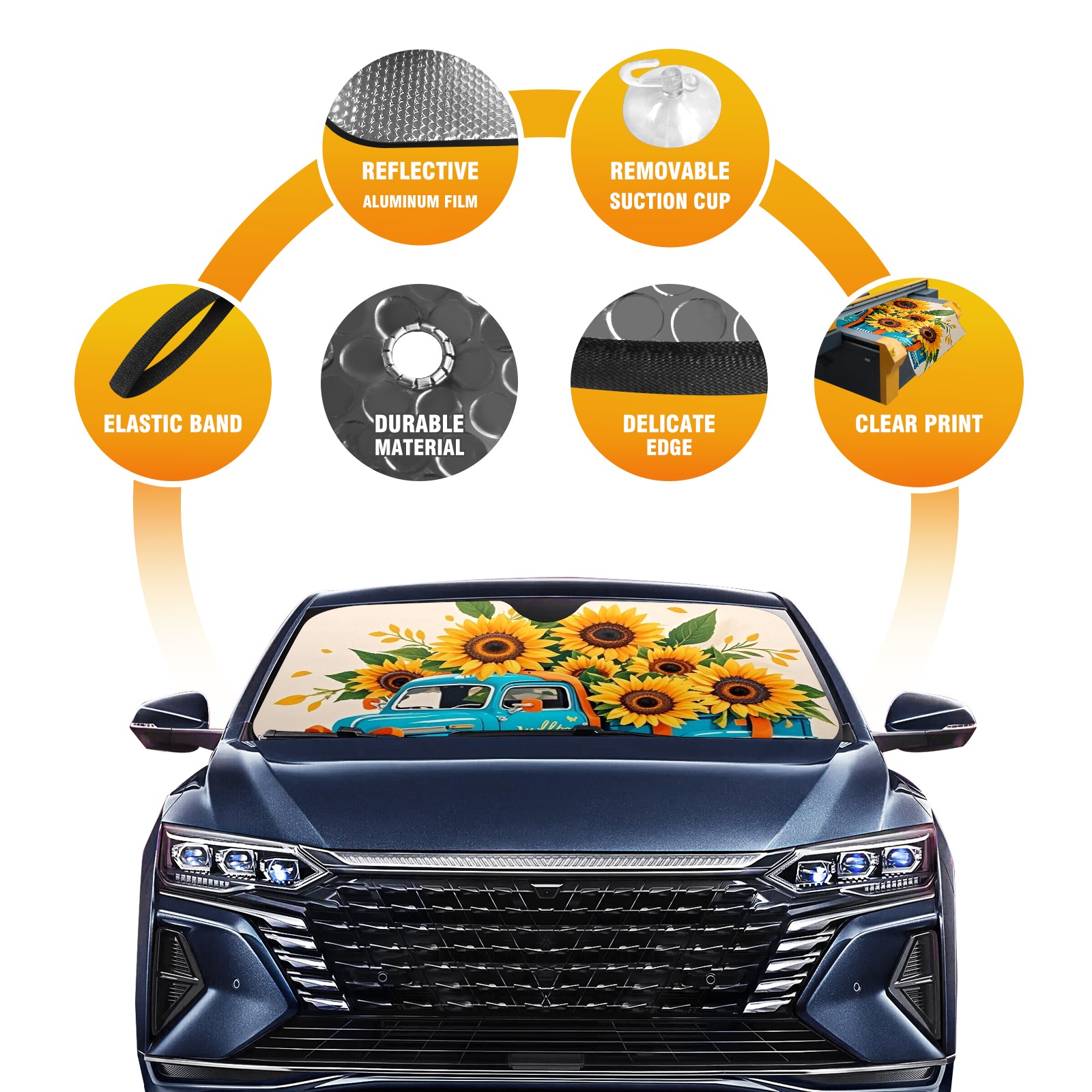 Aluminum Foil Polyester Car Sunshade Pad, Efficient Heat Insulation And Sun Protection ArtifactBiue Car And Sunflower