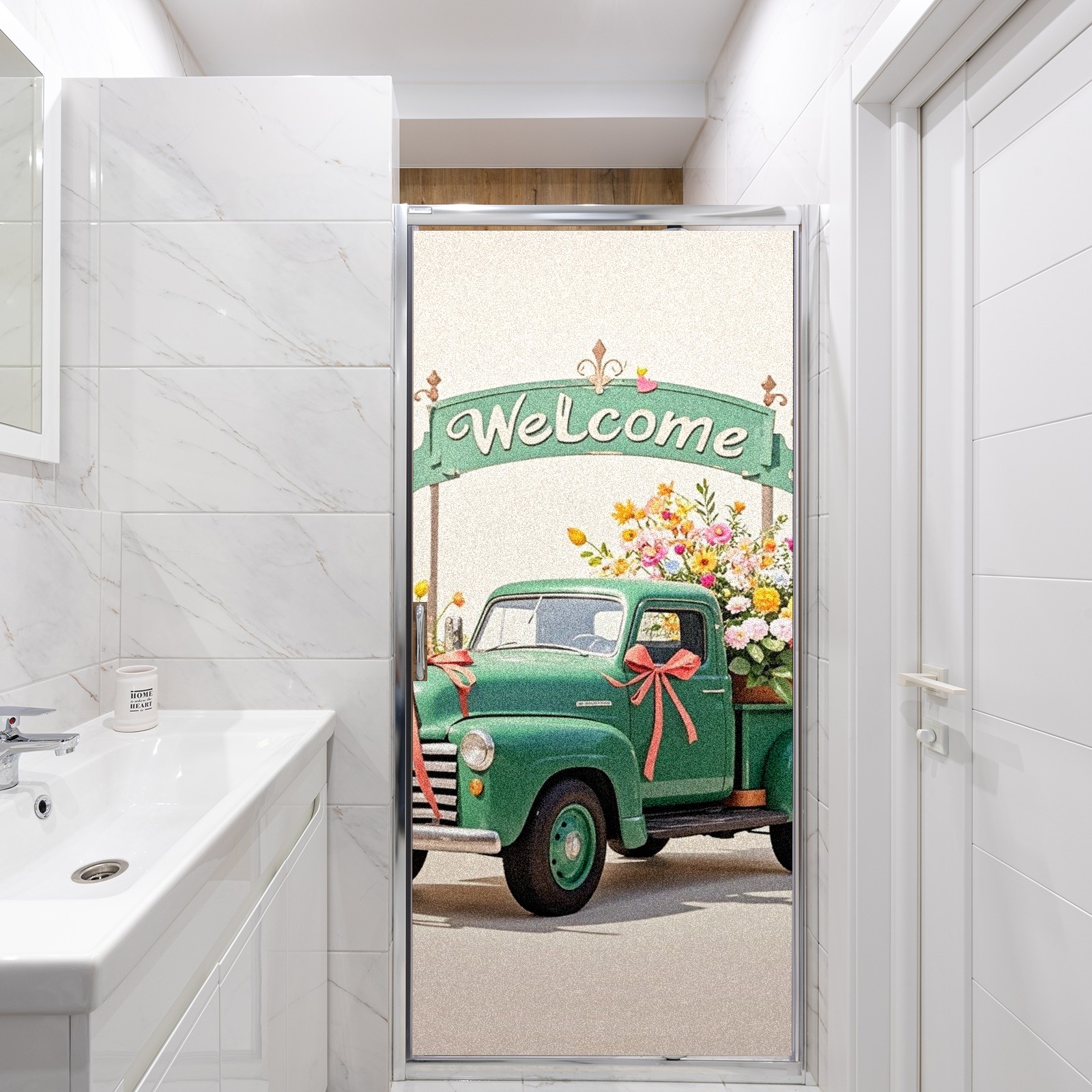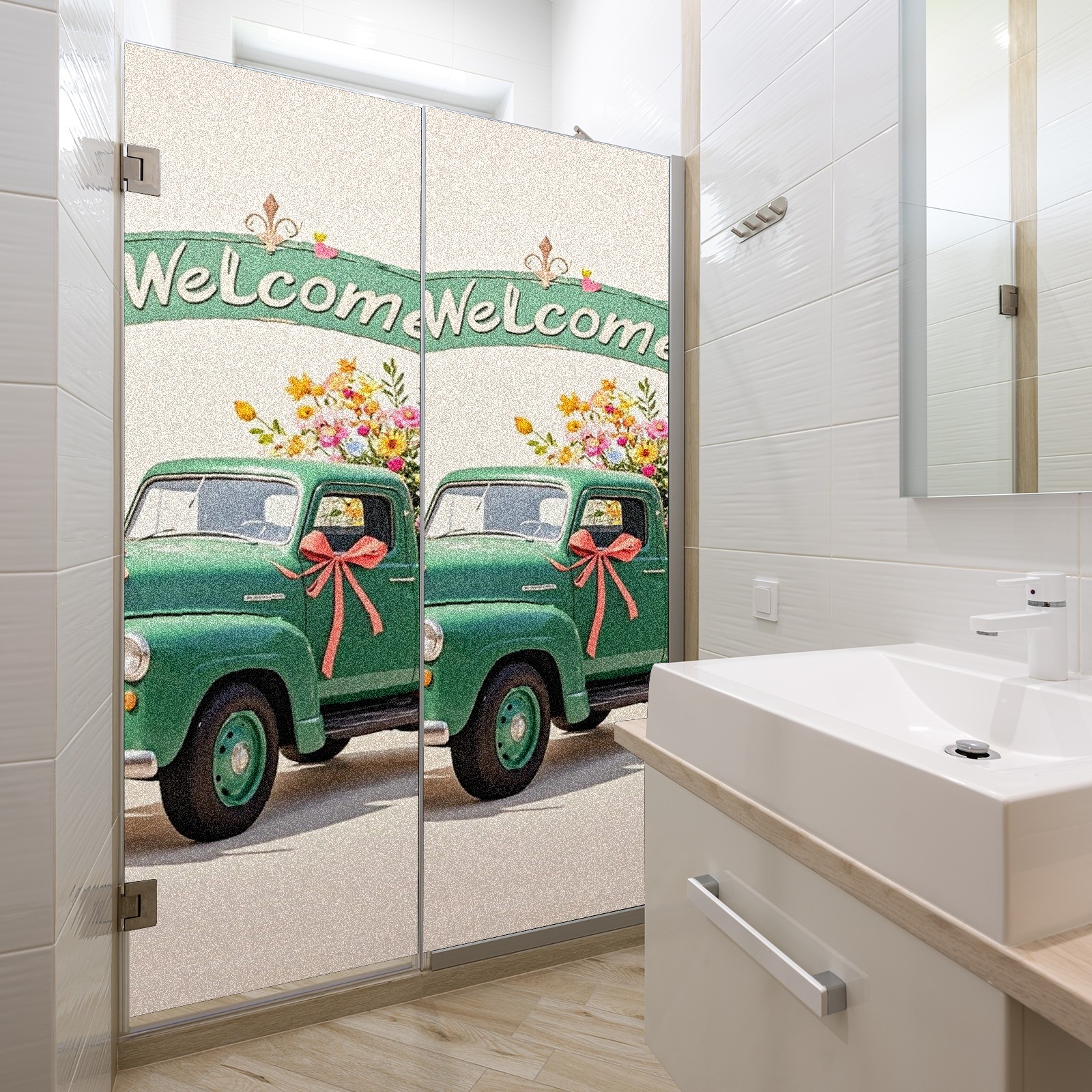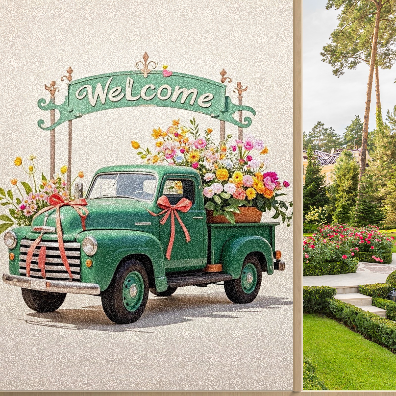 Window Privacy Film Stain Glass Window Privacy Film Stain Glass Static Stained Glass Cling Tint for Home Bedroom 17.7 x 23.6 Inches Green Car And Fiower