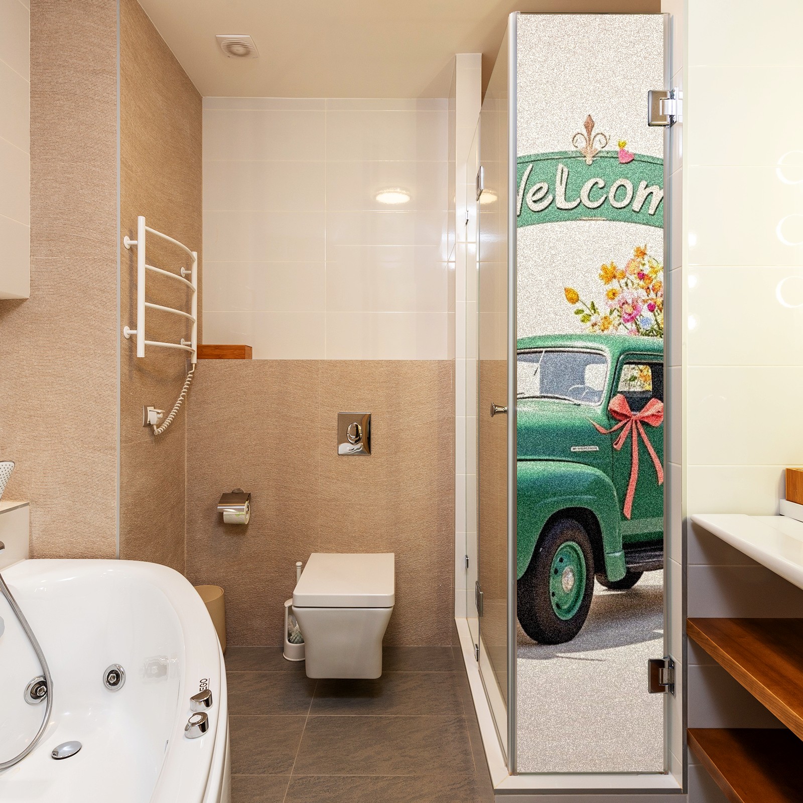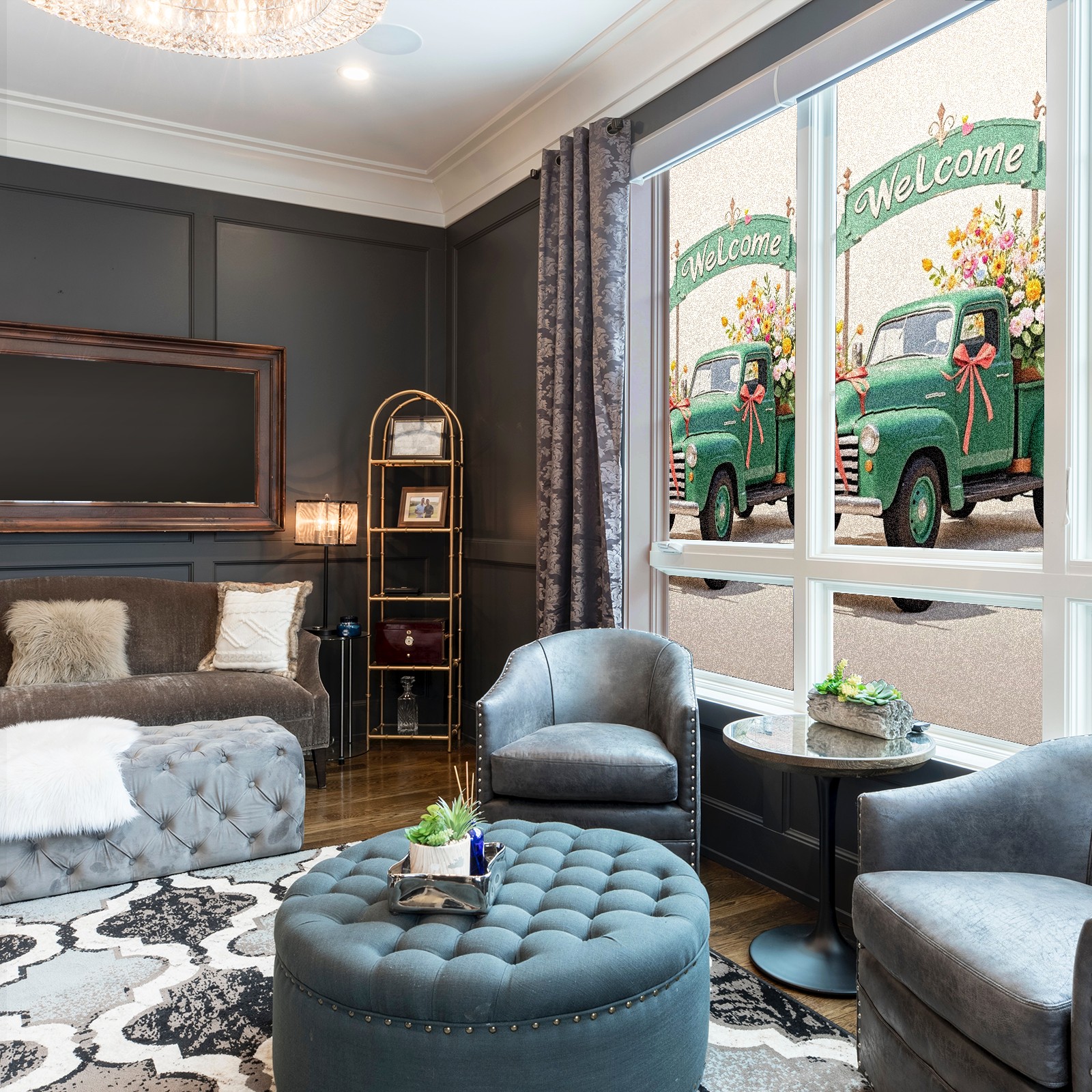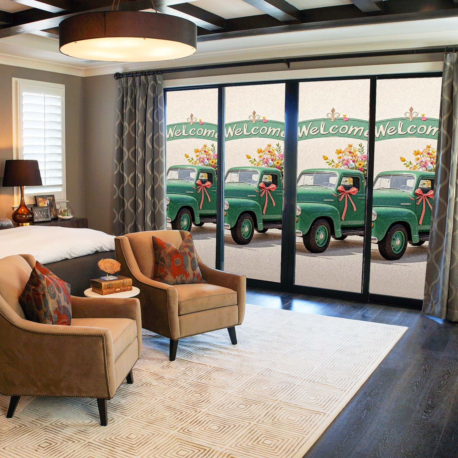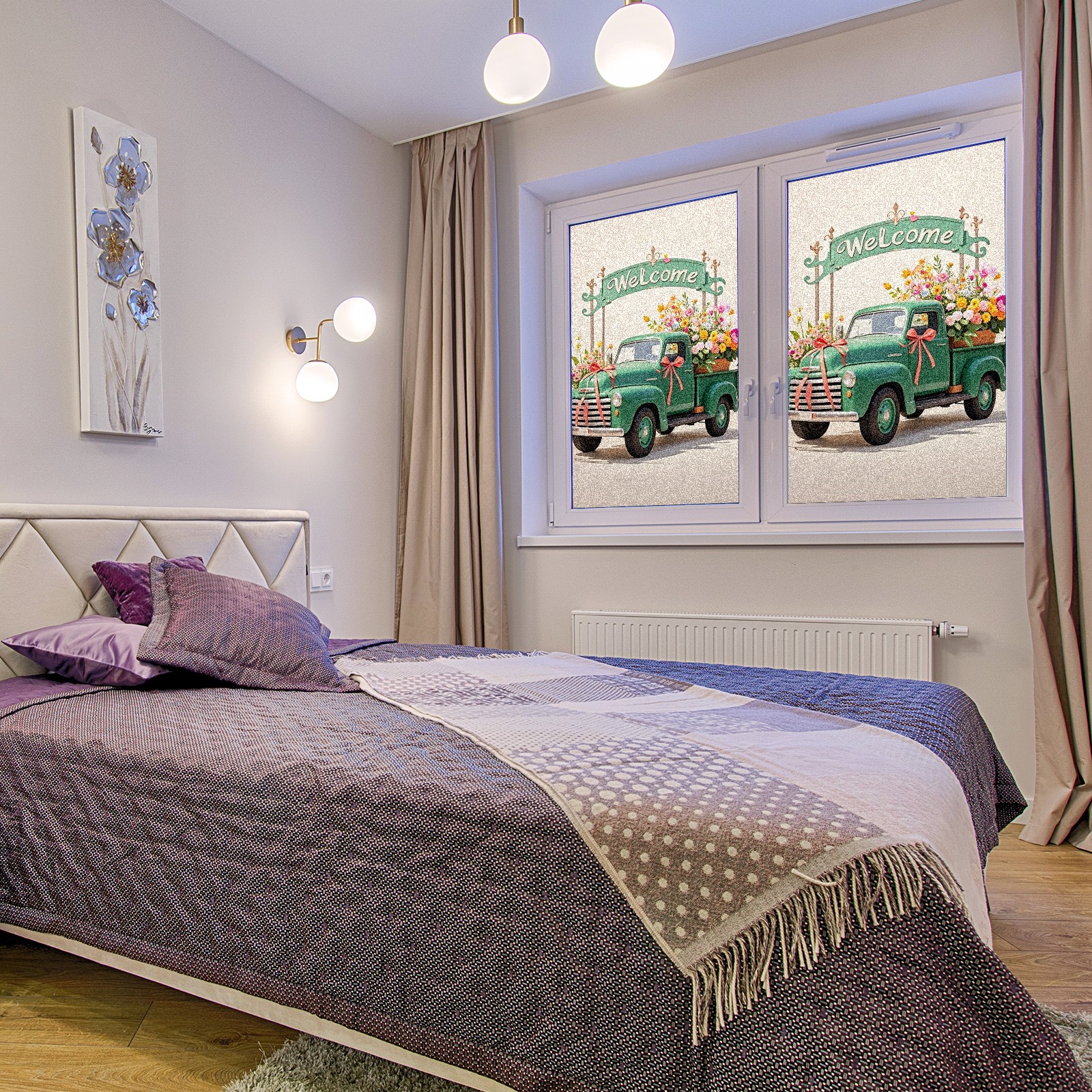 Window Privacy Film Stain Glass Window Privacy Film Stain Glass Static Stained Glass Cling Tint for Home Bedroom 17.7 x 23.6 Inches Green Car And Fiower