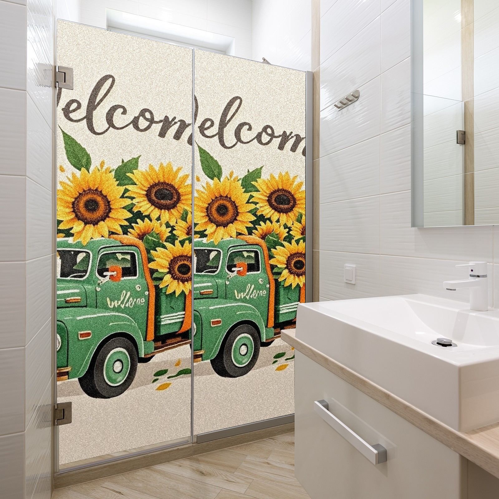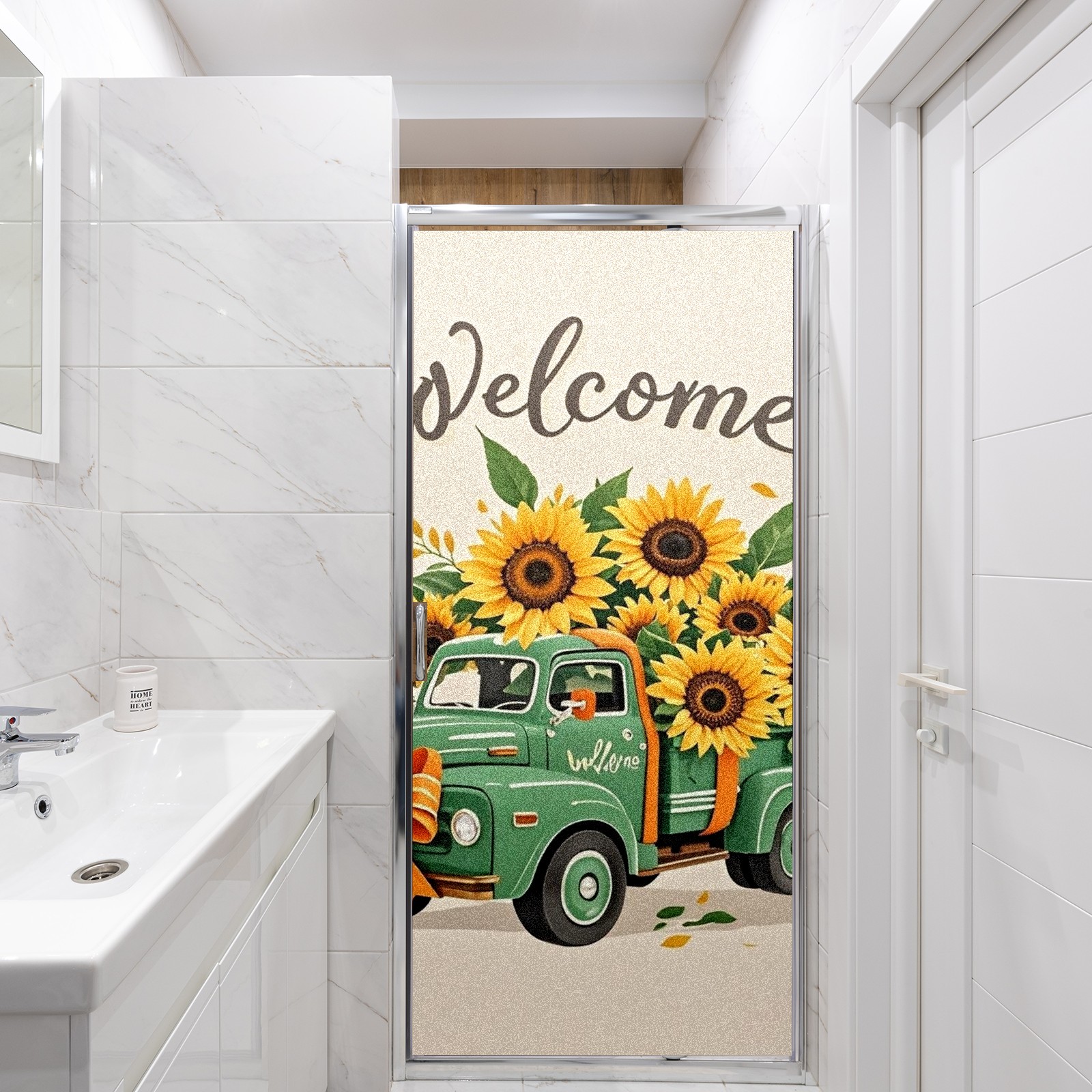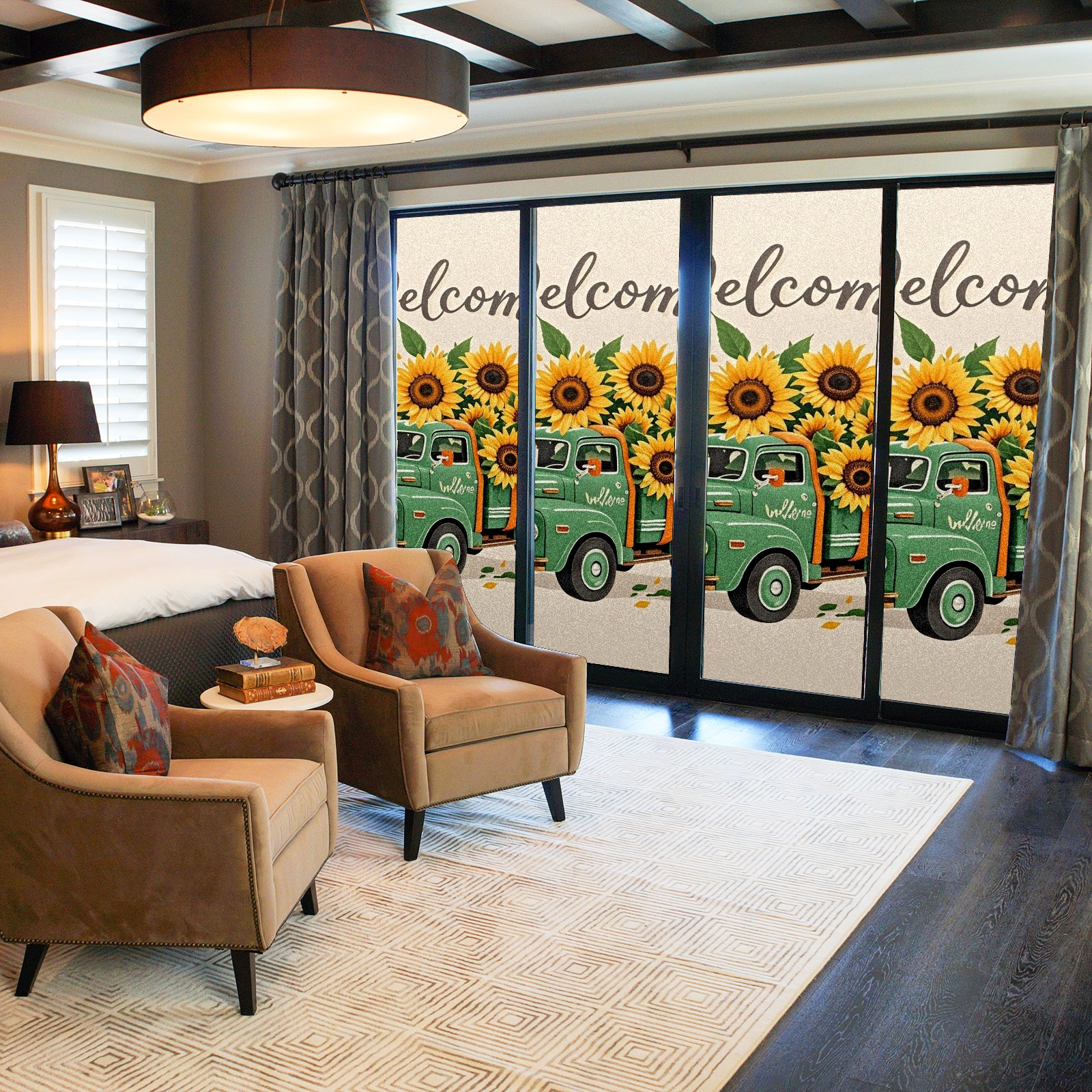 Window Privacy Film Stain Glass Window Privacy Film Stain Glass Static Stained Glass Cling Tint for Home Bedroom 17.7 x 23.6 Inches Green Car And Sunflower