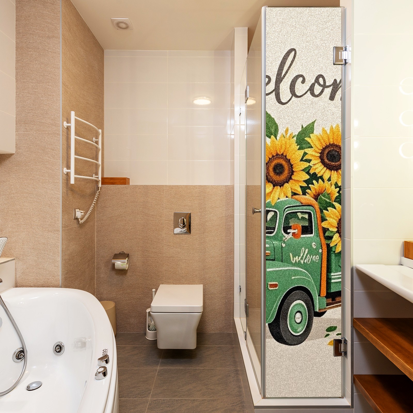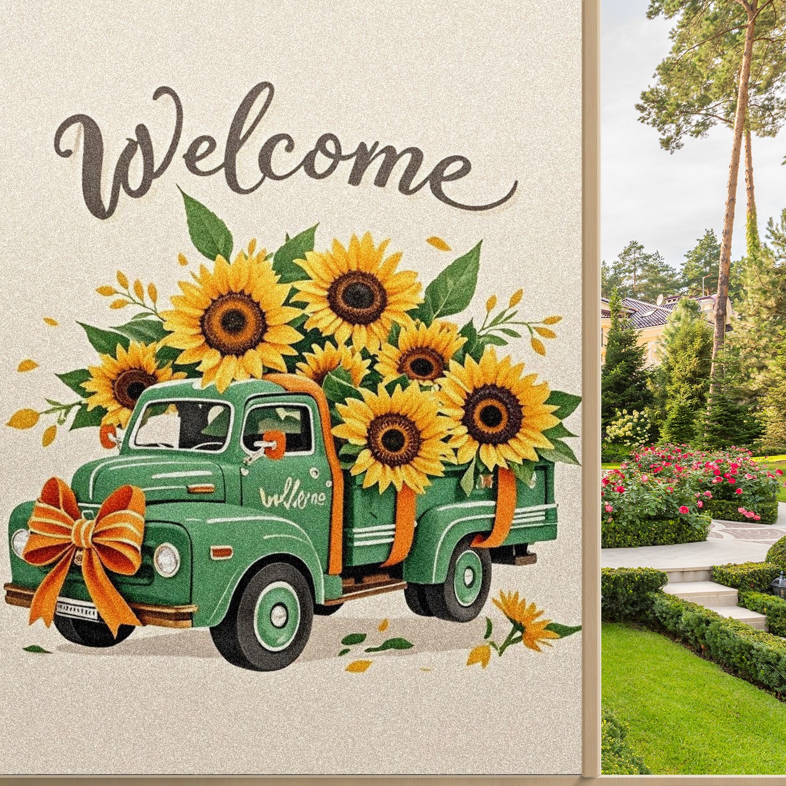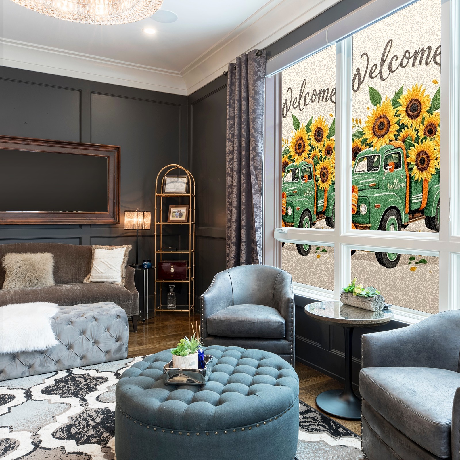 Window Privacy Film Stain Glass Window Privacy Film Stain Glass Static Stained Glass Cling Tint for Home Bedroom 17.7 x 23.6 Inches Green Car And Sunflower