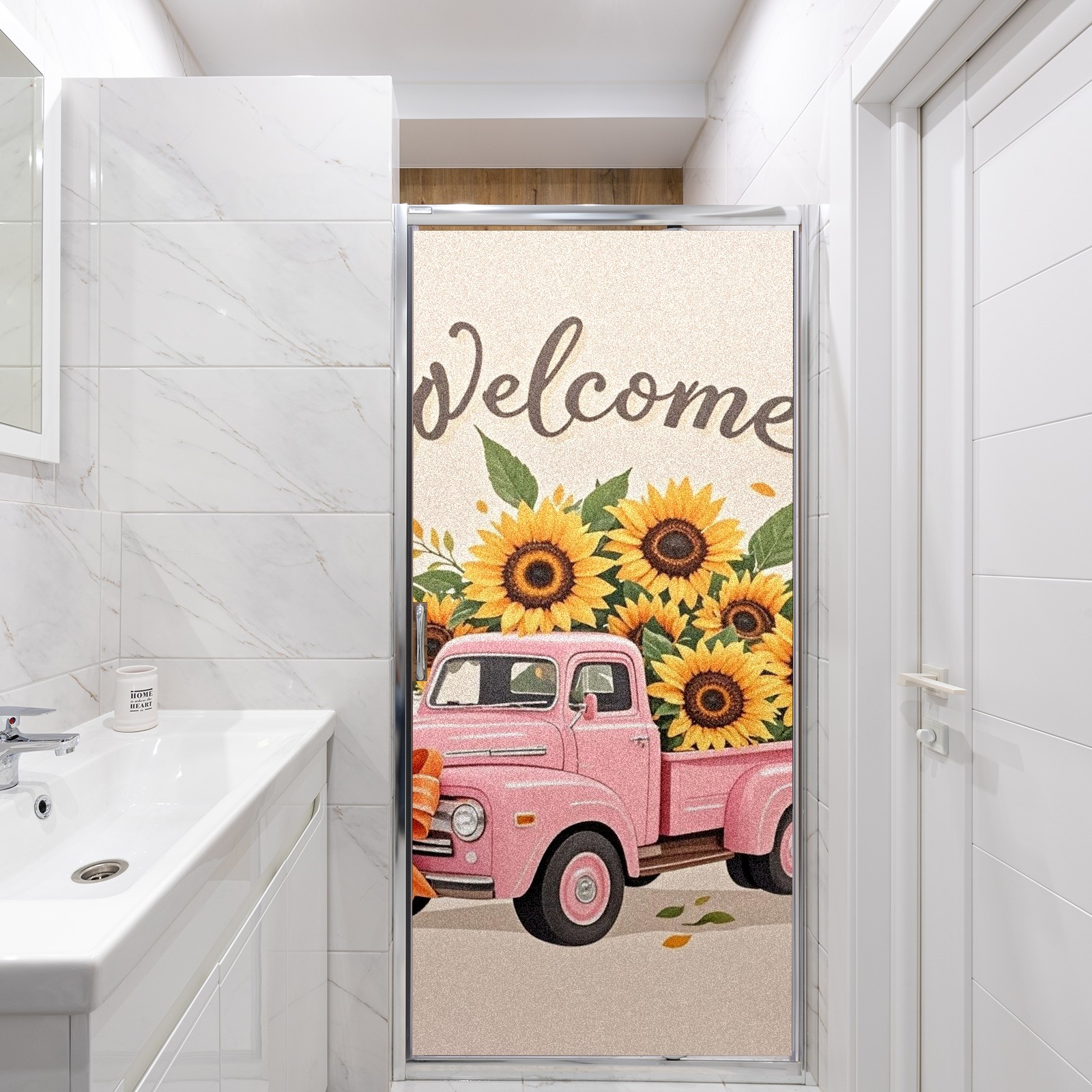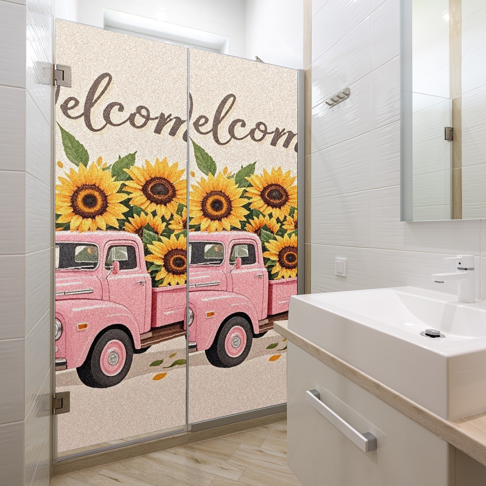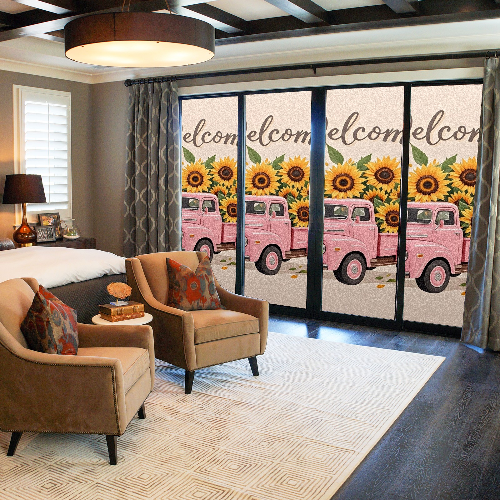 Window Privacy Film Stain Glass Window Privacy Film Stain Glass Static Stained Glass Cling Tint for Home Bedroom 17.7 x 23.6 Inches Pink Car And Sunflower