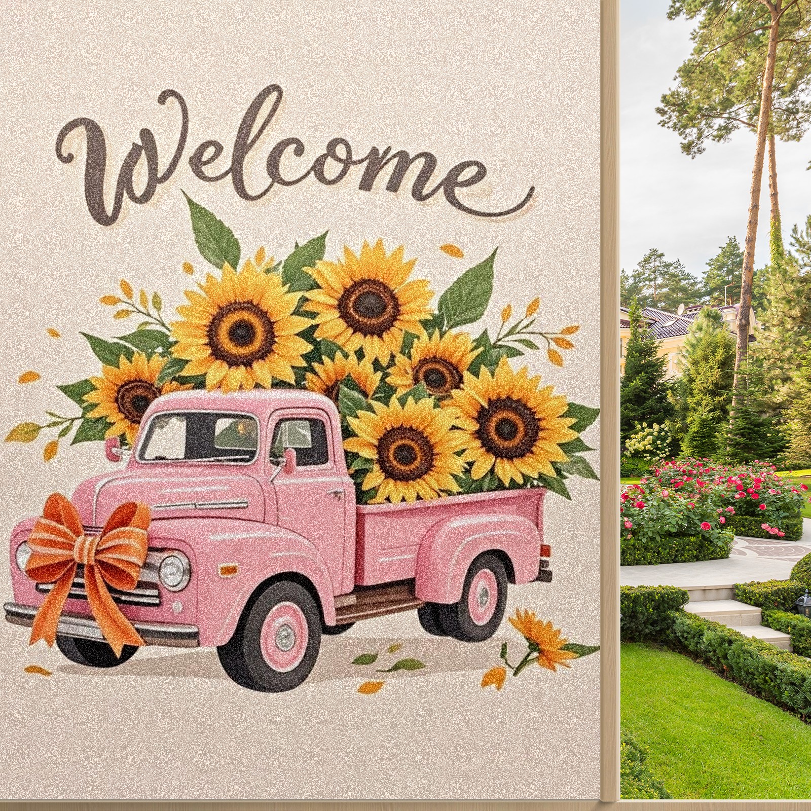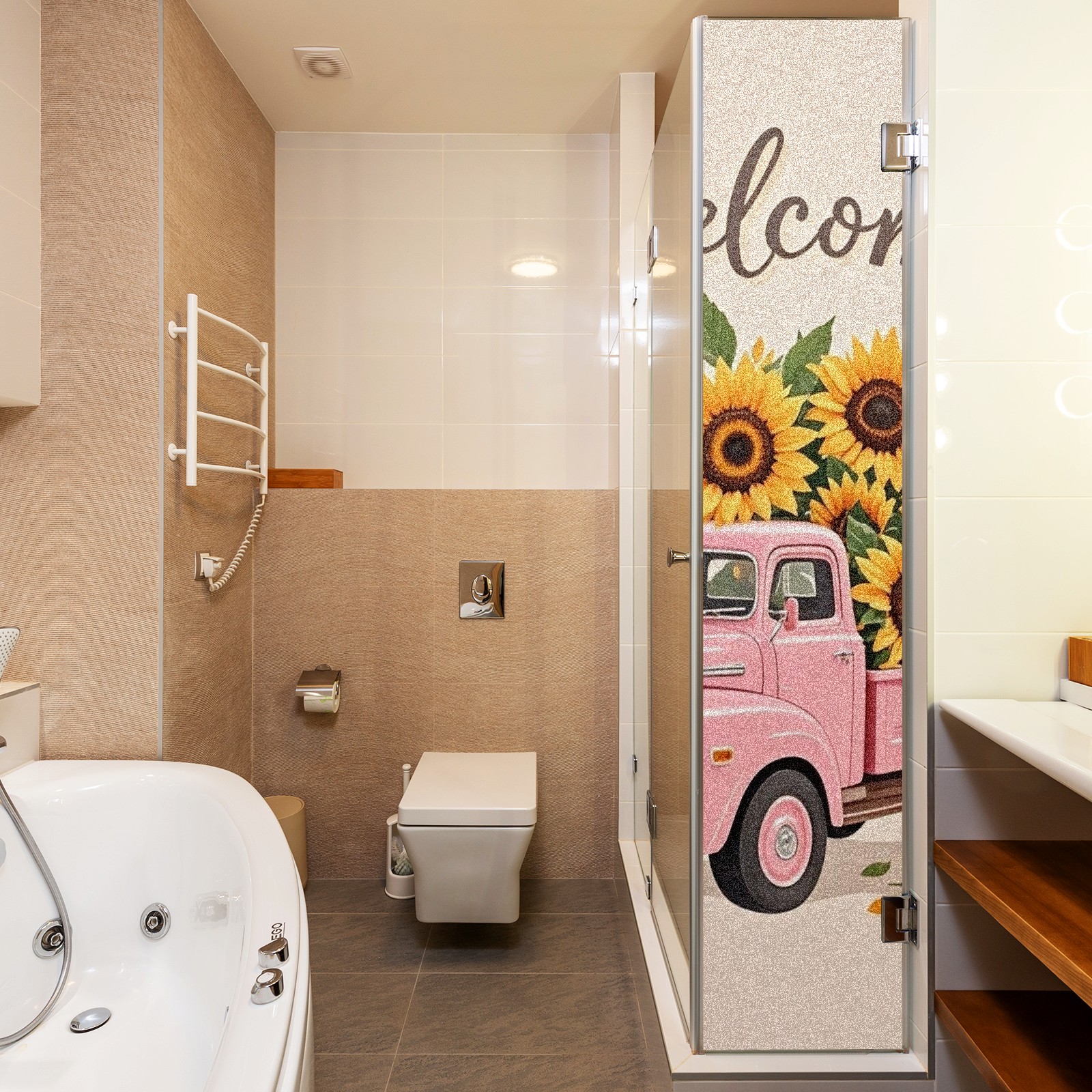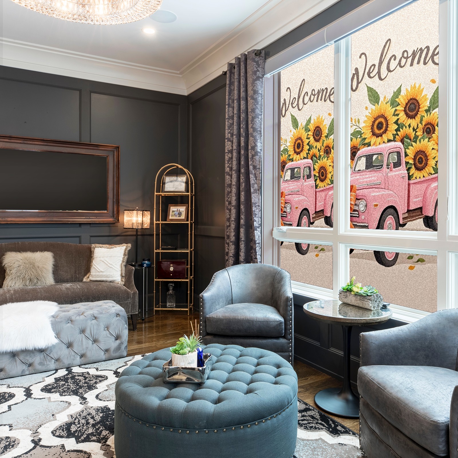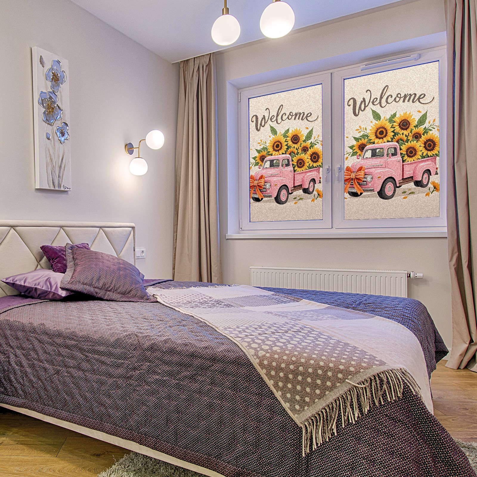 Window Privacy Film Stain Glass Window Privacy Film Stain Glass Static Stained Glass Cling Tint for Home Bedroom 17.7 x 23.6 Inches Pink Car And Sunflower