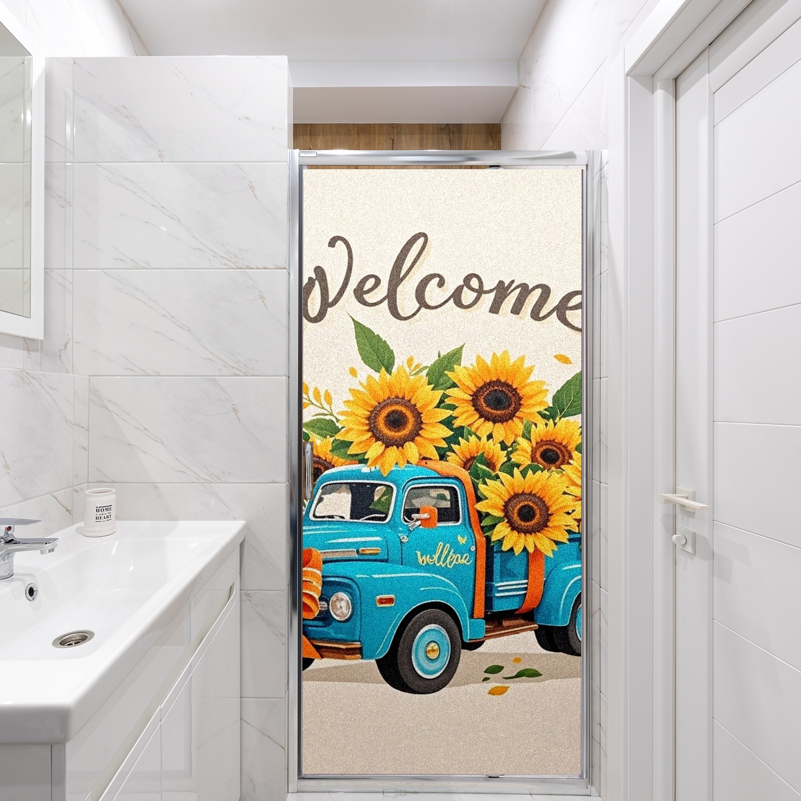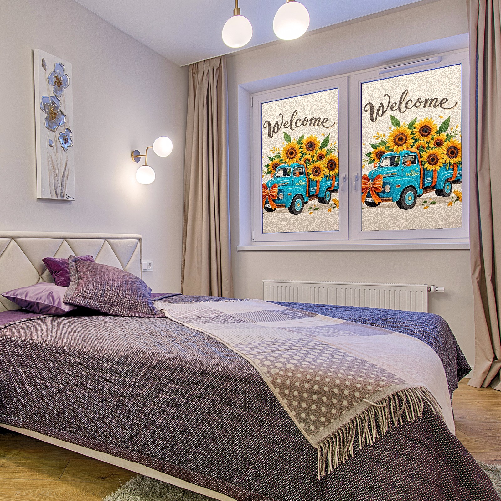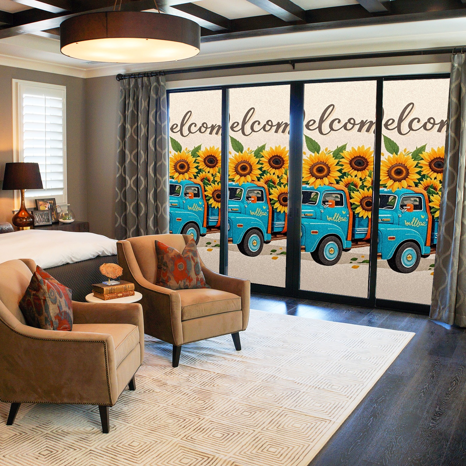 Window Privacy Film Stain Glass Window Privacy Film Stain Glass Static Stained Glass Cling Tint for Home Bedroom 17.7 x 23.6 Inches Biue Car And Sunflower