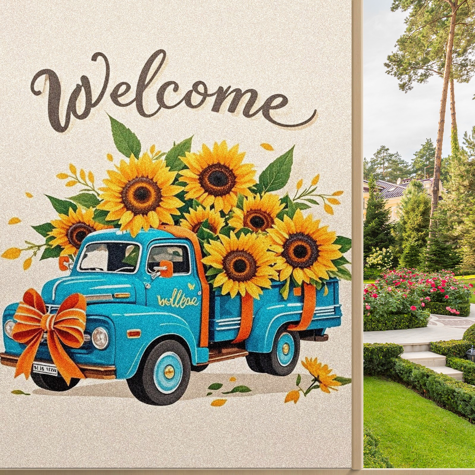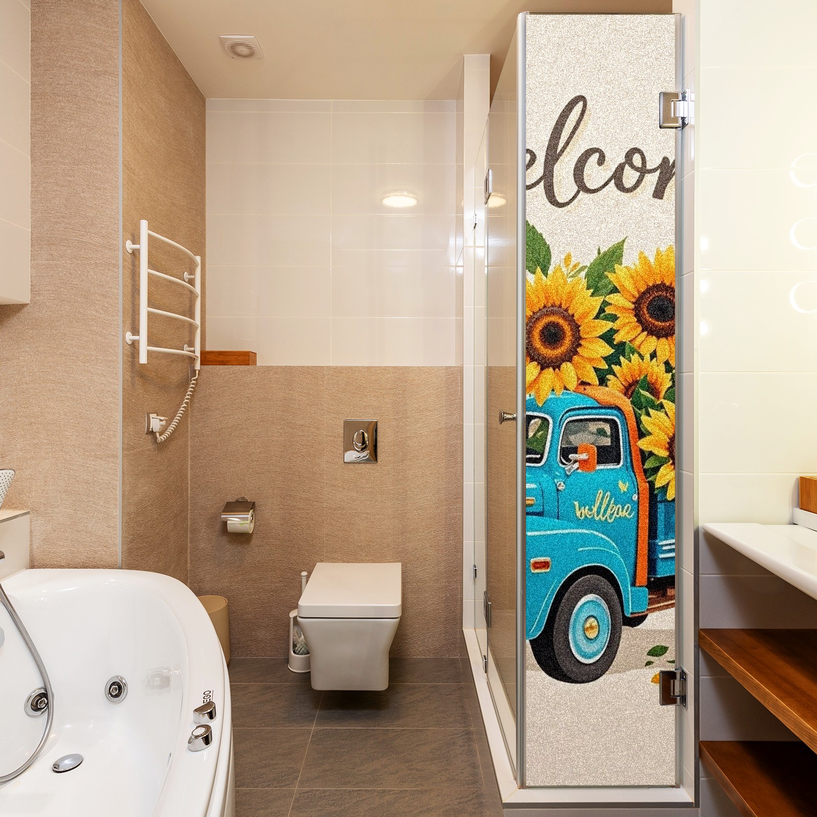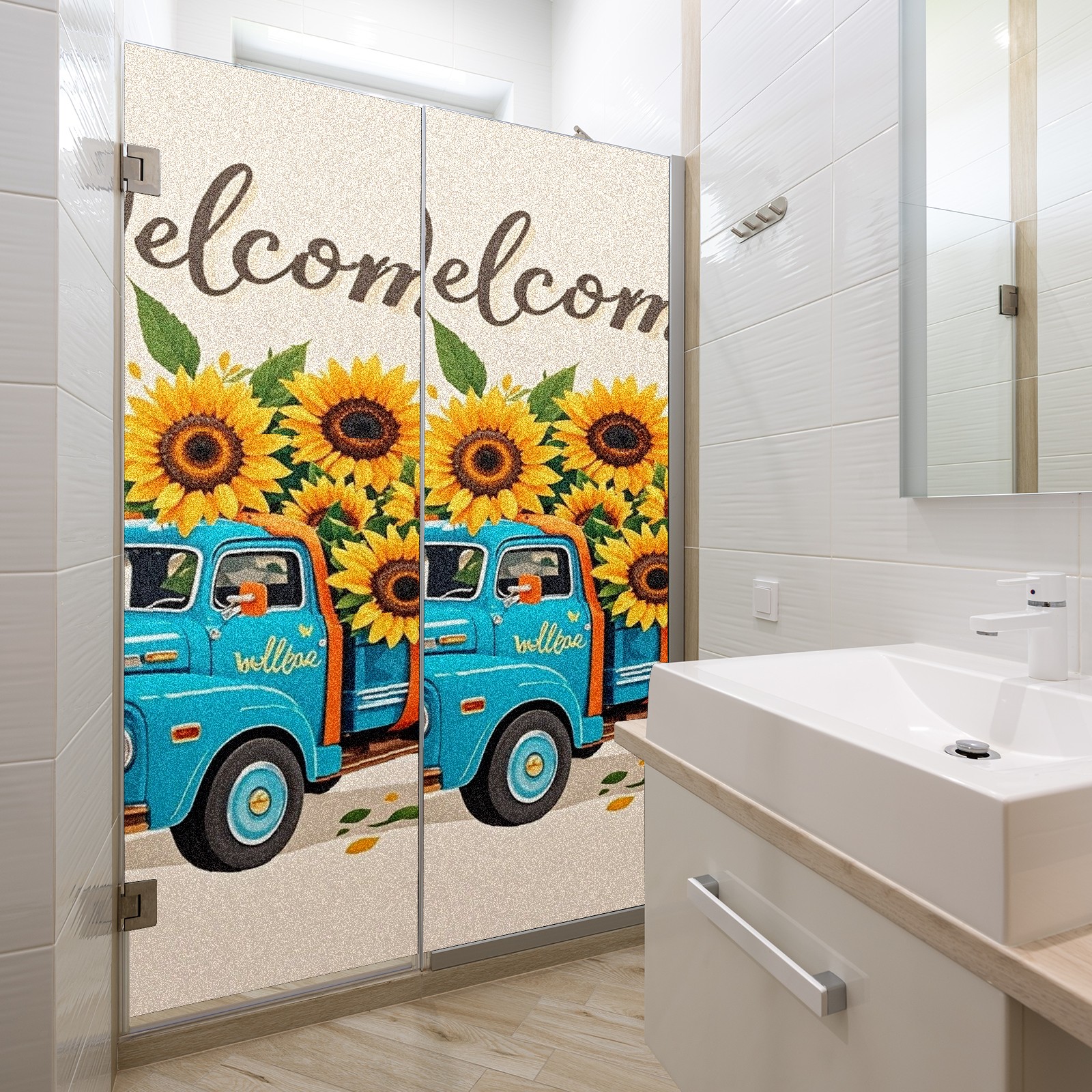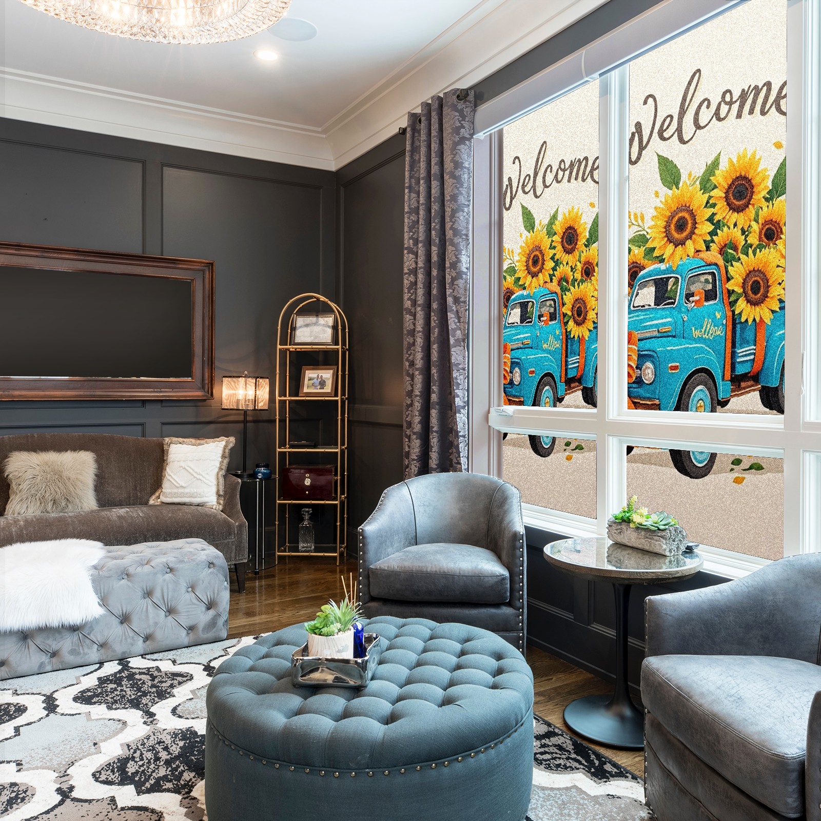 Window Privacy Film Stain Glass Window Privacy Film Stain Glass Static Stained Glass Cling Tint for Home Bedroom 17.7 x 23.6 Inches Biue Car And Sunflower