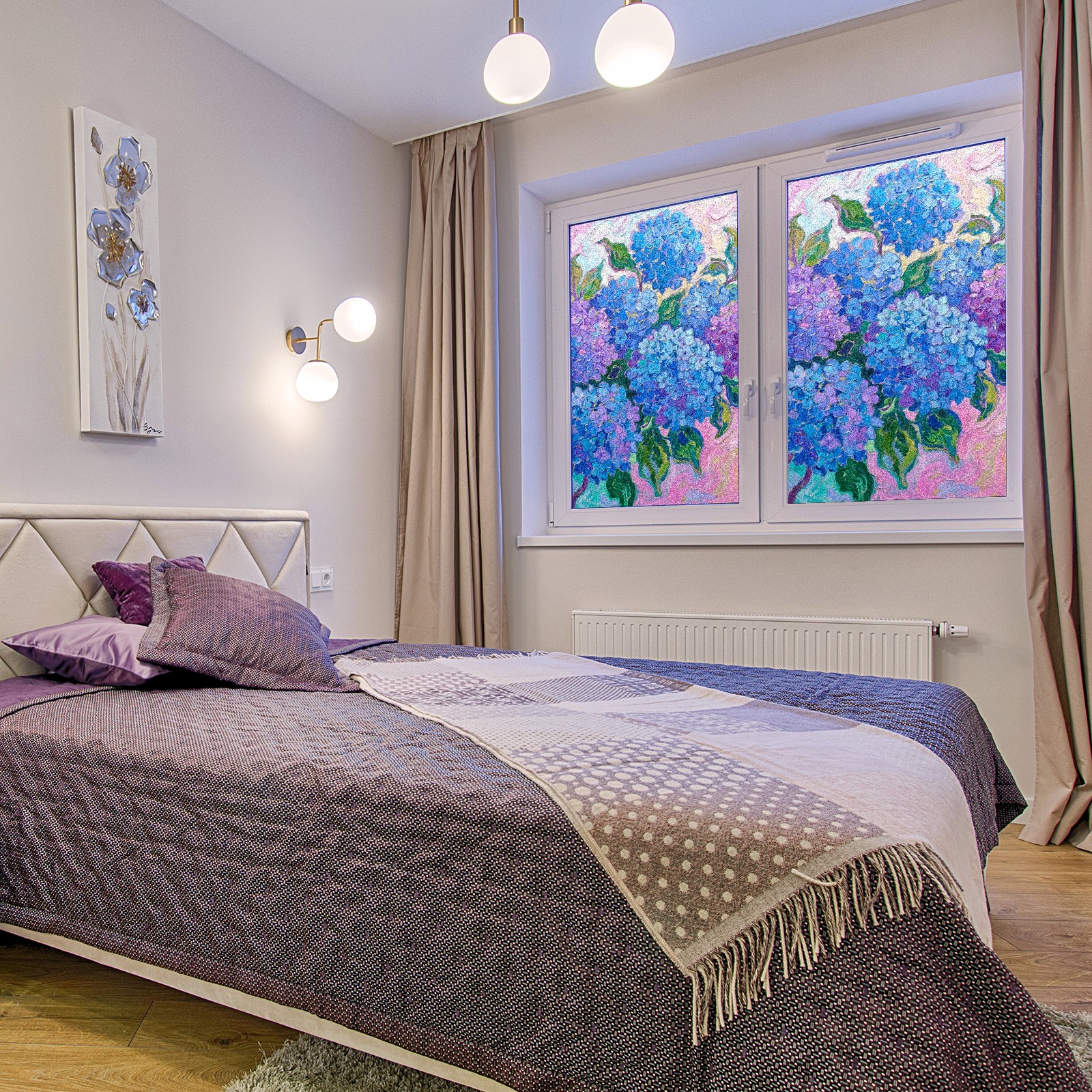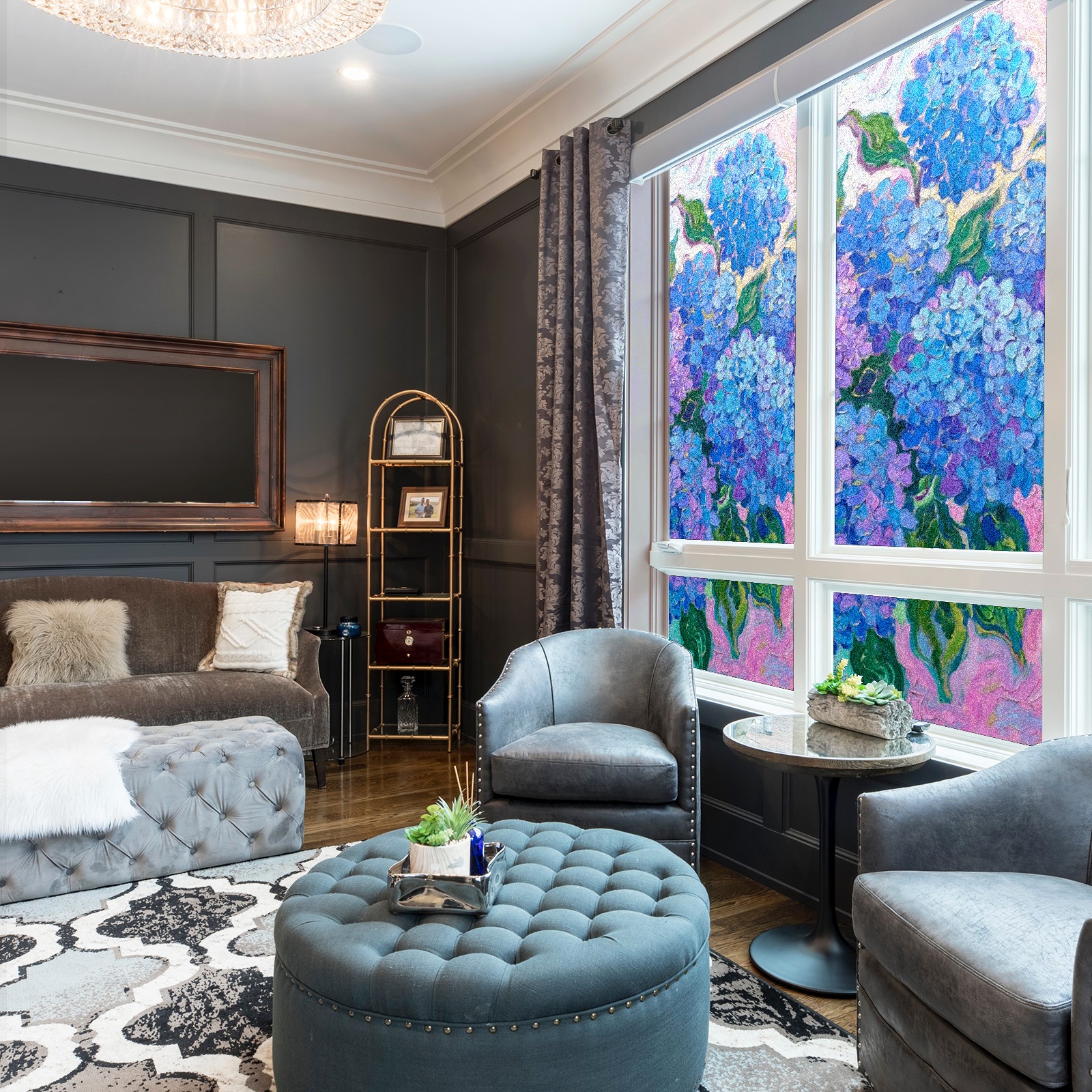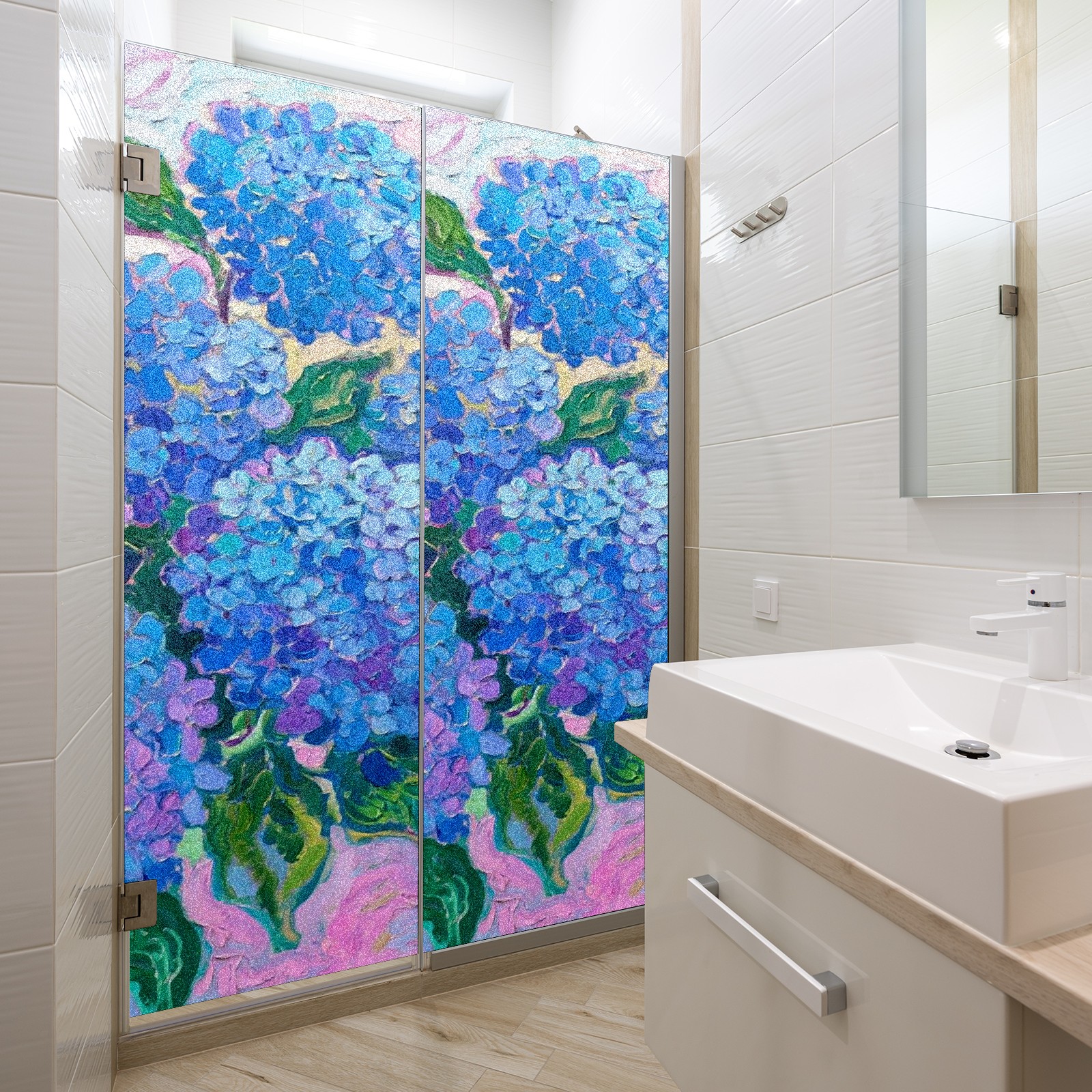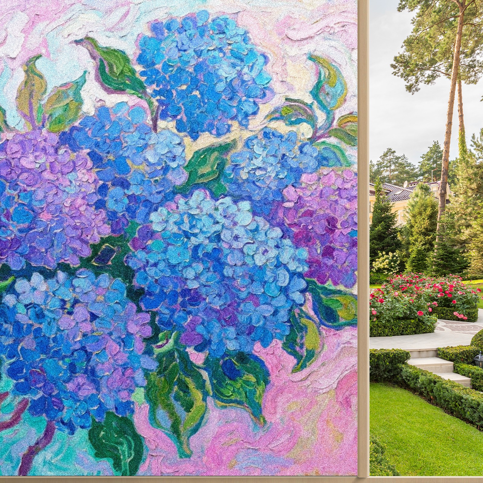 Window Privacy Film Stain Glass Window Privacy Film Stain Glass Static Stained Glass Cling Tint for Home Bedroom 17.7 x 23.6 Inches Hydrangea