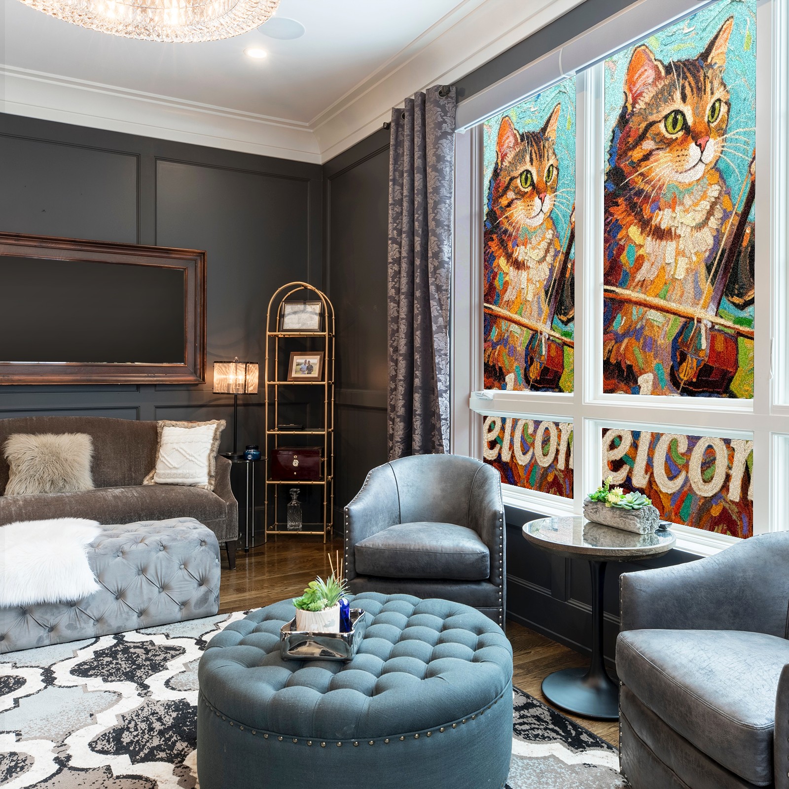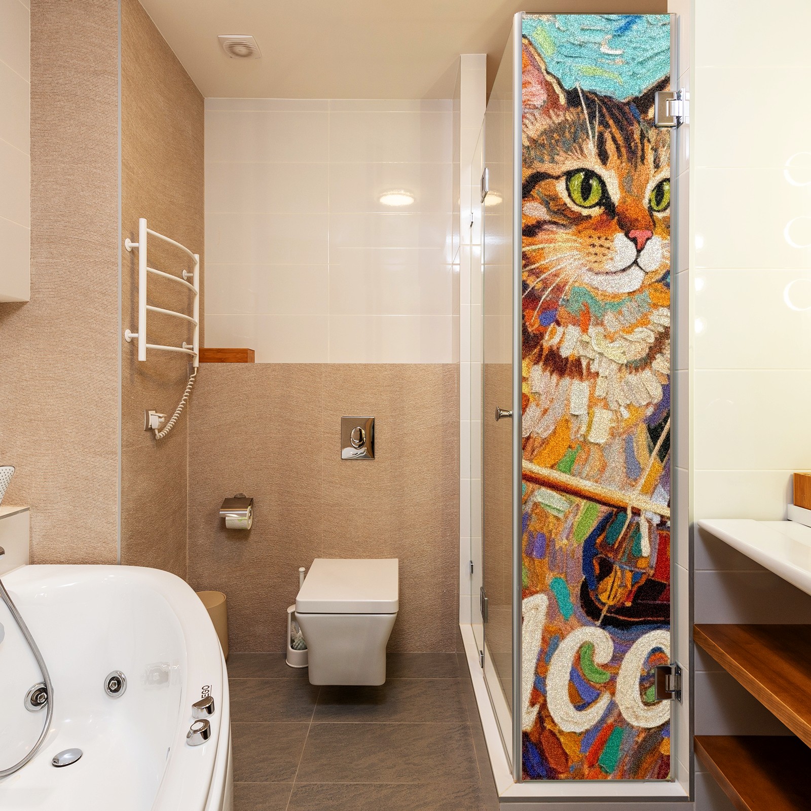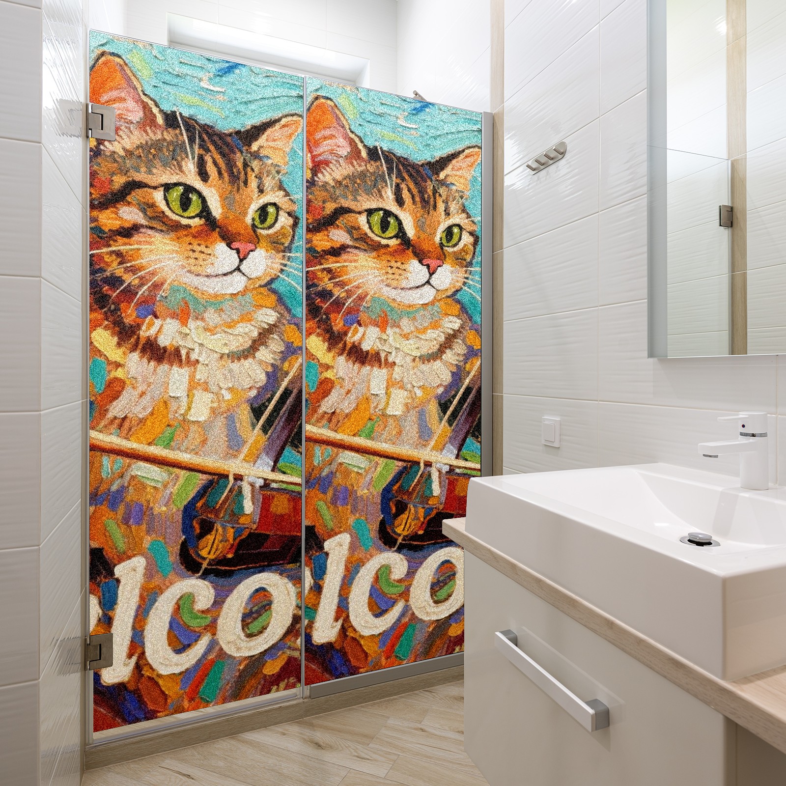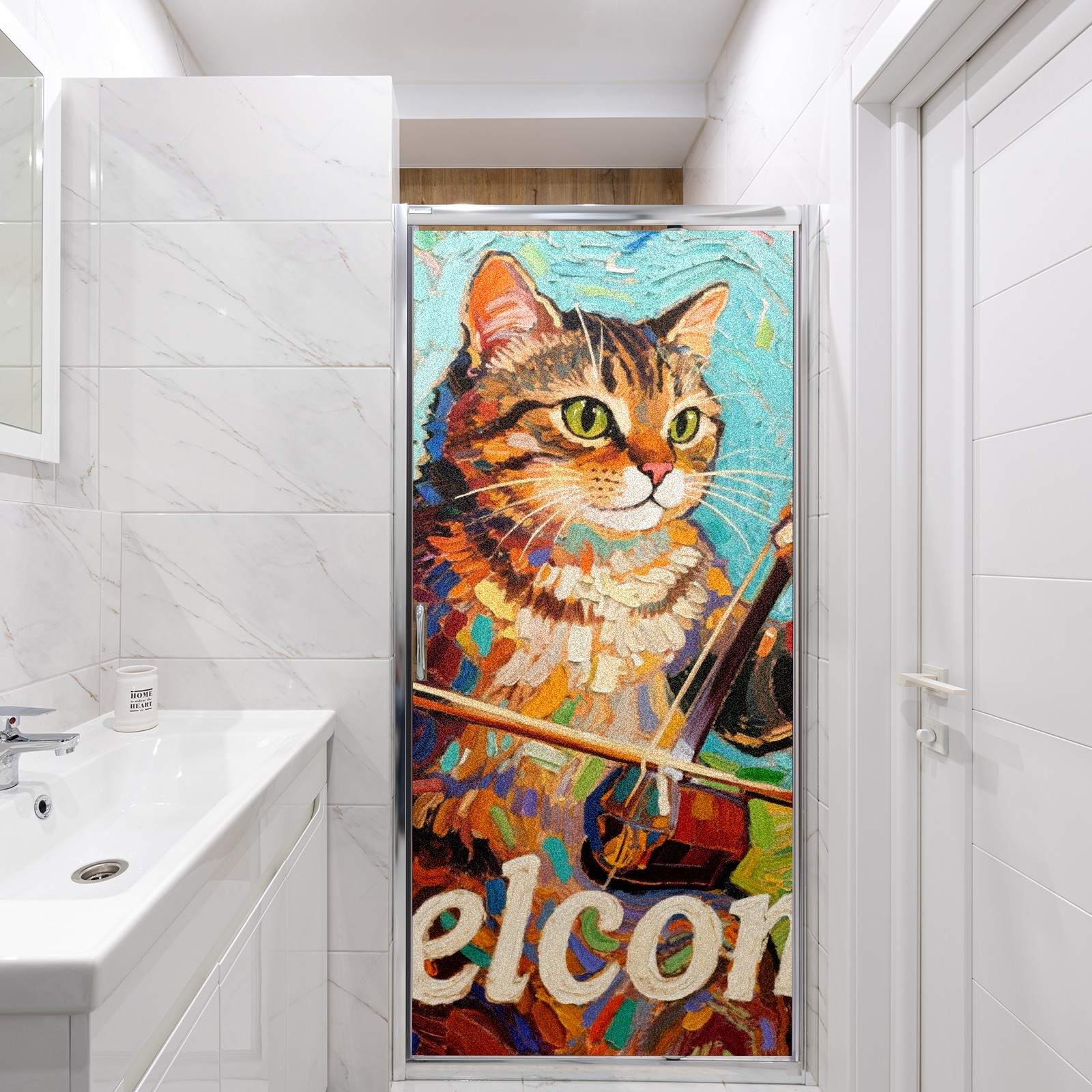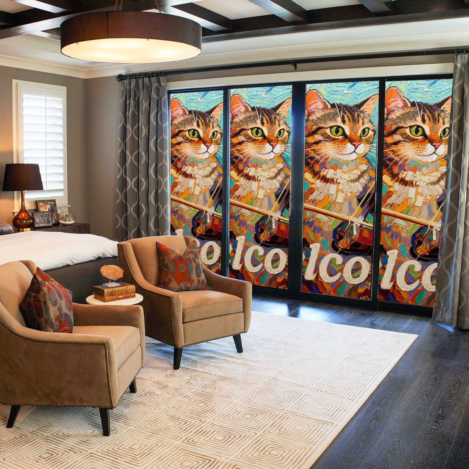 Window Privacy Film Stain Glass Window Privacy Film Stain Glass Static Stained Glass Cling Tint for Home Bedroom 17.7 x 23.6 Inches Cat