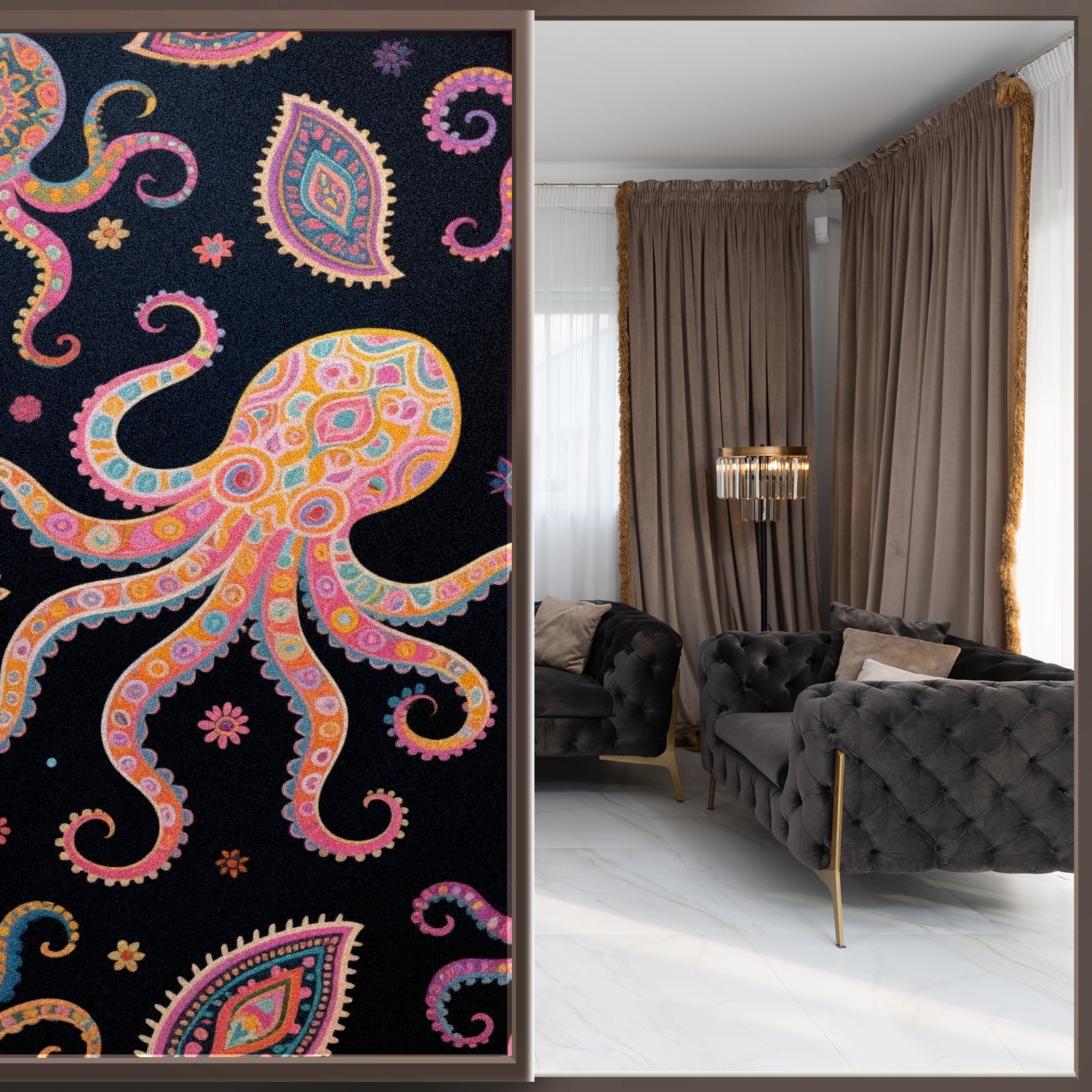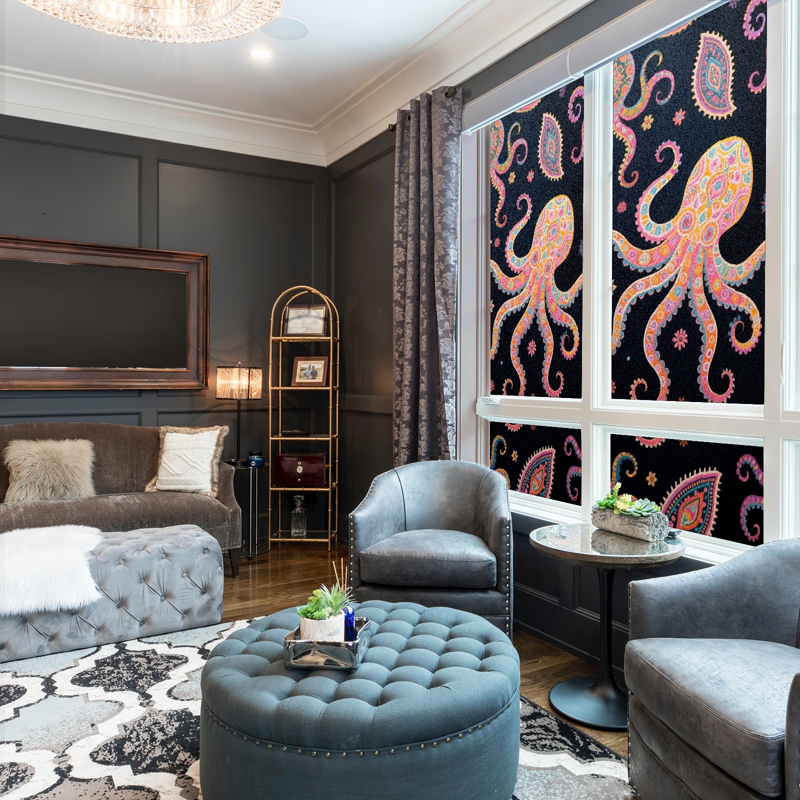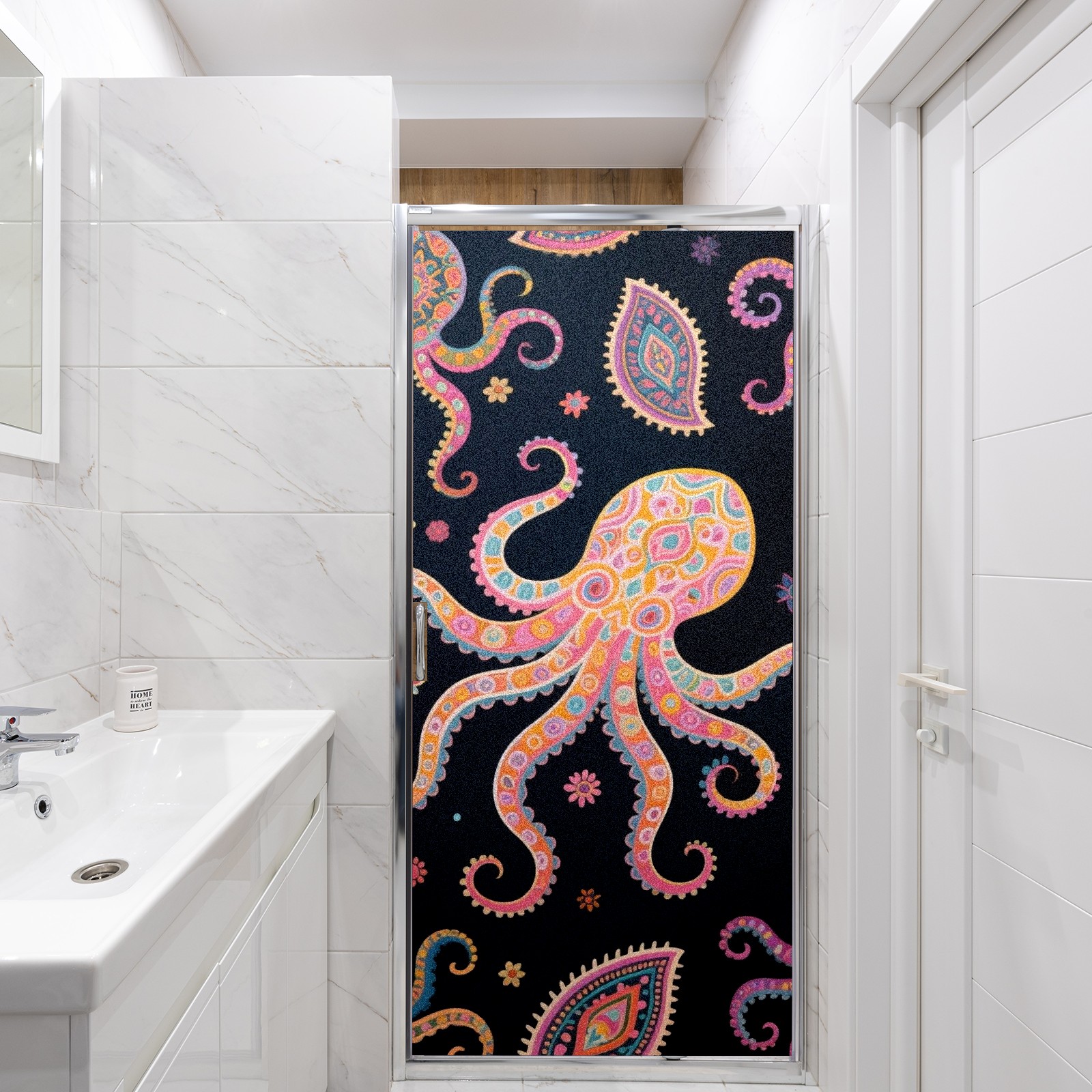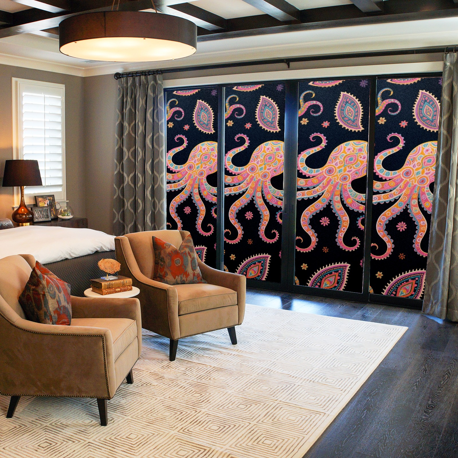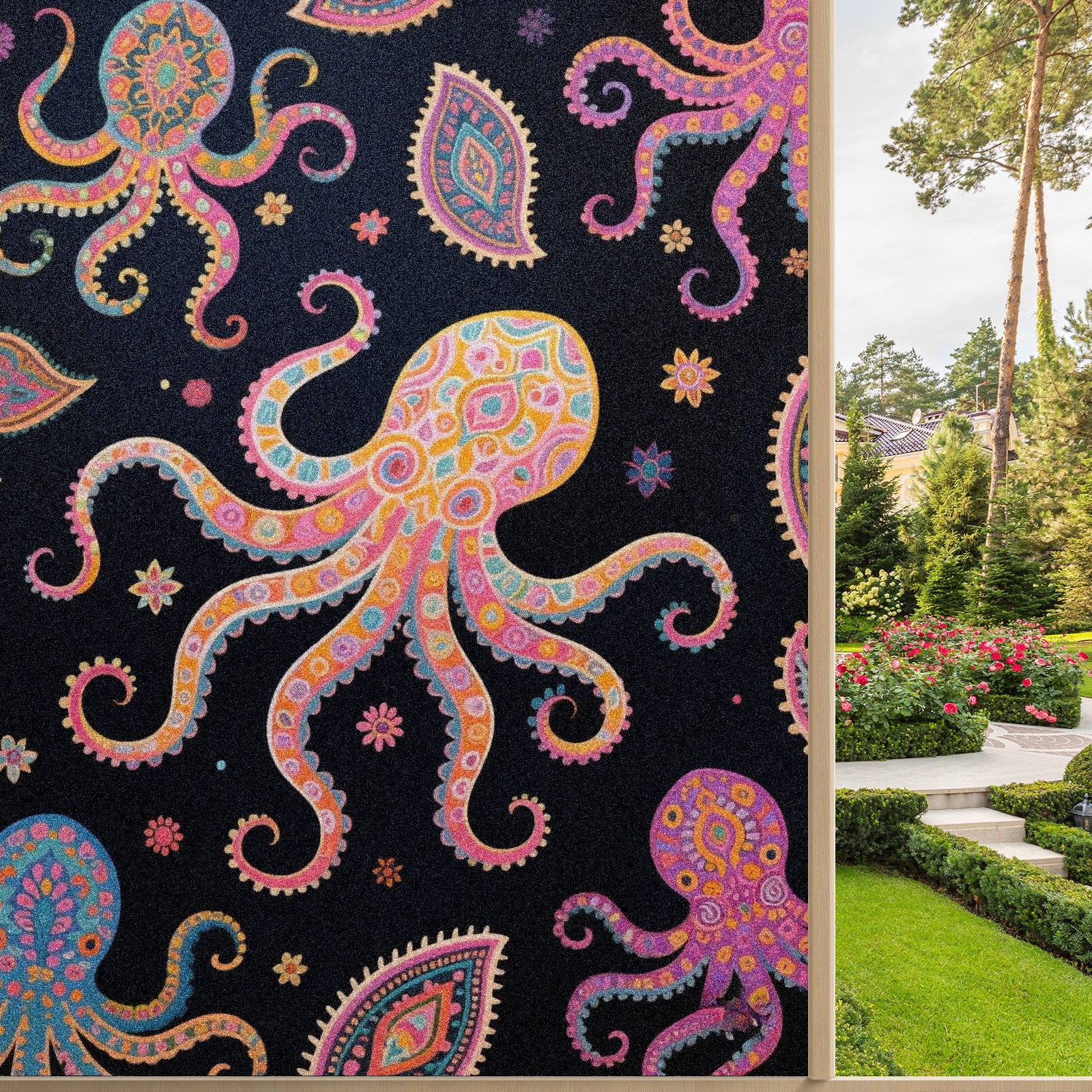 Window Privacy Film Stain Glass Window Privacy Film Stain Glass Static Stained Glass Cling Tint for Home Bedroom 17.7 x 23.6 Inches Octopus