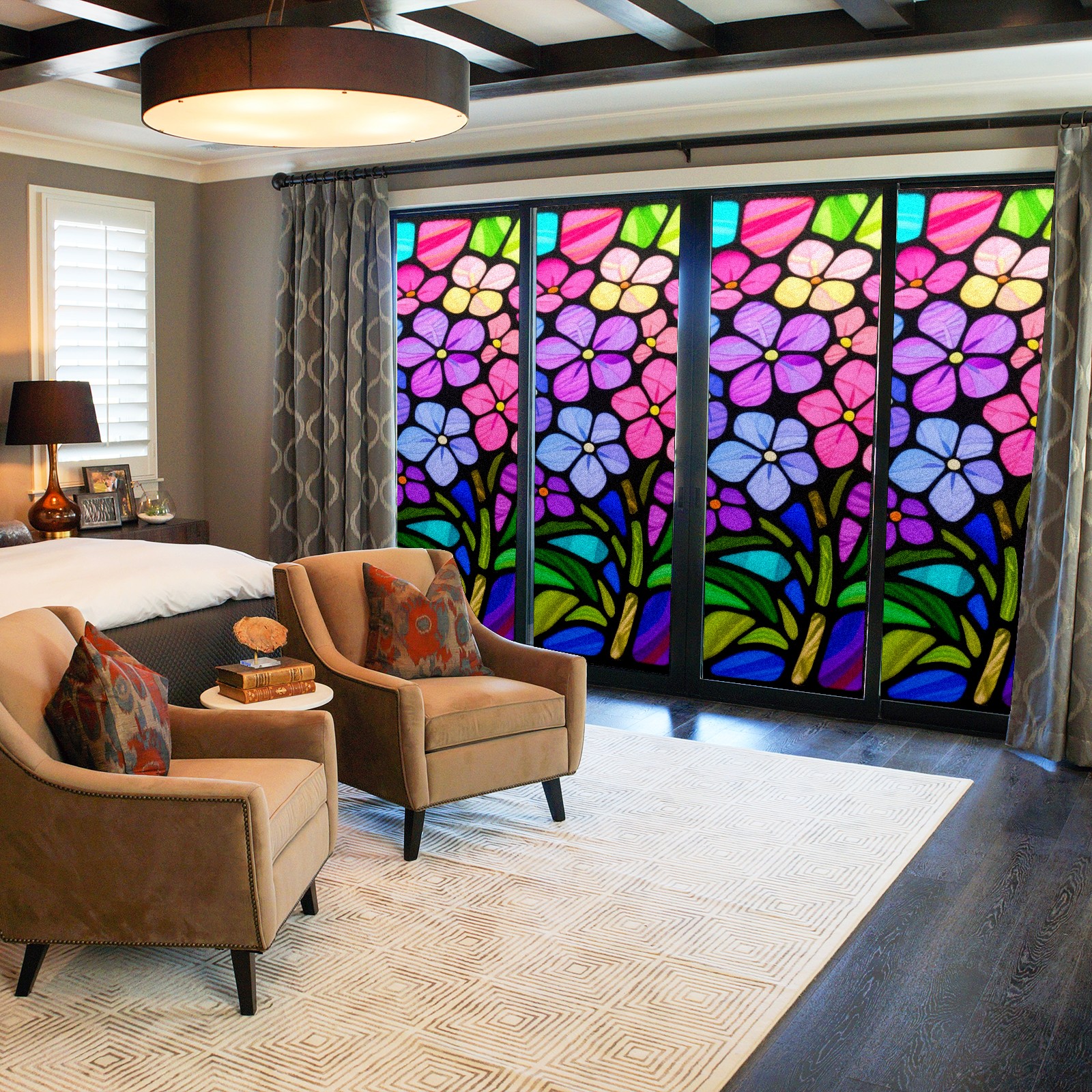 Window Privacy Film Stain Glass Window Privacy Film Stain Glass Static Stained Glass Cling Tint for Home Bedroom 17.7 x 23.6 Inches Hydrangea Glasses