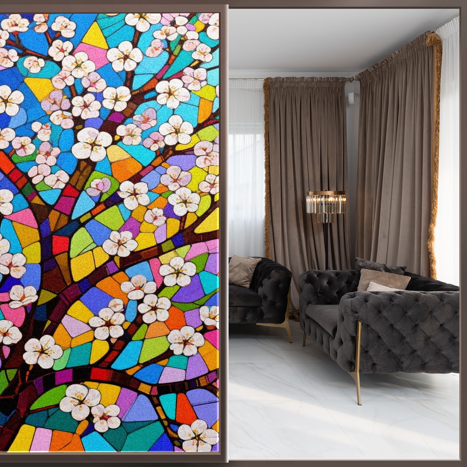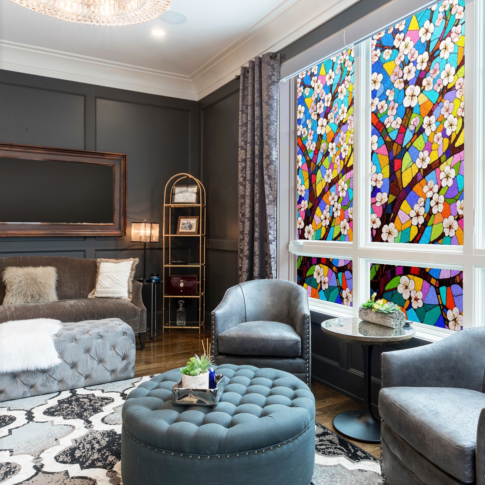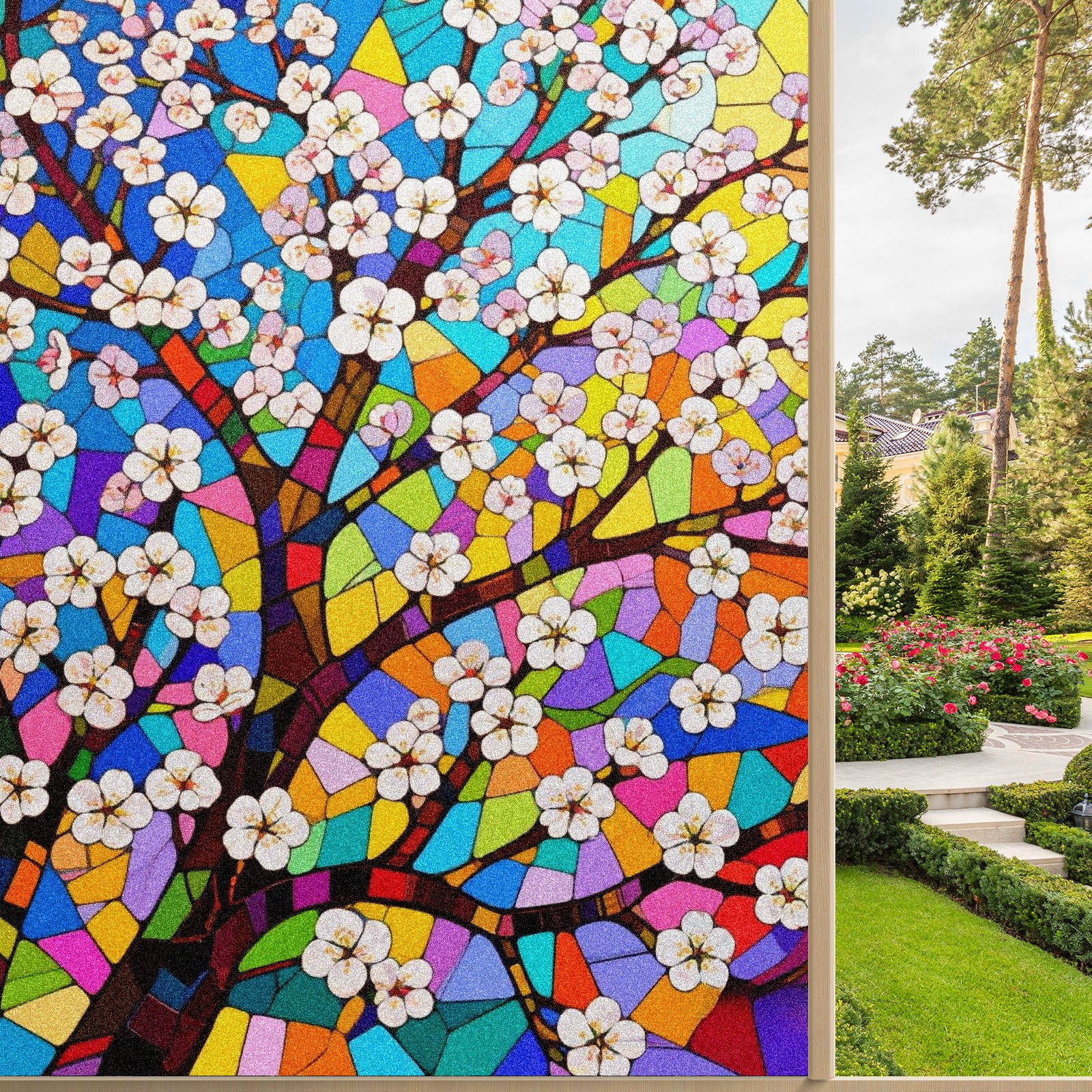 Window Privacy Film Stain Glass Window Privacy Film Stain Glass Static Stained Glass Cling Tint for Home Bedroom 17.7 x 23.6 Inches Pears Flower Glasses