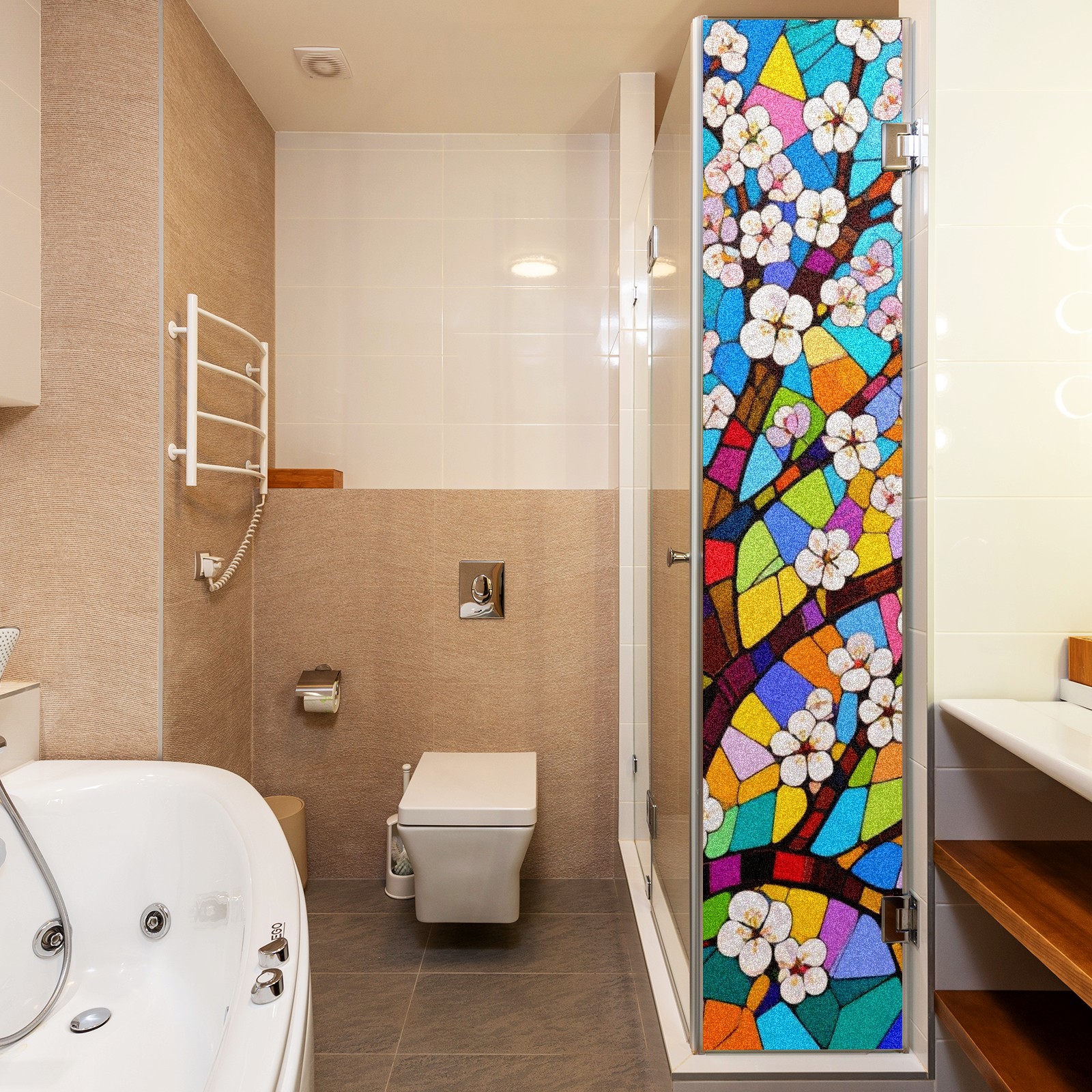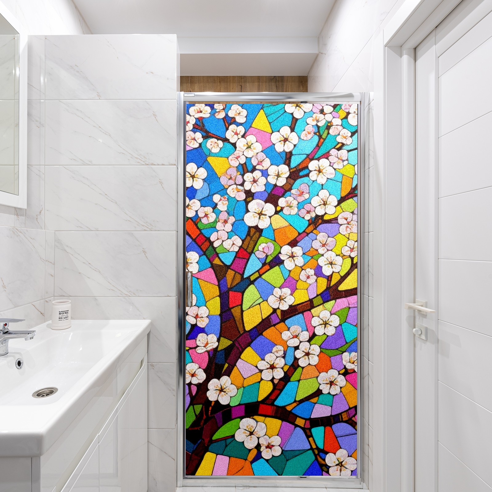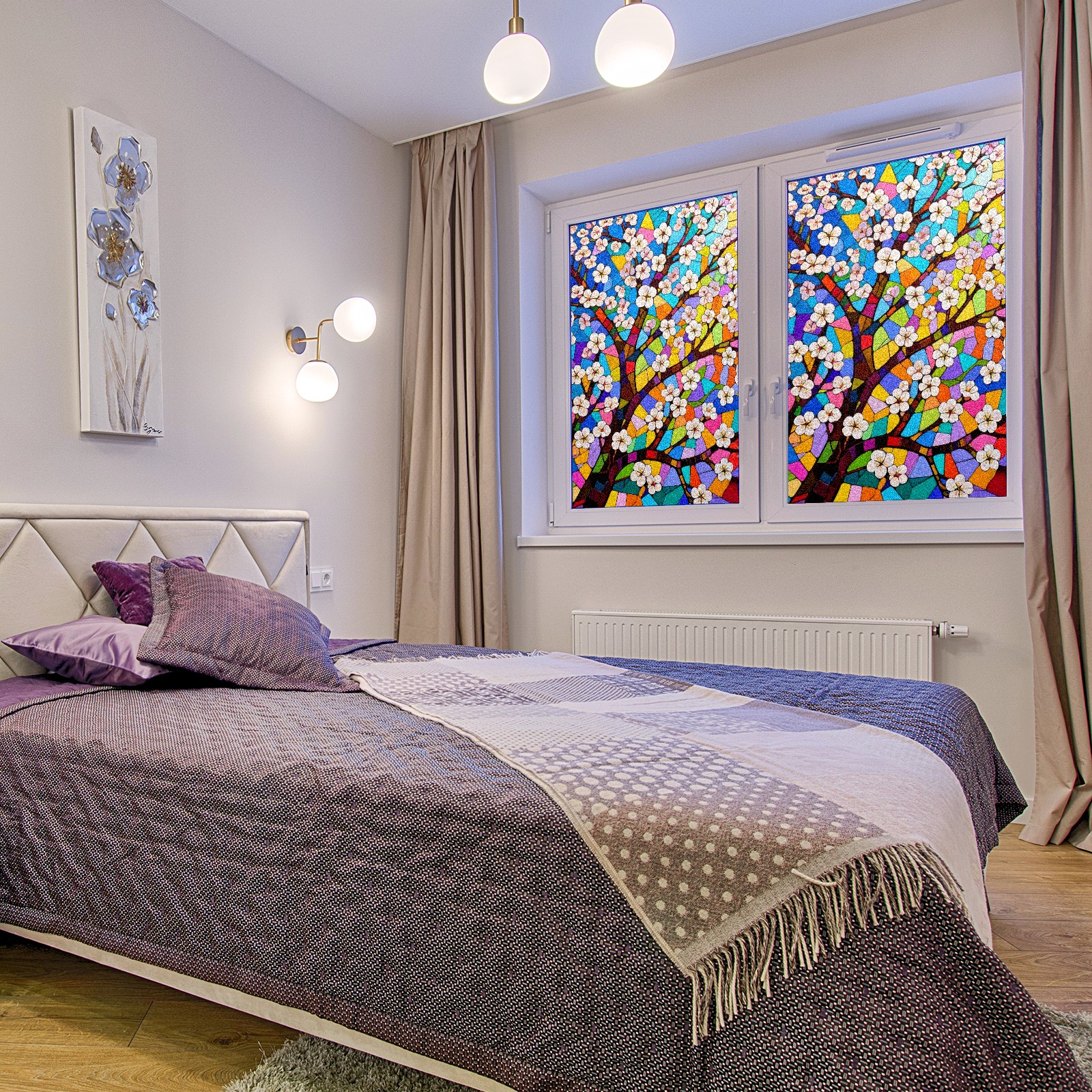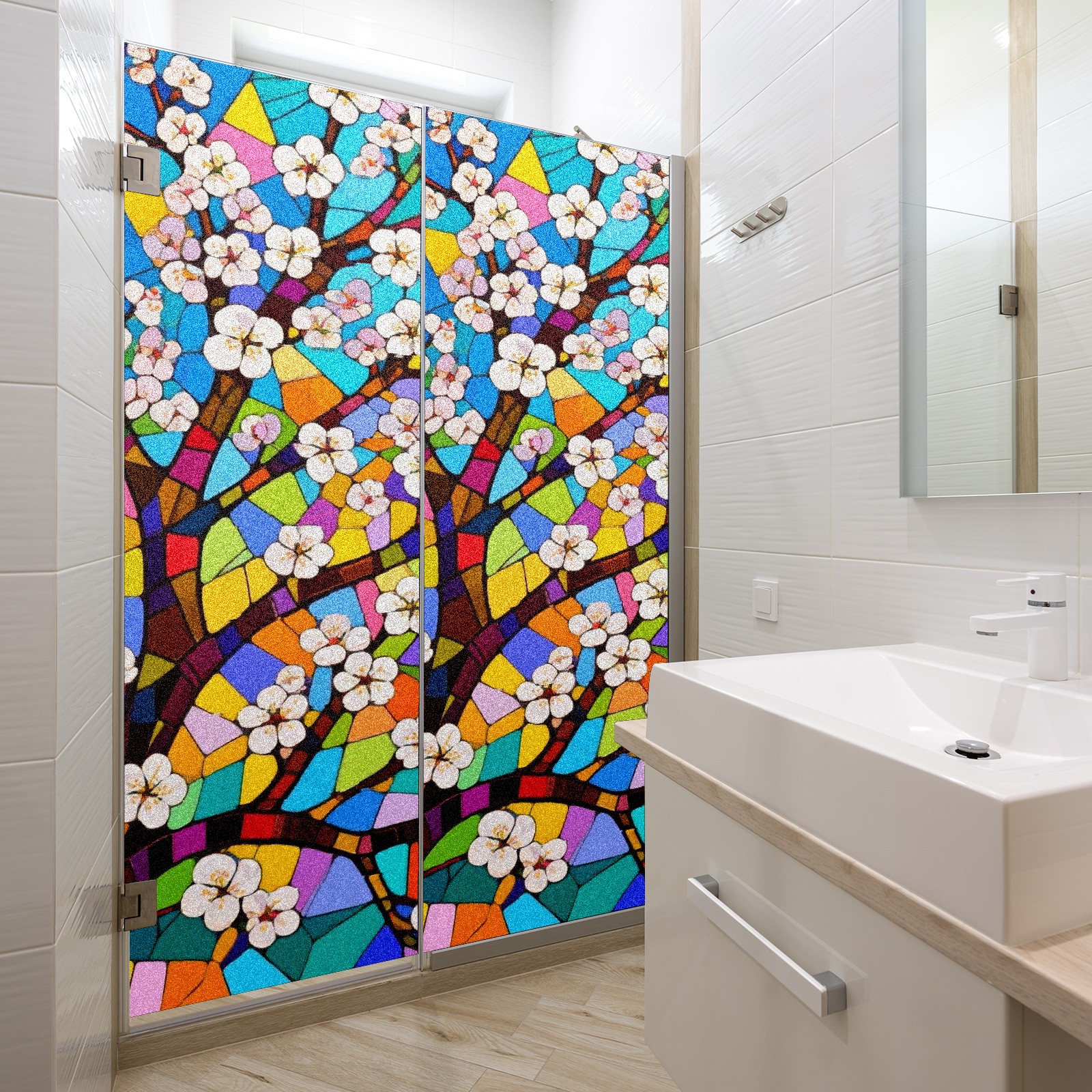Window Privacy Film Stain Glass Window Privacy Film Stain Glass Static Stained Glass Cling Tint for Home Bedroom 17.7 x 23.6 Inches Pears Flower Glasses