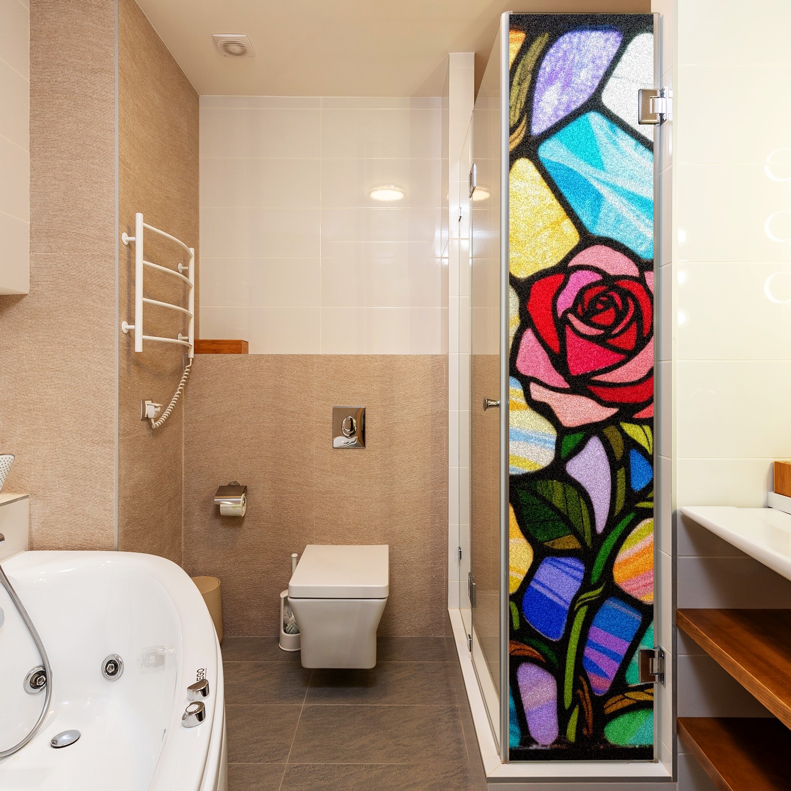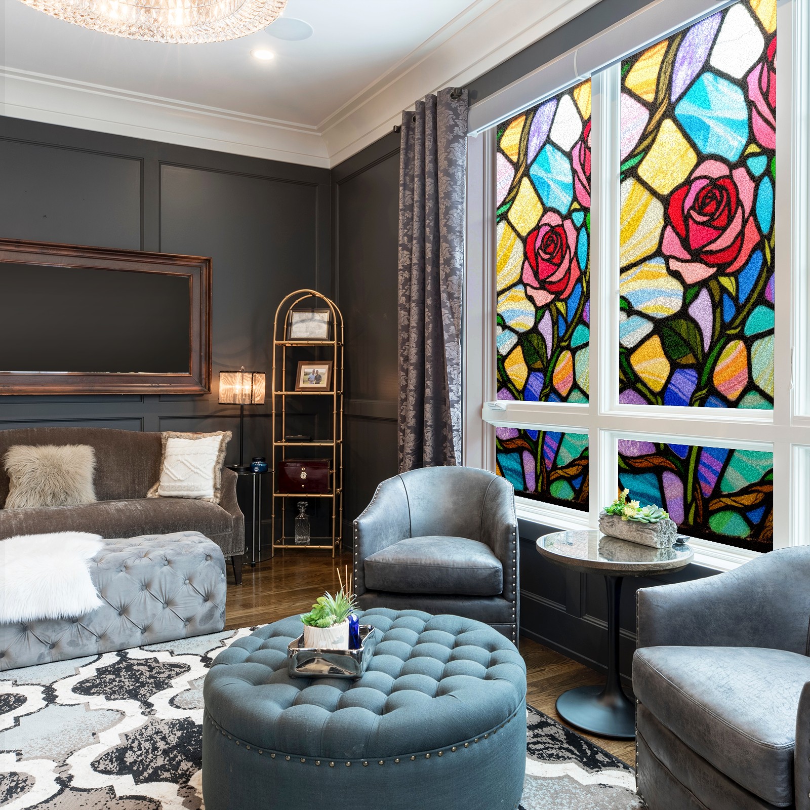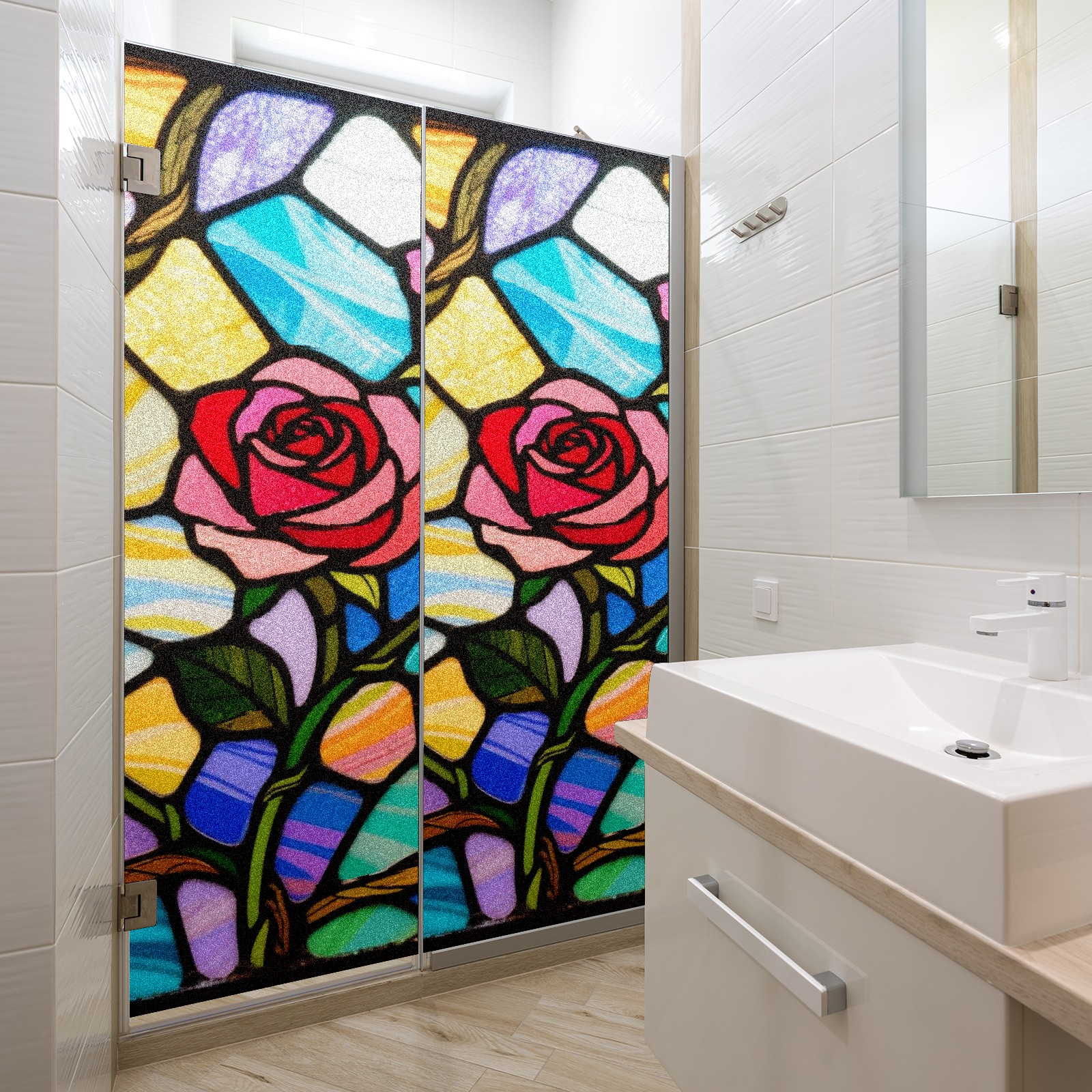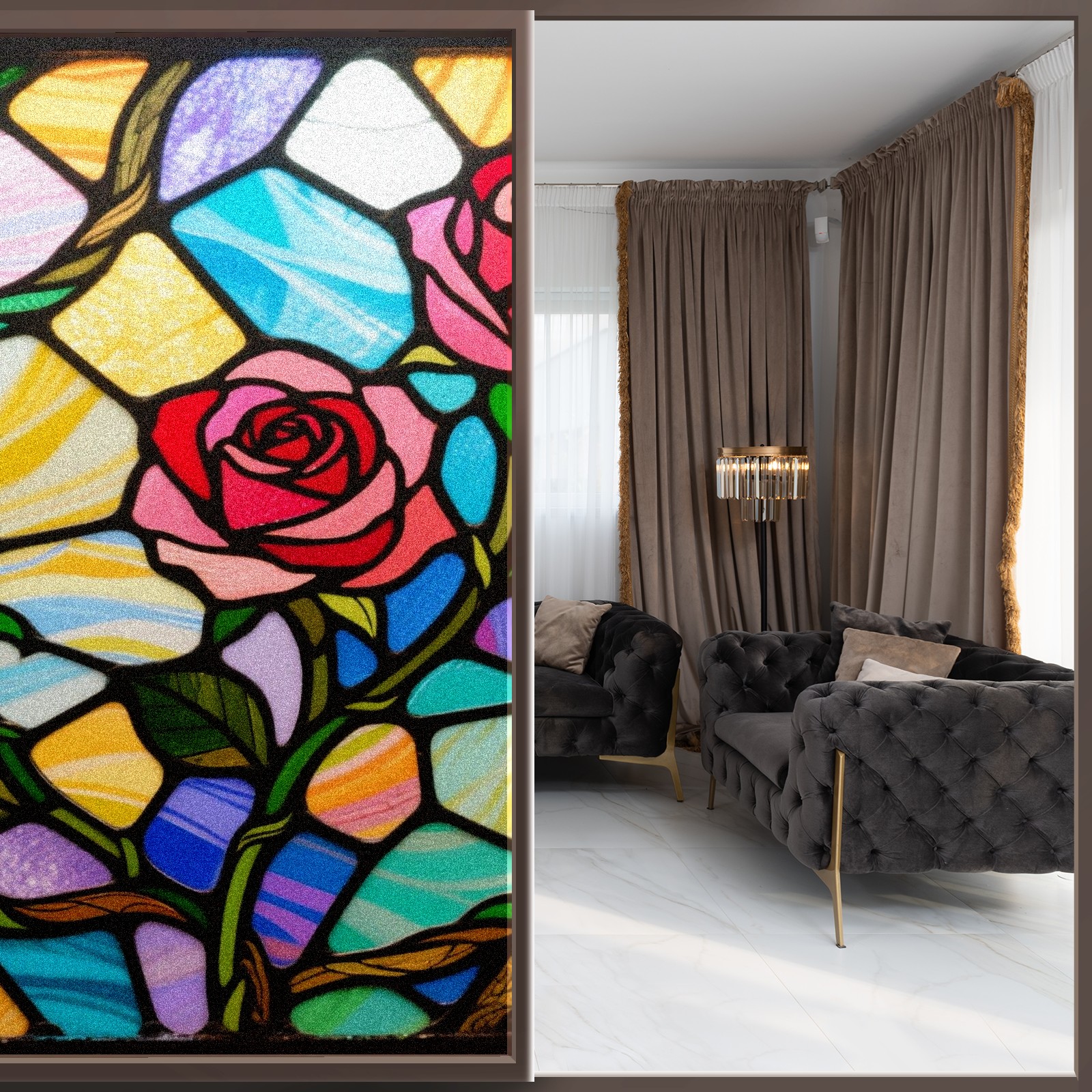 Window Privacy Film Stain Glass Window Privacy Film Stain Glass Static Stained Glass Cling Tint for Home Bedroom 17.7 x 23.6 Inches Rose Glass