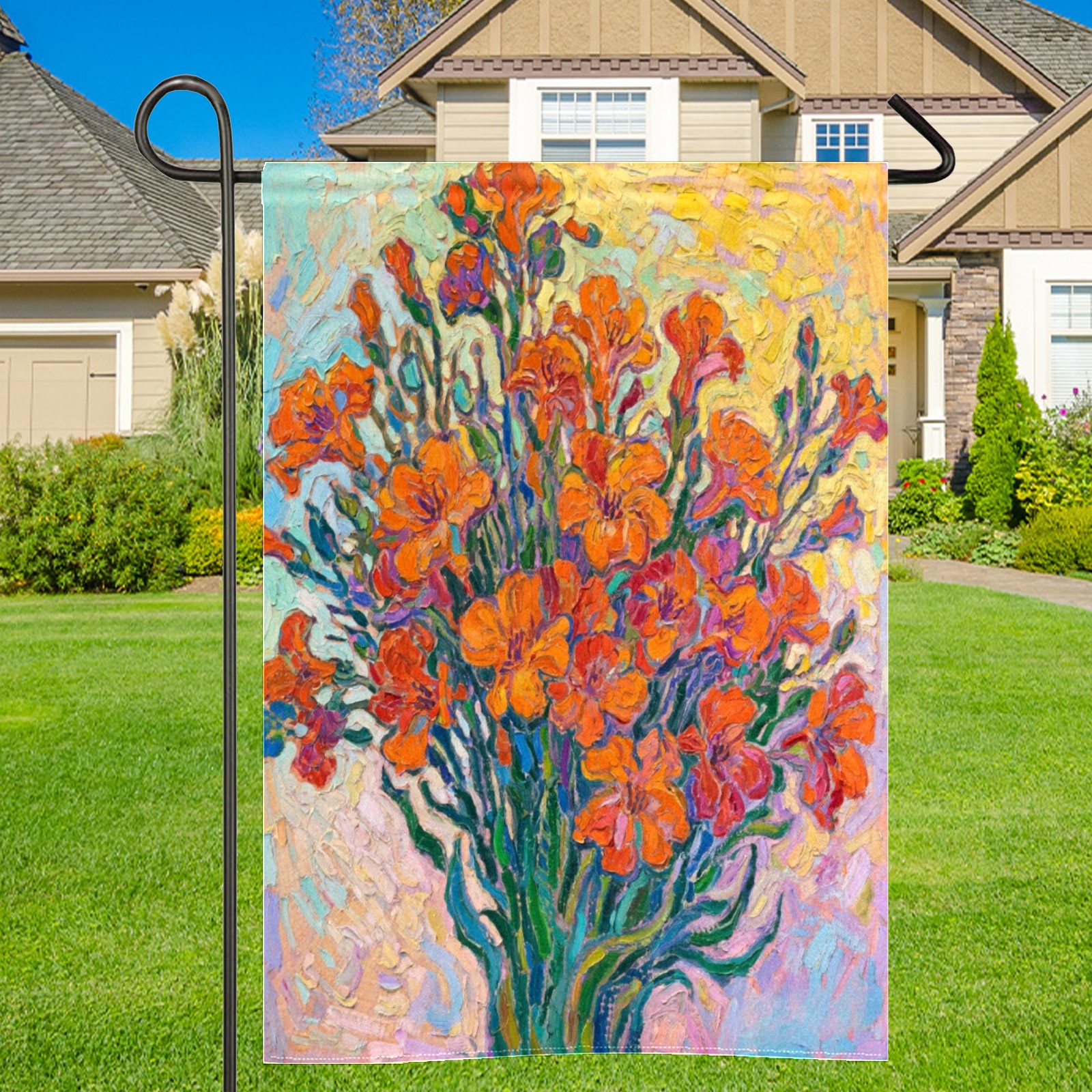 <p>This garden flag is made of 100% all-weather polyester fiber, which is fade resistant, UV resistant, and not afraid of wind, rain, and scorching sun. Double sided high-definition printing, bright patterns on both sides, readable text on both sides, 360 ° eye-catching. Sewing sleeve compatible with standard flag holder, easy to install. Whether it's the deck, terrace, or lawn, they can instantly enhance the courtyard style, welcoming visitors with unique designs and adding exquisite charm to outdoor spaces.</p>