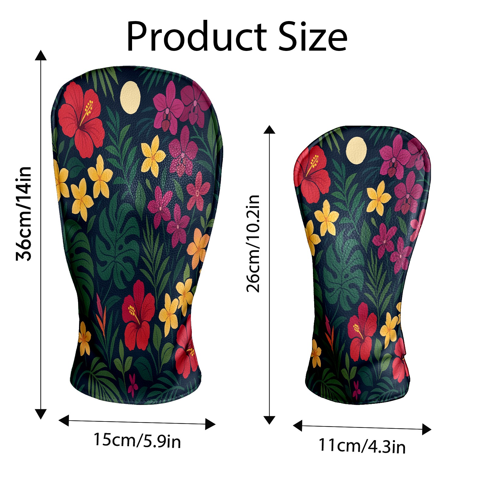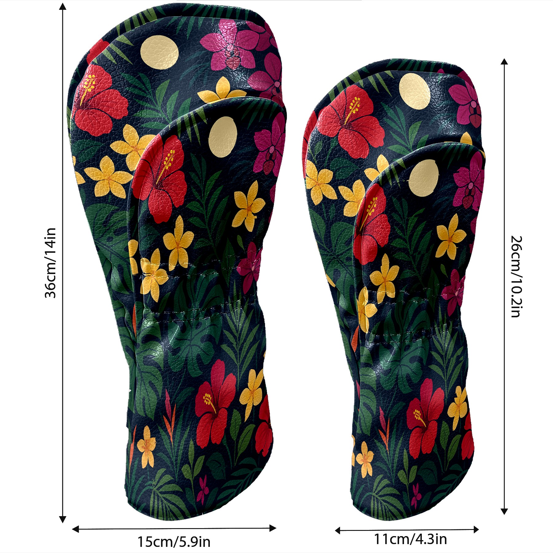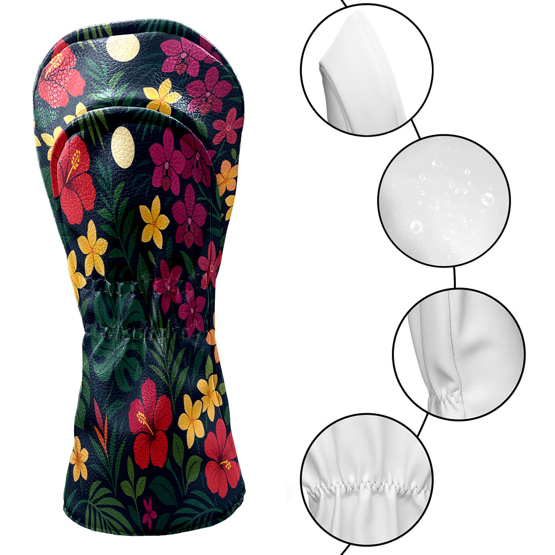 Golf Club Head Cover Premium Leather Driver Headcover, Golf Head Covers for Woods and Driver Waterproof Golf Headcovers with Anti-Scratch Lining for Men Women (Tropical Seamless Pattern)