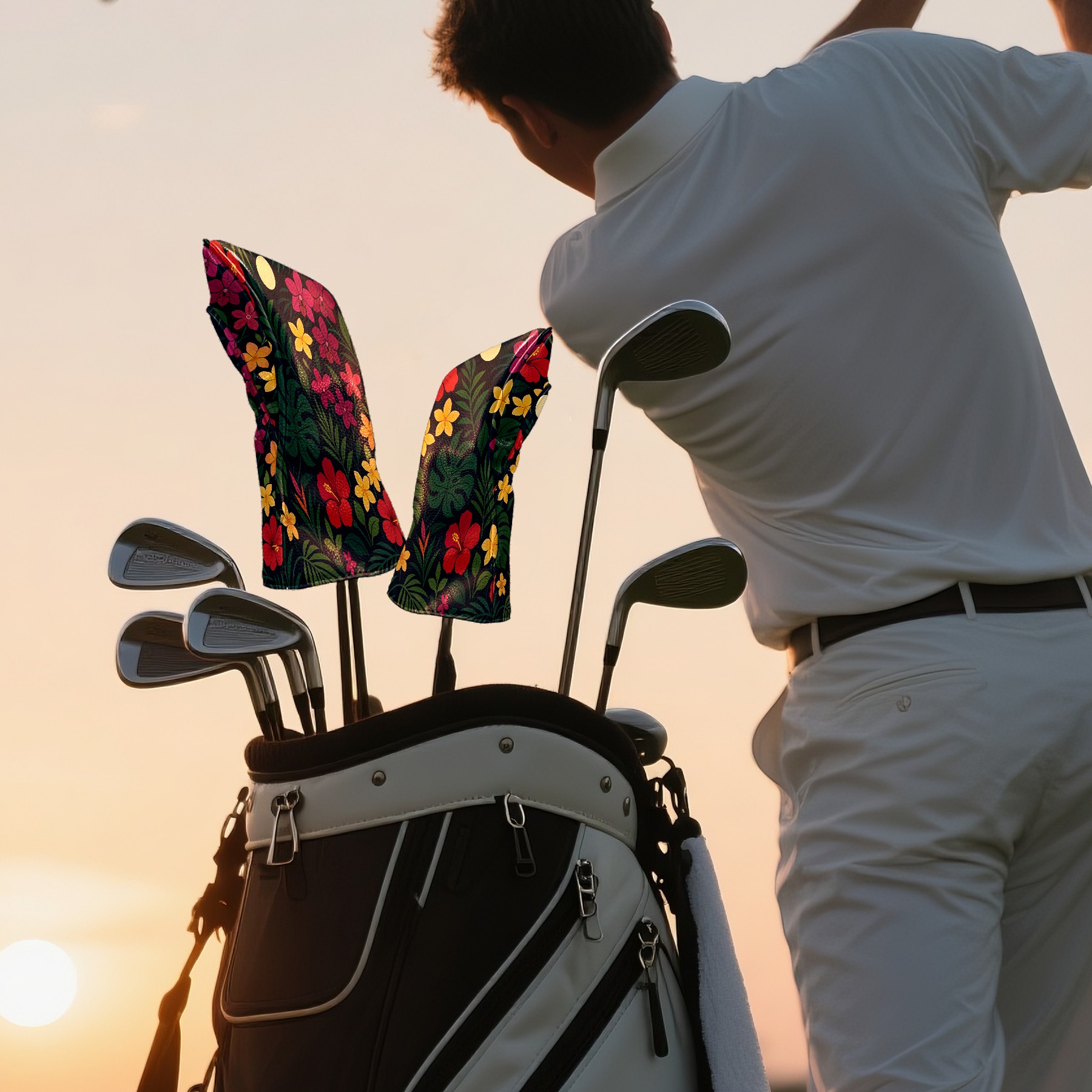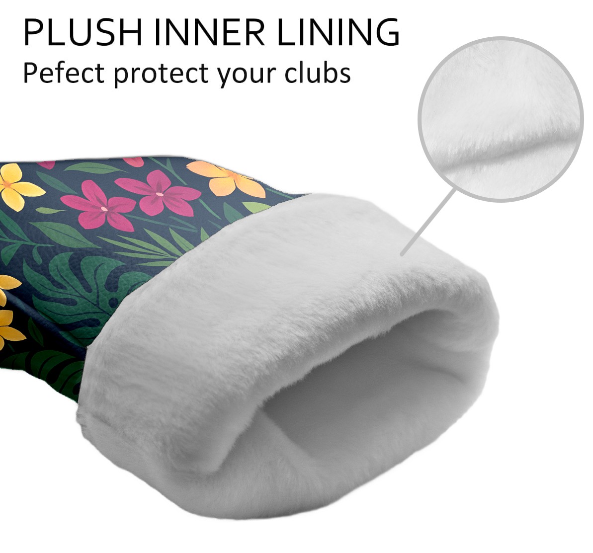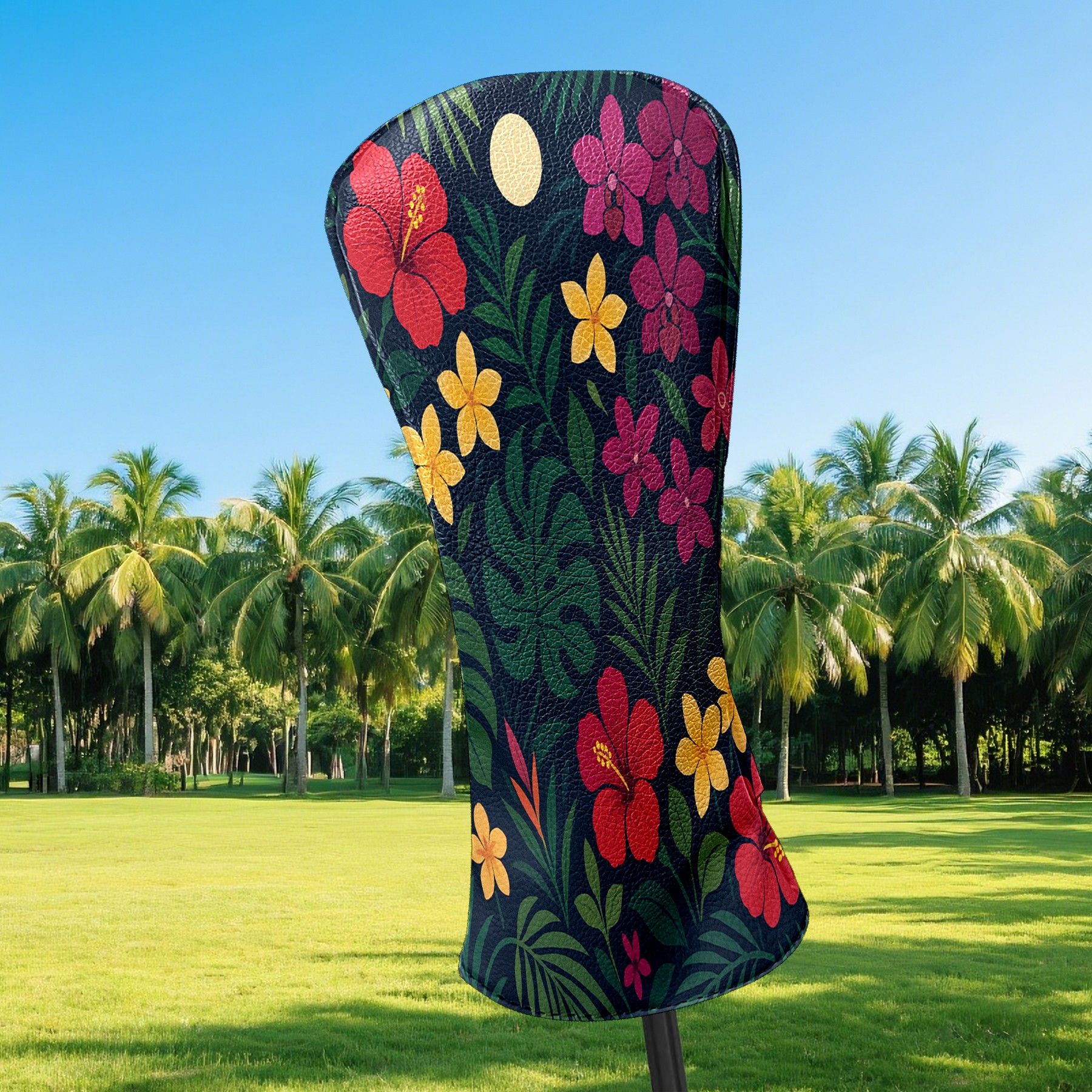 Golf Club Head Cover Premium Leather Driver Headcover, Golf Head Covers for Woods and Driver Waterproof Golf Headcovers with Anti-Scratch Lining for Men Women (Tropical Seamless Pattern)