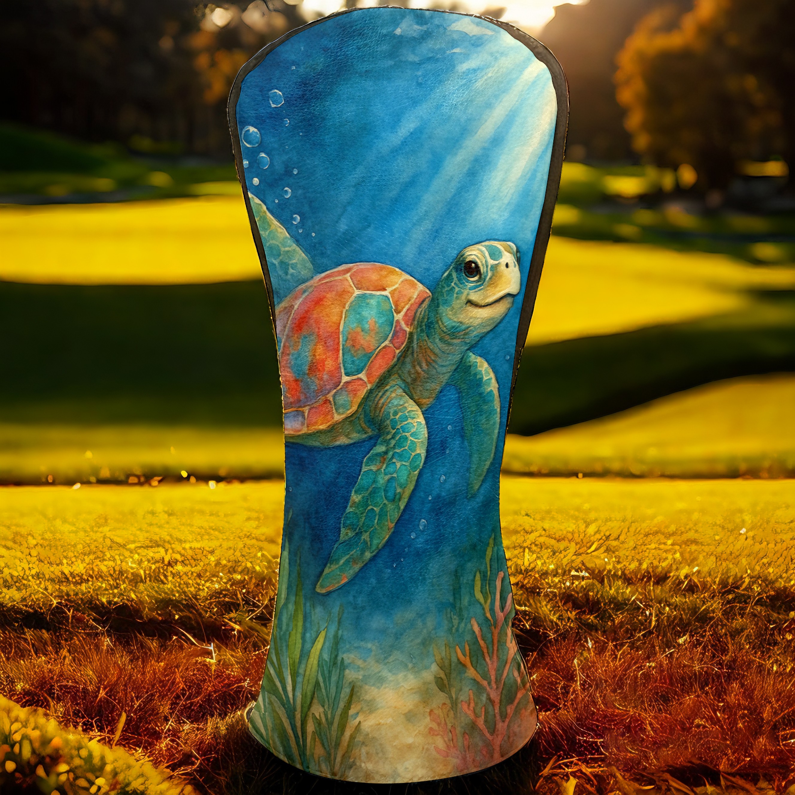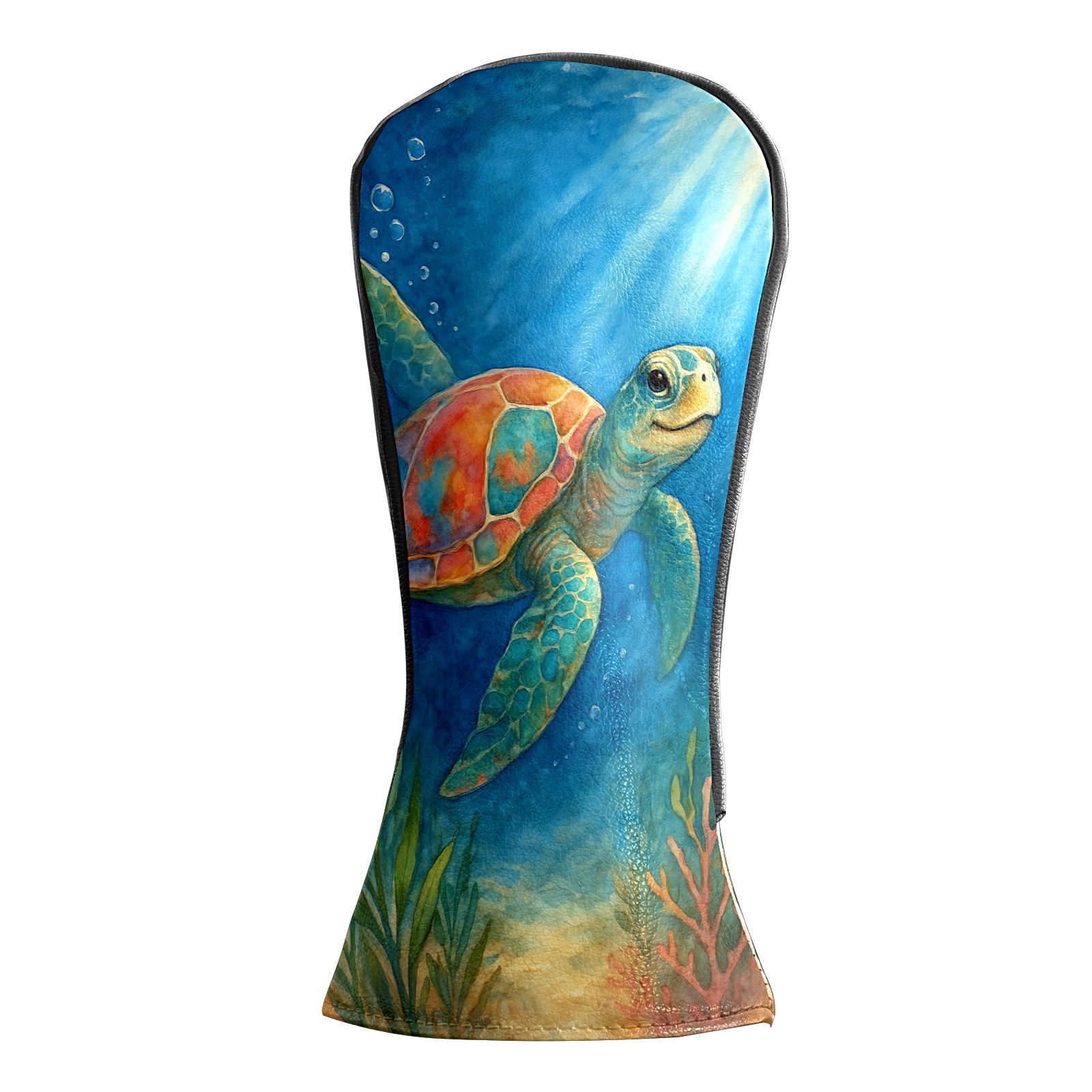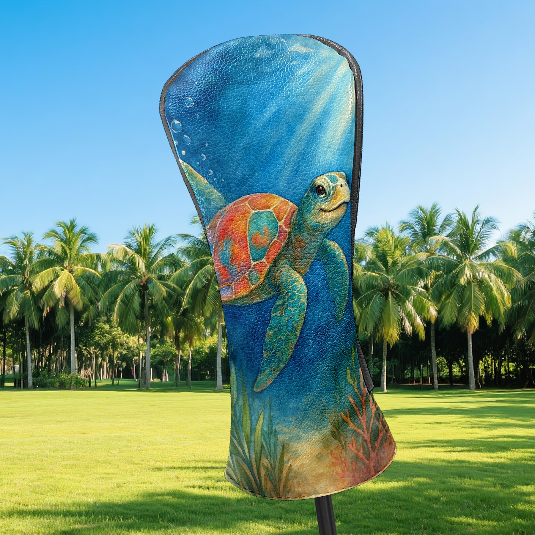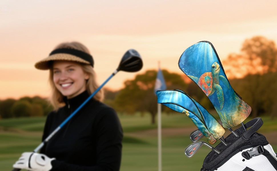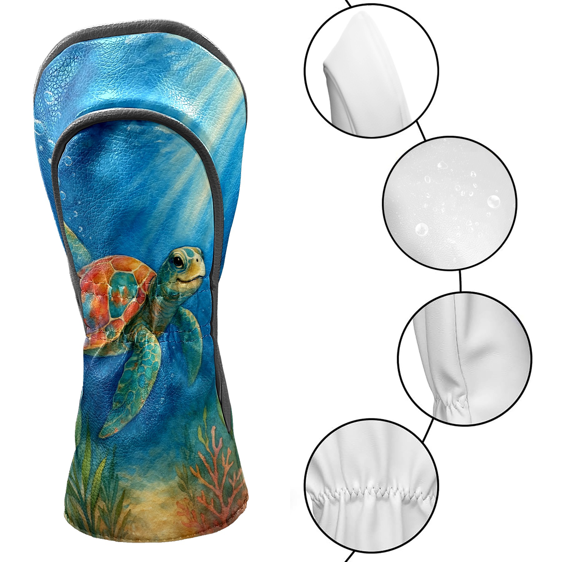 Golf Club Head Cover Premium Leather Driver Headcover, Golf Head Covers for Woods and Driver Waterproof Golf Headcovers with Anti-Scratch Lining for Men Women (Watercolor Sea Turtle)