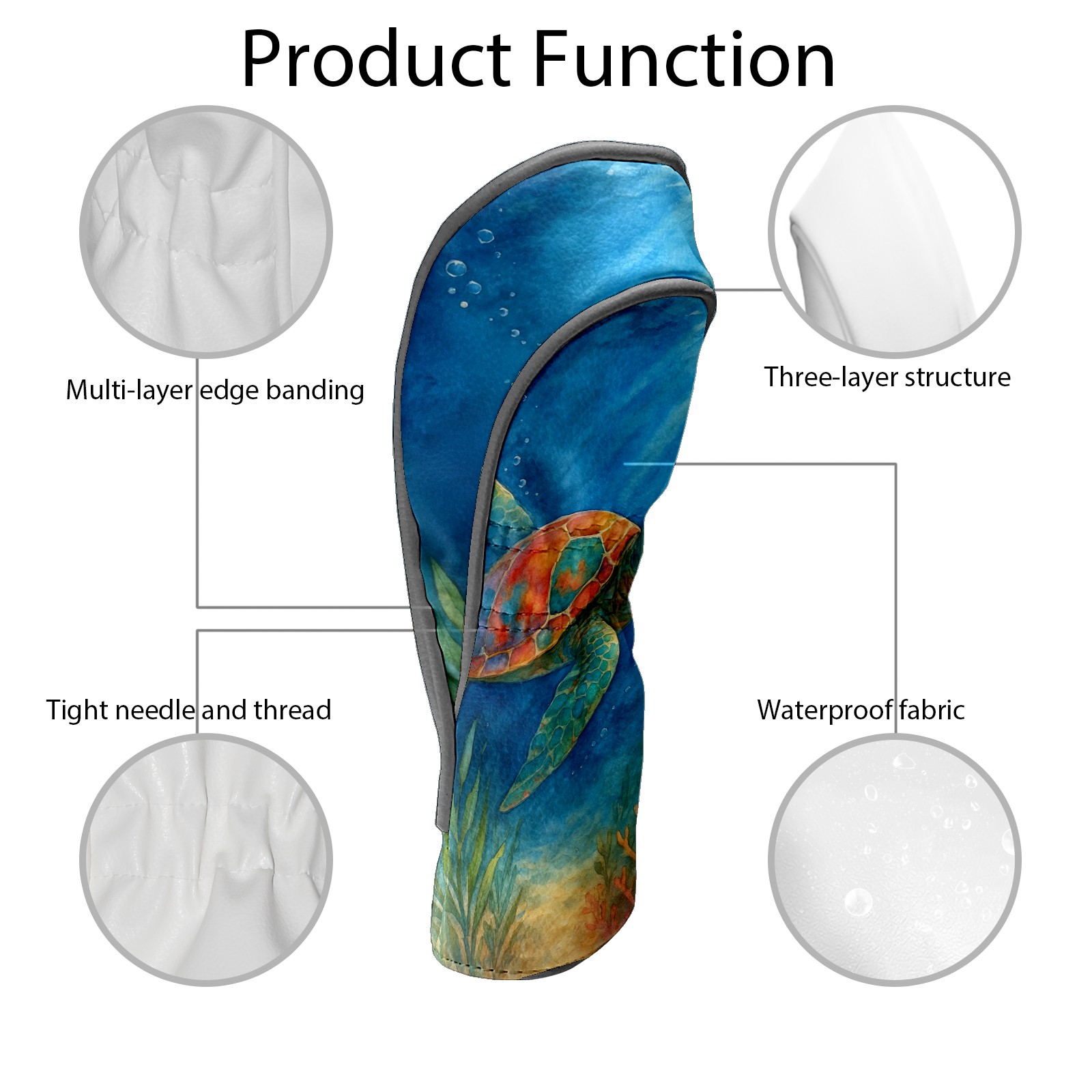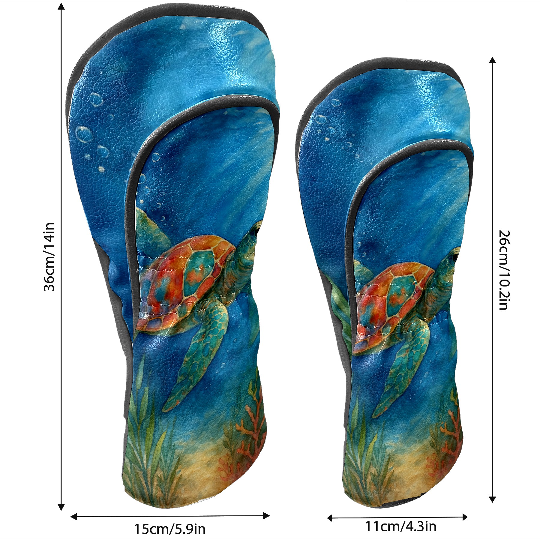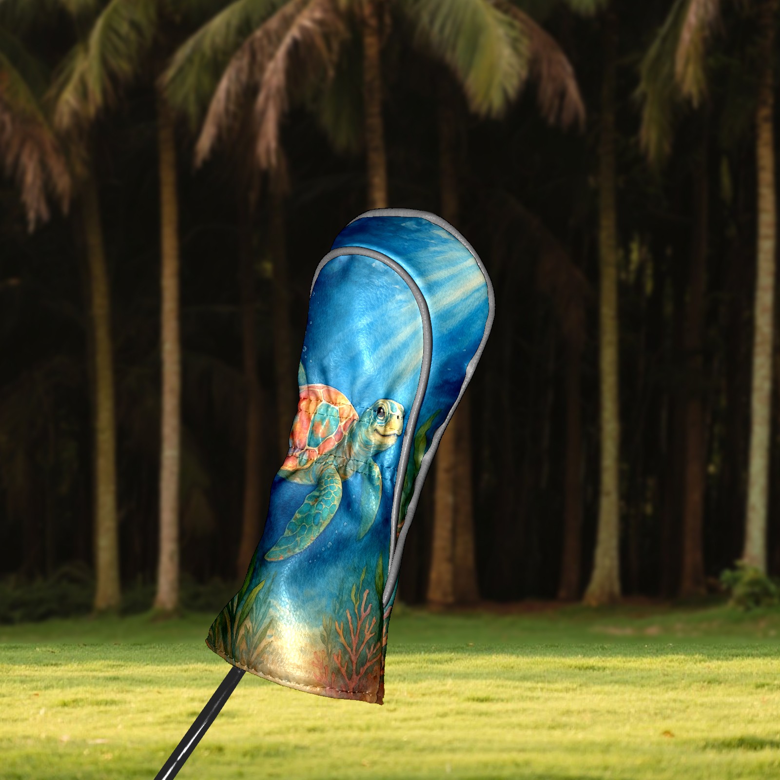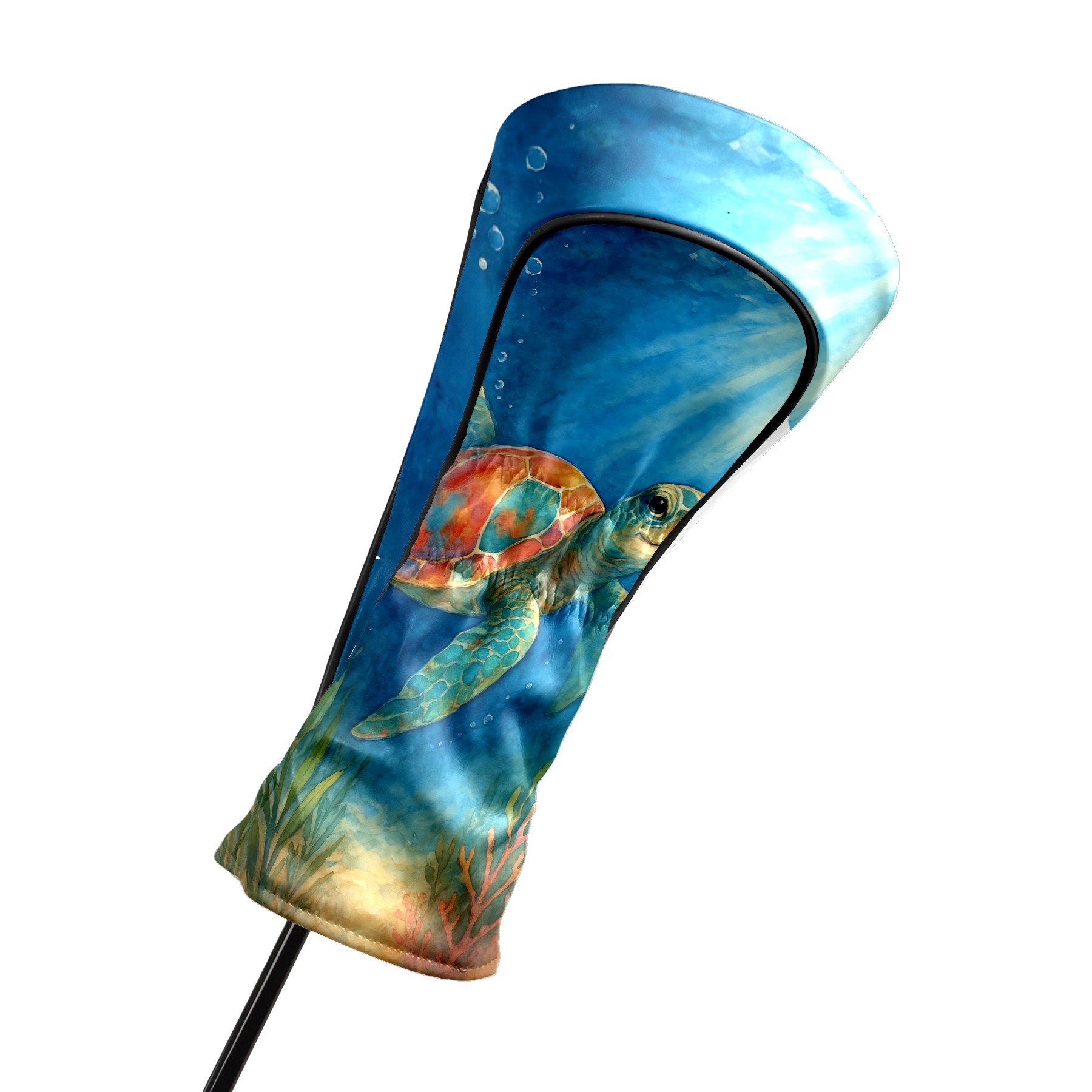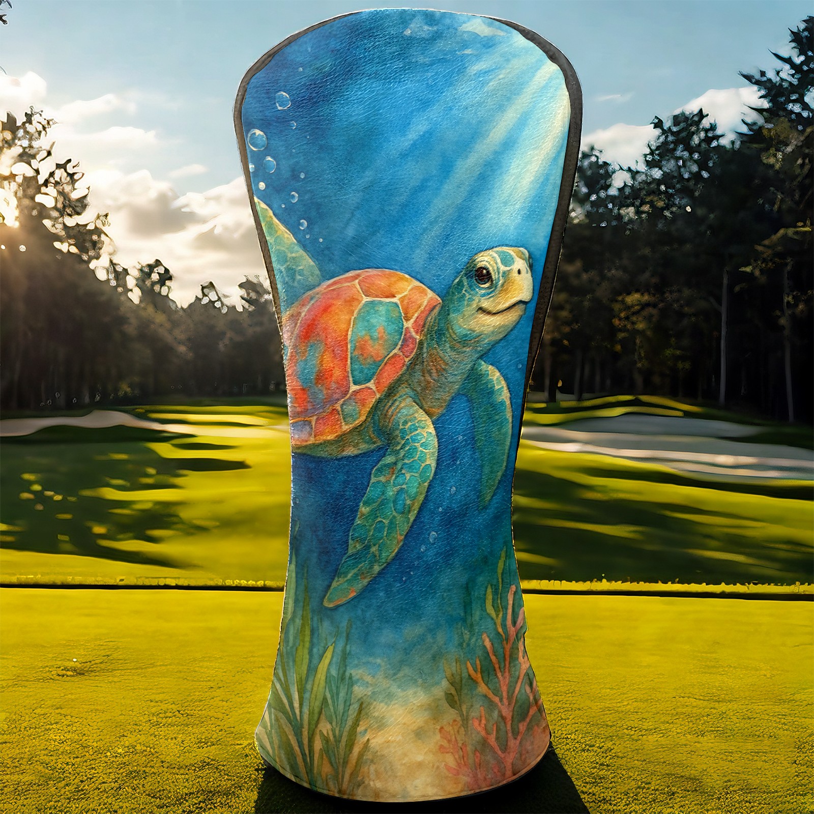 Golf Club Head Cover Premium Leather Driver Headcover, Golf Head Covers for Woods and Driver Waterproof Golf Headcovers with Anti-Scratch Lining for Men Women (Watercolor Sea Turtle)