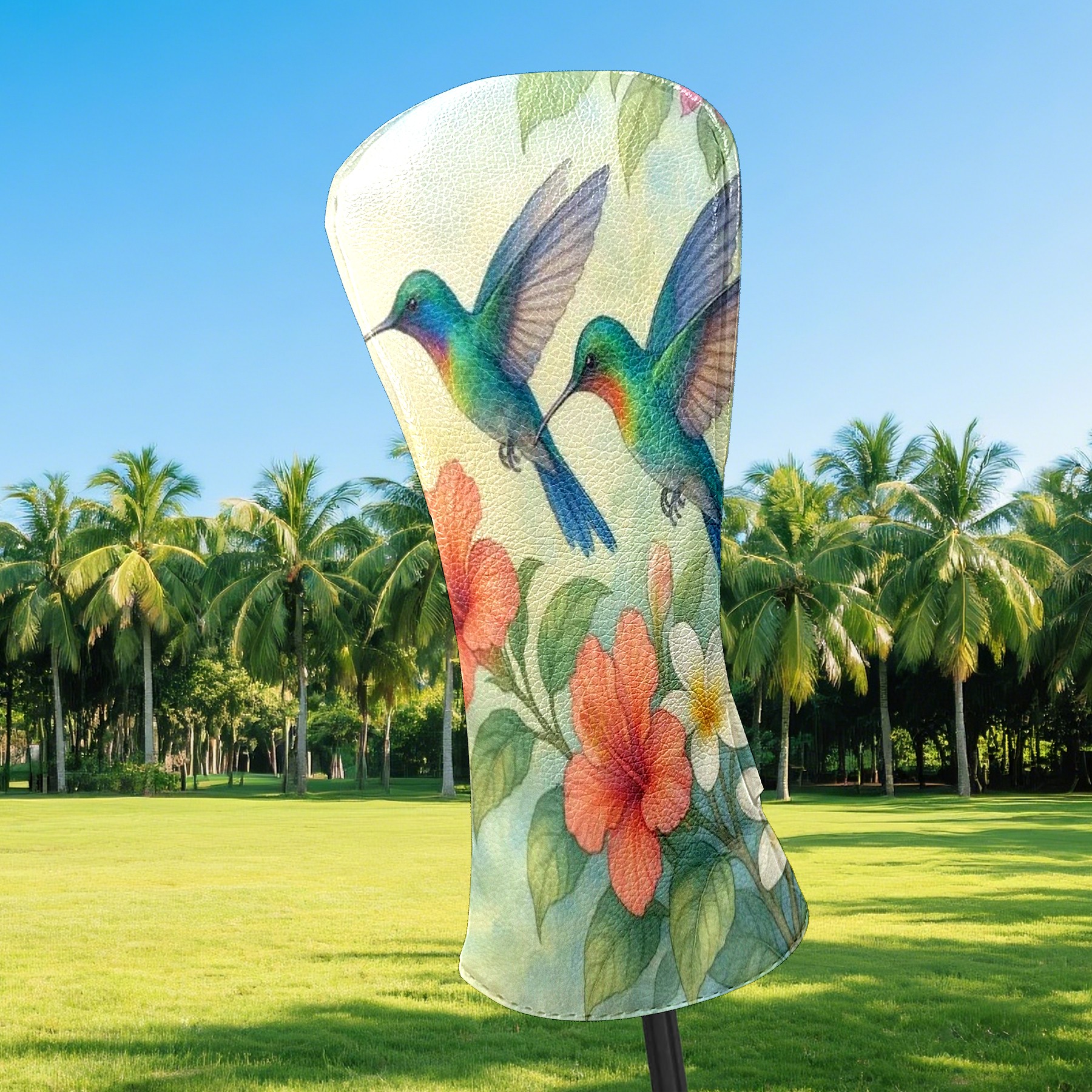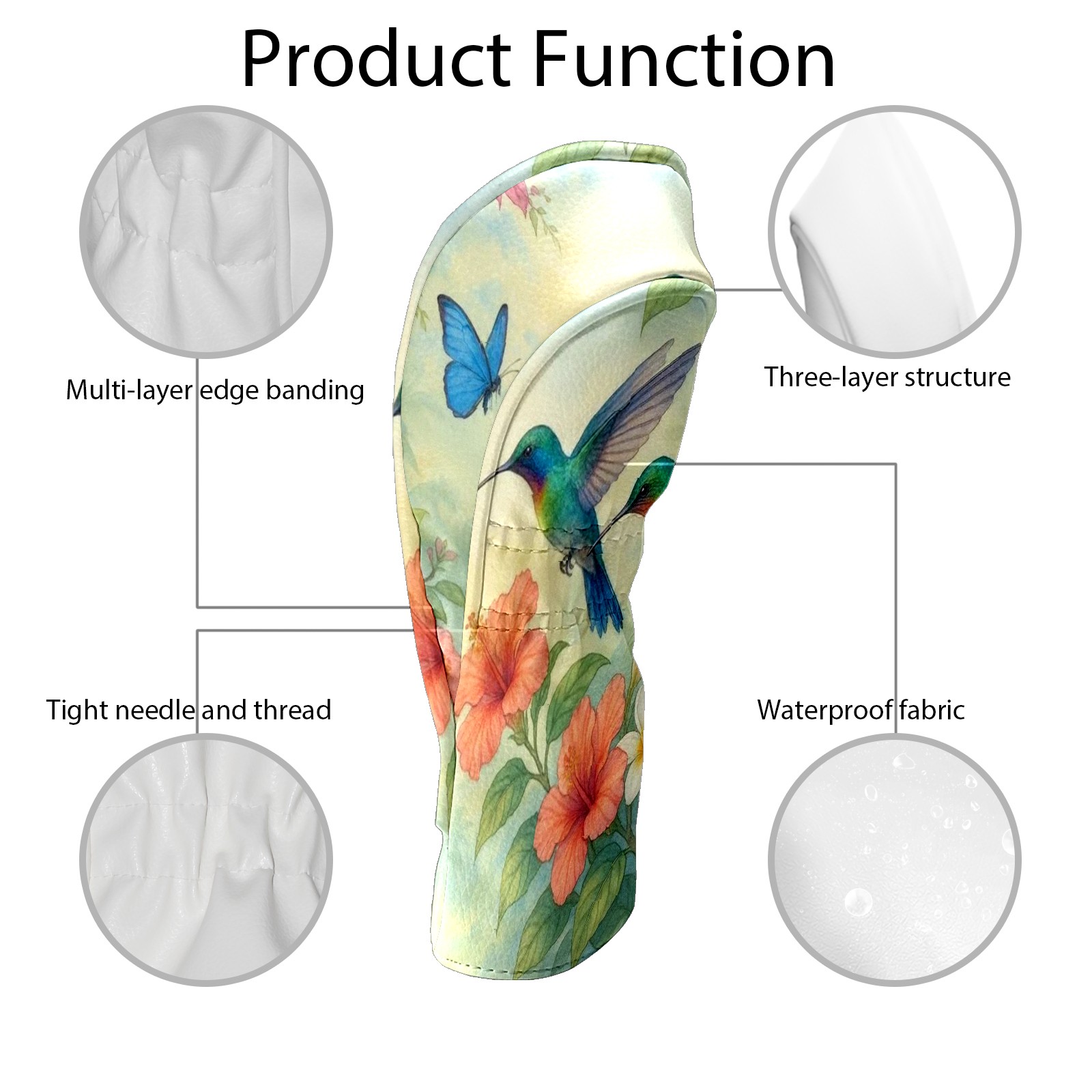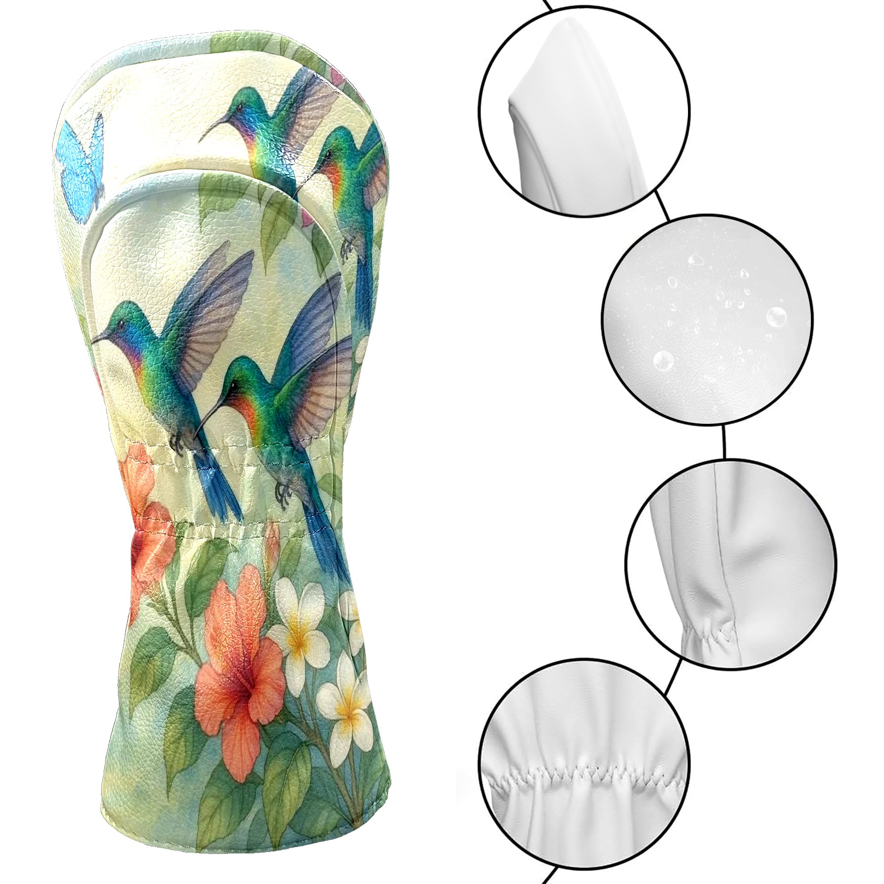 Golf Club Head Cover Premium Leather Driver Headcover, Golf Head Covers for Woods and Driver Waterproof Golf Headcovers with Anti-Scratch Lining for Men Women (Tropical Birds And Flowers Watercolor Postcard)