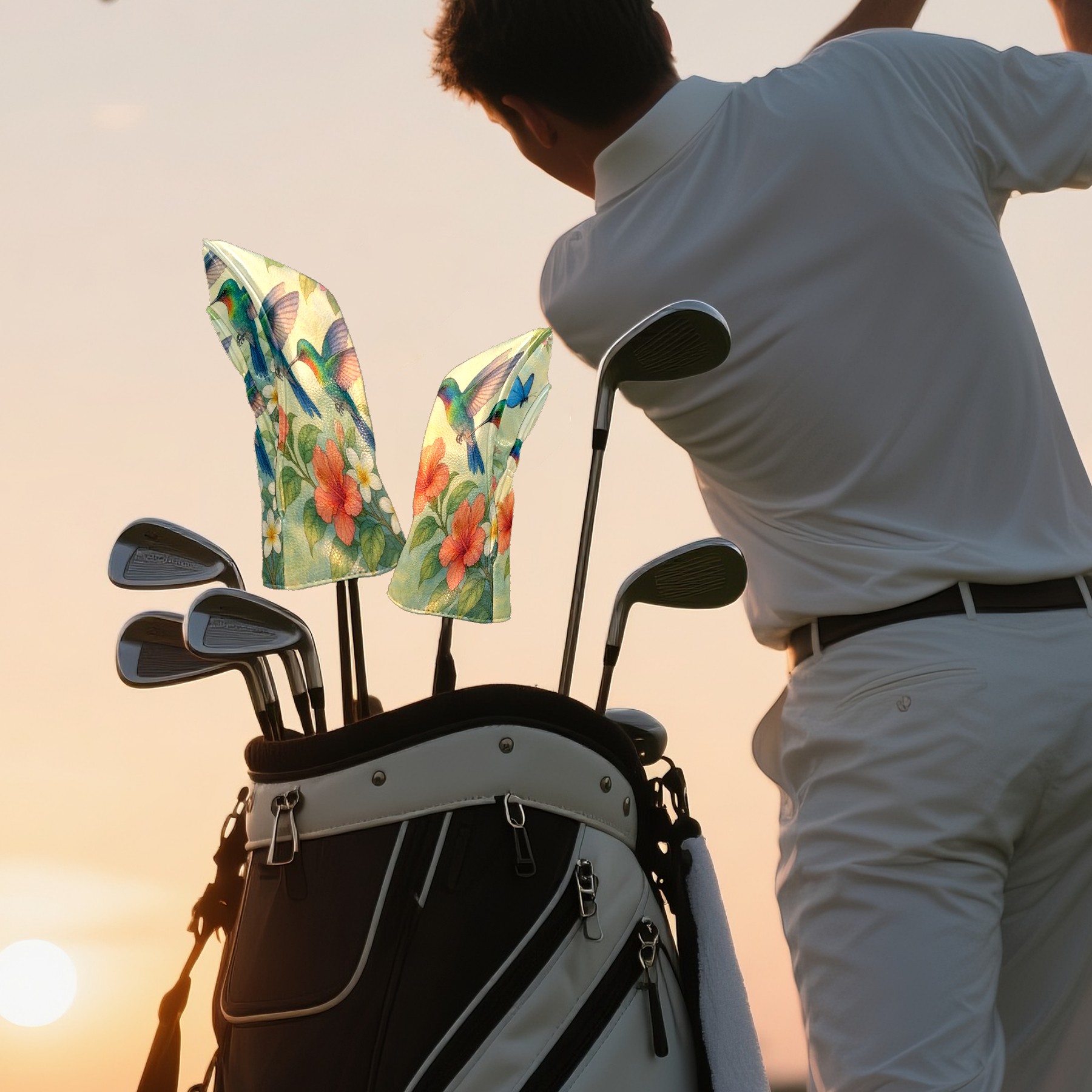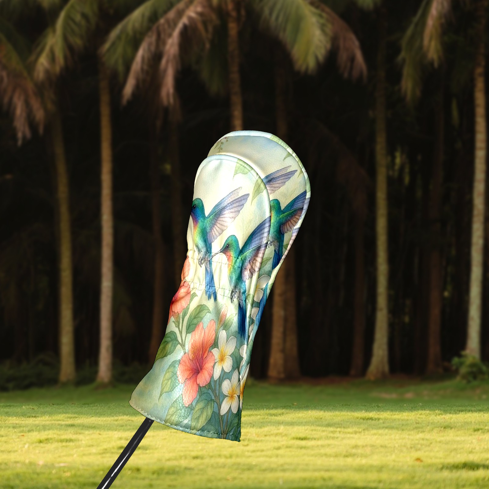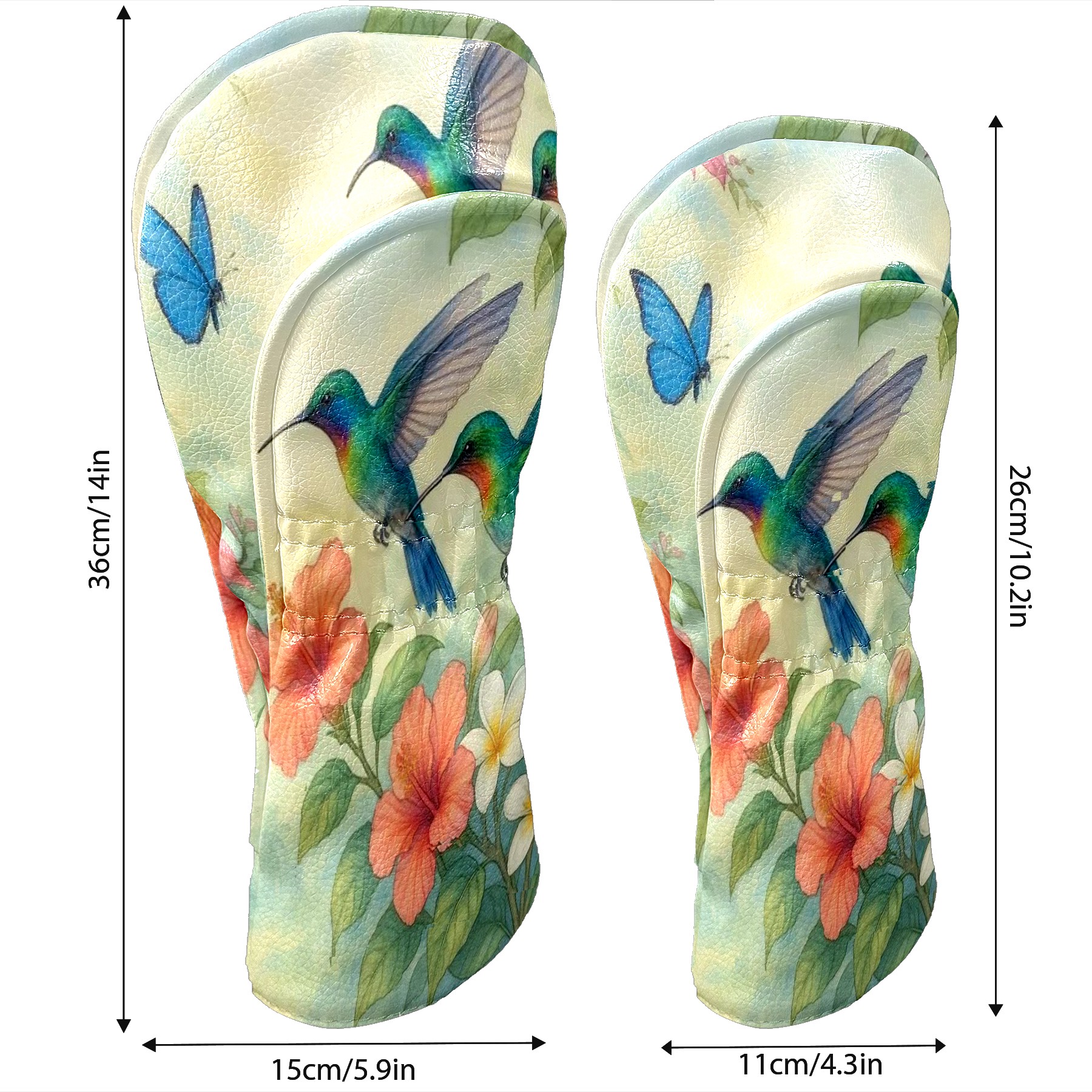 Golf Club Head Cover Premium Leather Driver Headcover, Golf Head Covers for Woods and Driver Waterproof Golf Headcovers with Anti-Scratch Lining for Men Women (Tropical Birds And Flowers Watercolor Postcard)