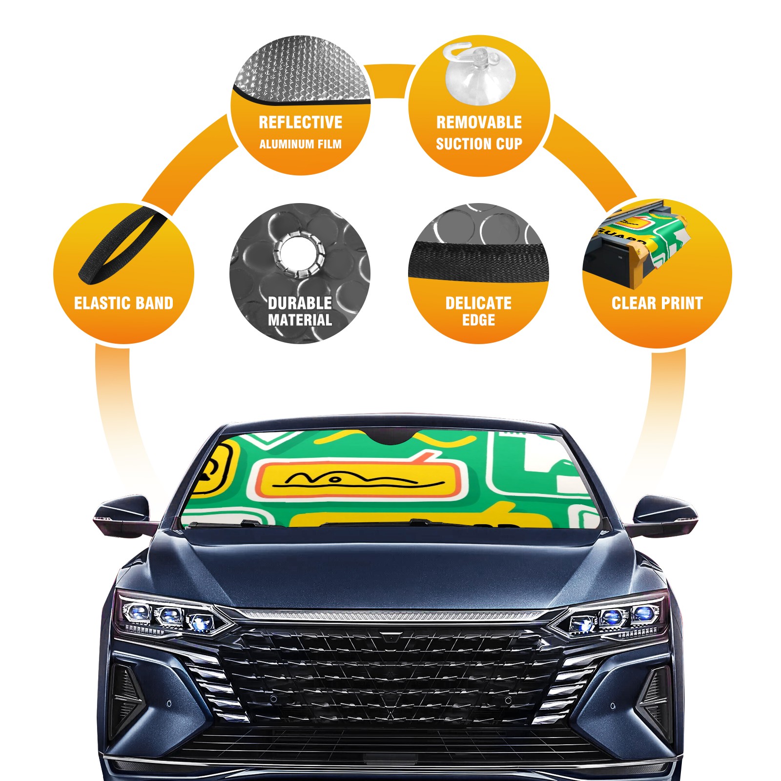 <p>This car sunshade pad is made of a high-quality combination of aluminum foil and polyester, reinforced with transparent adhesive. It measures 140x76cm (55inx30in) and is a practical choice for protecting your car. Its powerful UV protection function can effectively block harmful light, prevent the car interior from aging due to exposure to sunlight, and maintain the dashboard, steering wheel, and seats in a brand new state.<br></p>