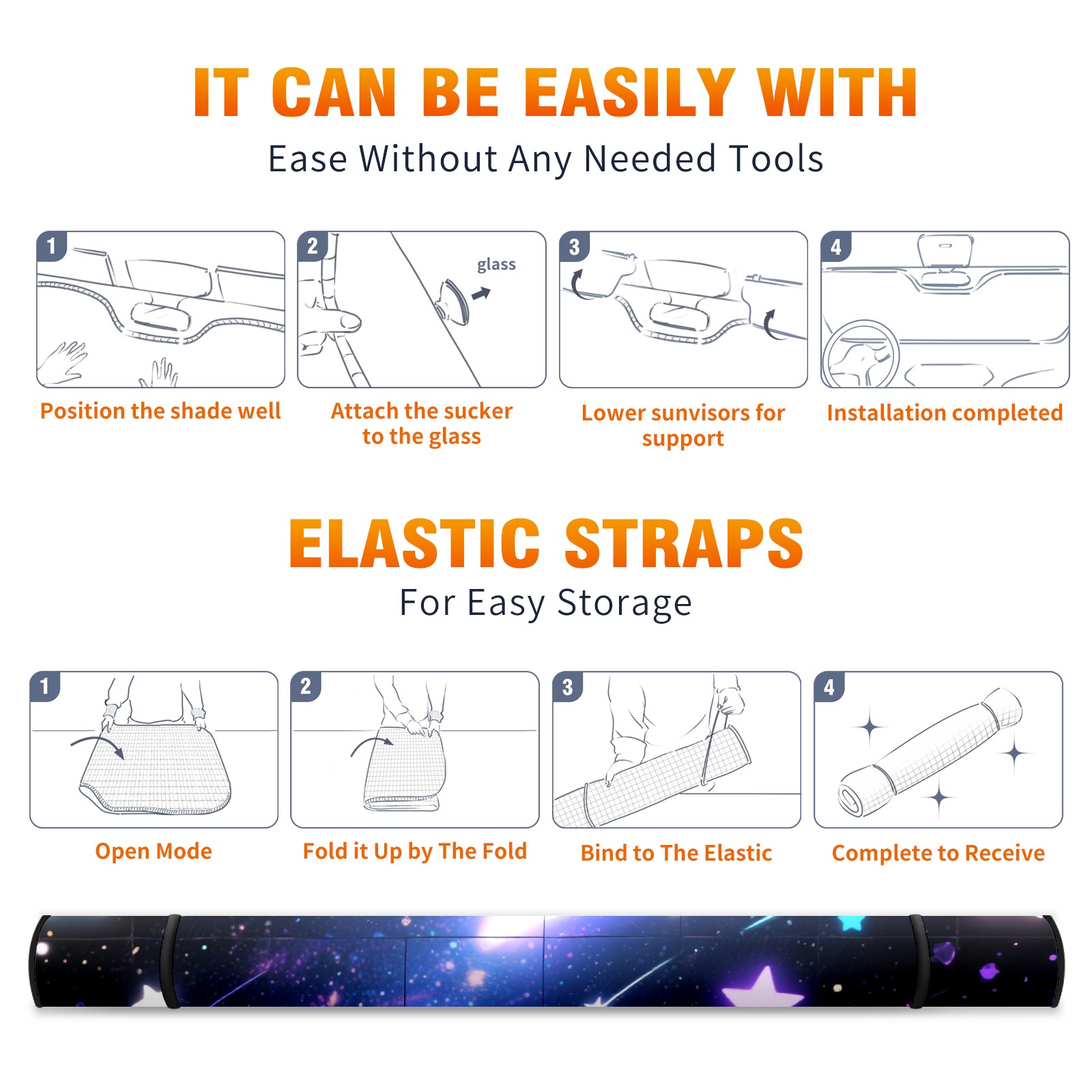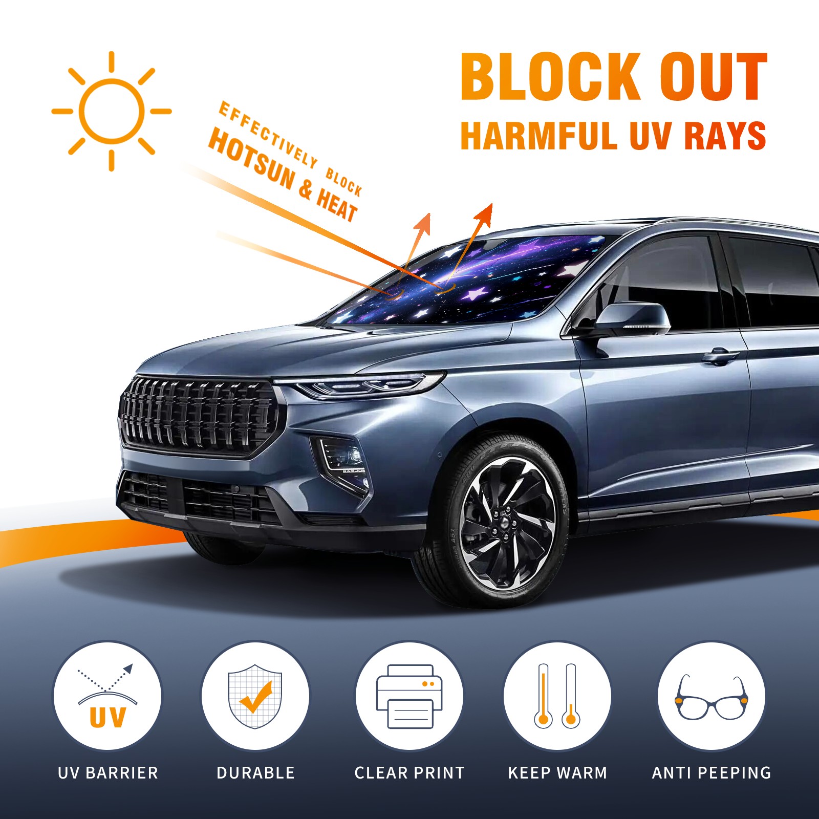 Aluminum Foil Polyester Car Sunshade Pad, Efficient Heat Insulation And Sun Protection ArtifactStarlit Sky