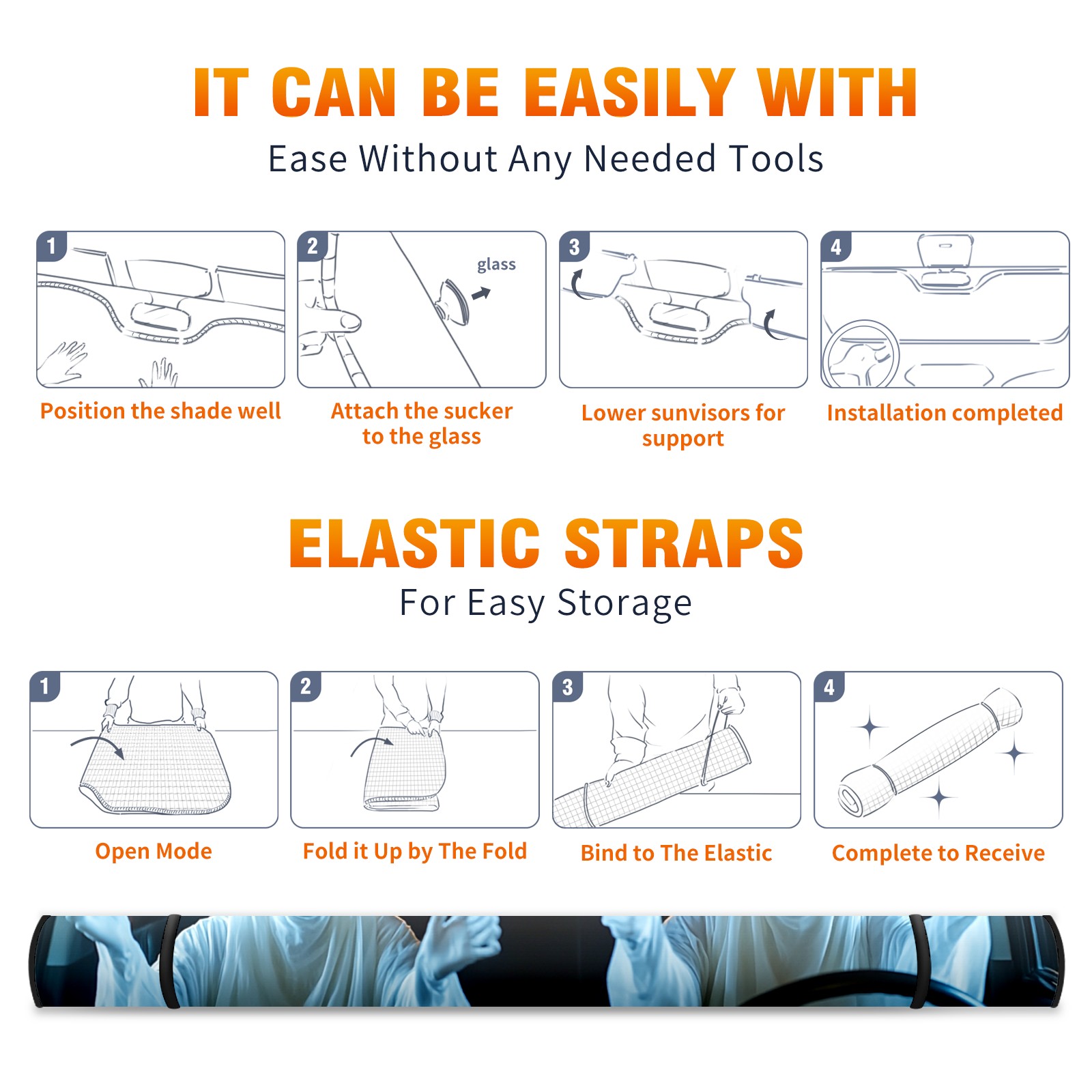 • <p>This car sunshade pad is made of a high-quality combination of aluminum foil and polyester, reinforced with transparent adhesive. It measures 140x76cm (55inx30in) and is a practical choice for protecting your car. Its powerful UV protection function can effectively block harmful light, prevent the car interior from aging due to exposure to sunlight, and maintain the dashboard, steering wheel, and seats in a brand new state.<br></p>