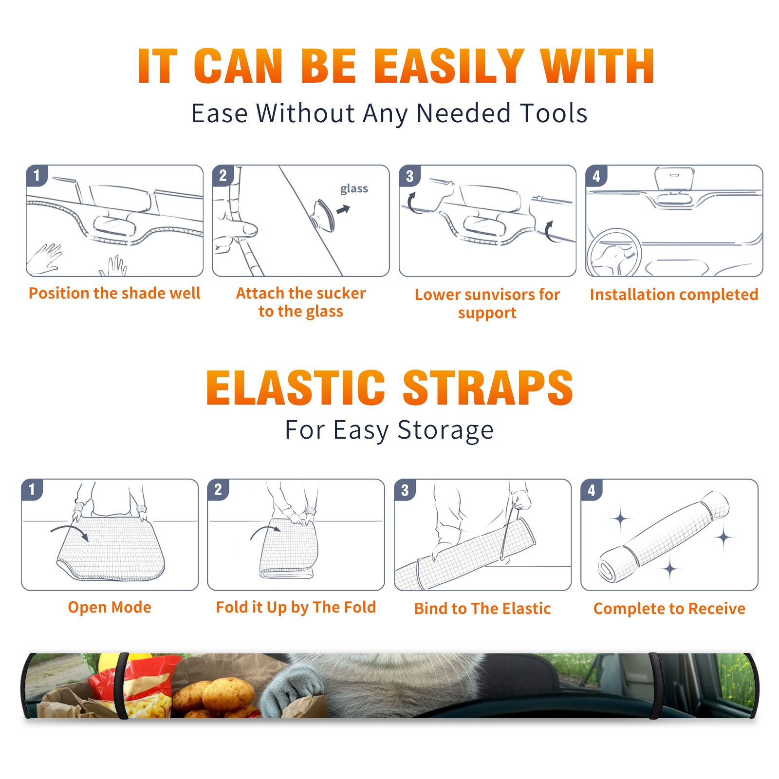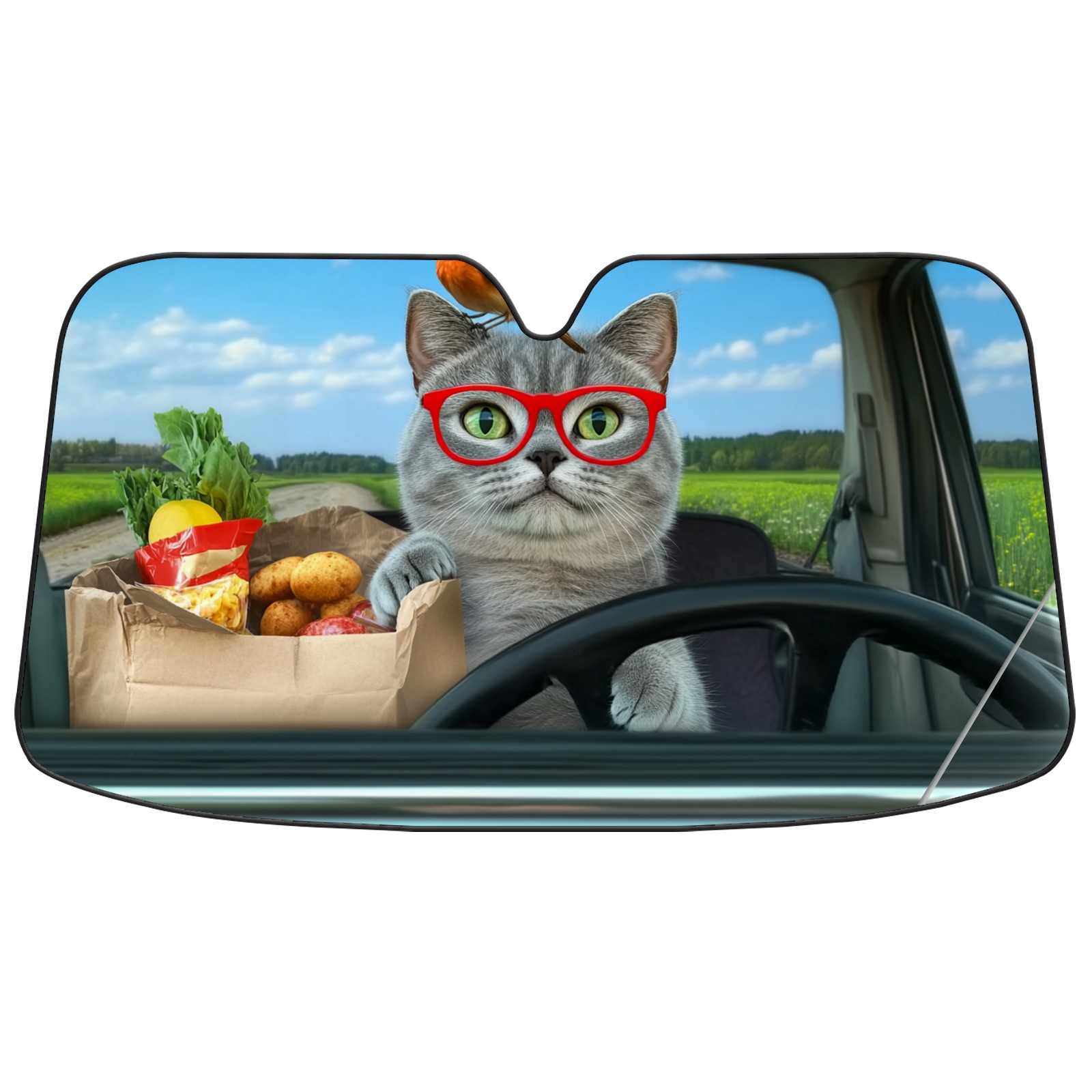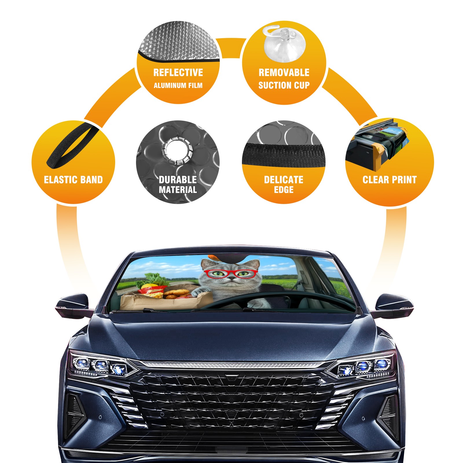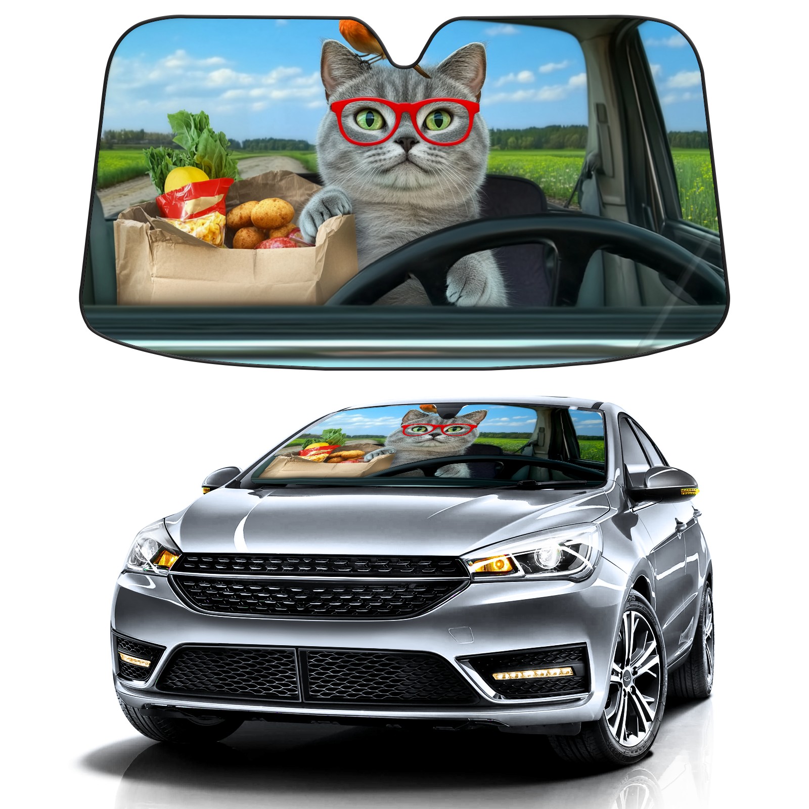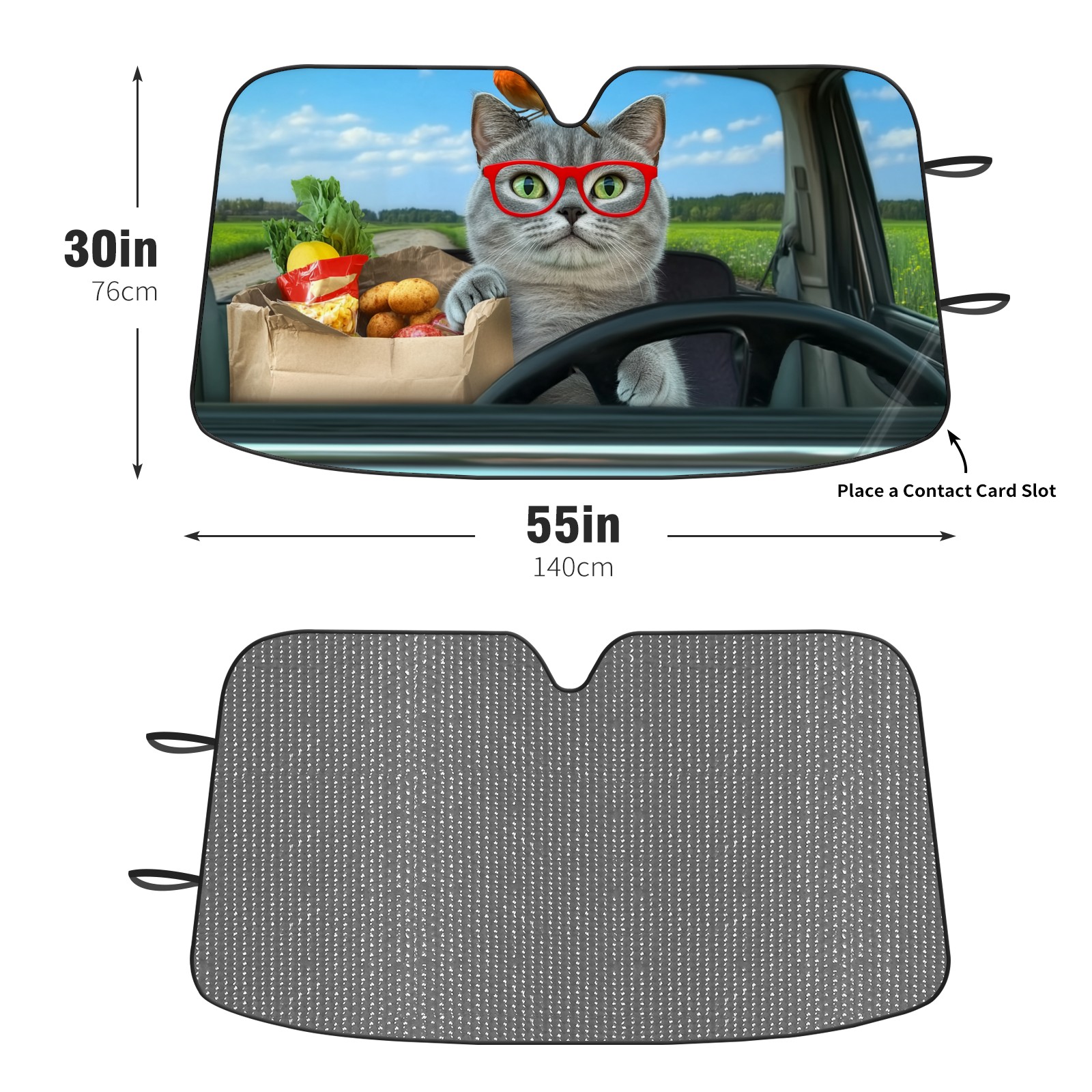 Aluminum Foil Polyester Car Sunshade Pad, Efficient Heat Insulation And Sun Protection ArtifactGray Cat